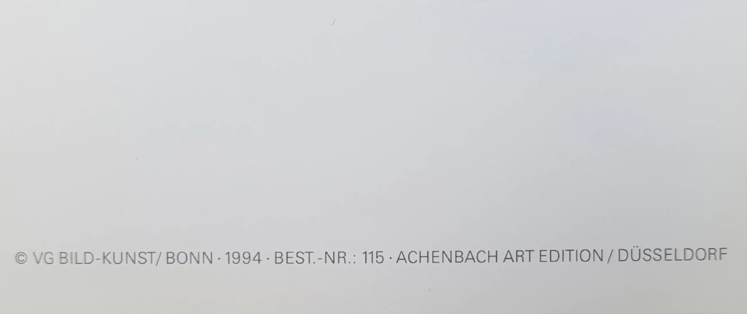 Uitgever: Deutsche Bank Art Collection, Frankfurt am Main, 2001, kleine copyrightvermelding 'Deutsche Guggenheim, Berlin' rechtsonder op de afbeelding (naar een afbeelding in lithografische inkt en krijt op papier, 1997)