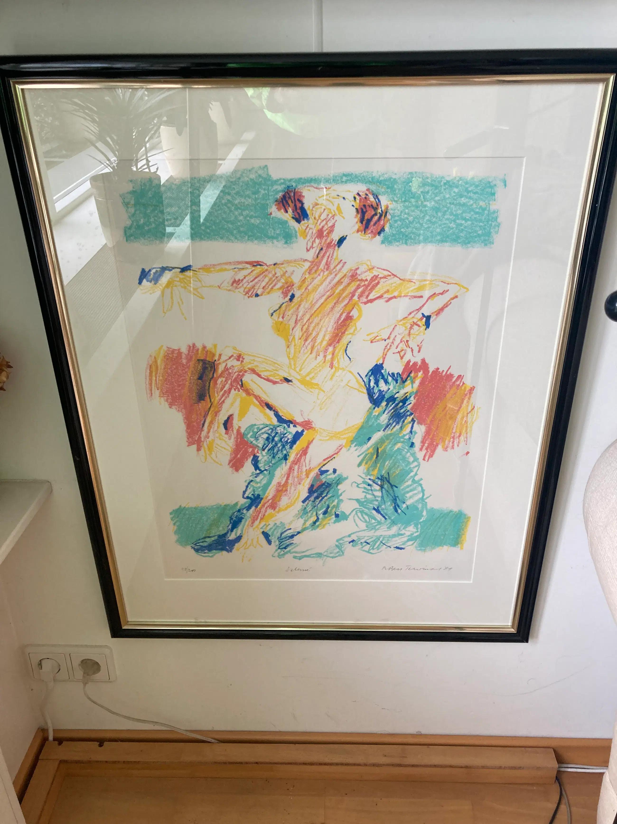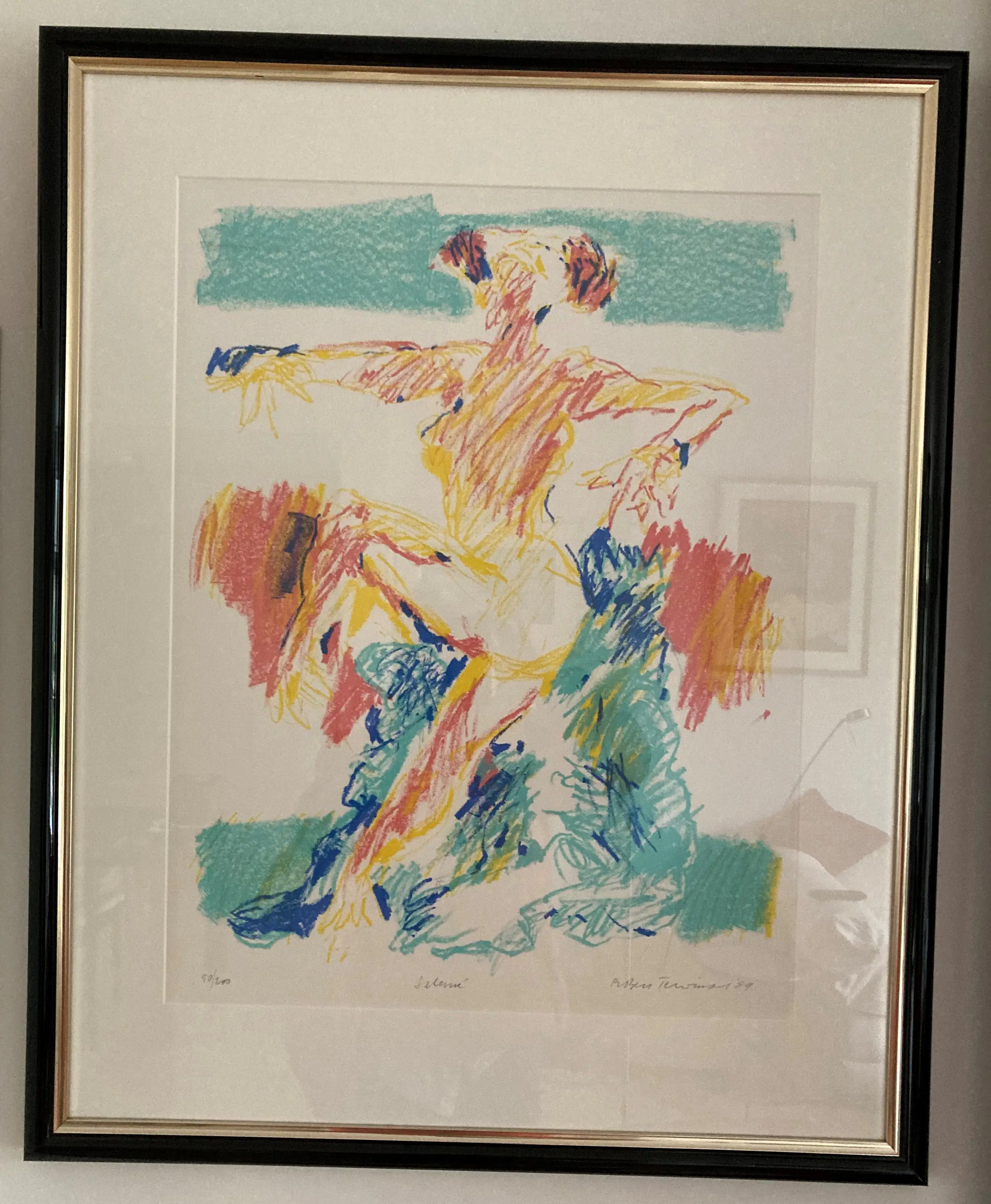 Een mooie grote zeefdruk van Robert Terwindt en bovendien ook heel er stijlvol ingelijst. Gesigneerd met oplage (50/200) en met titel 'Salomé'.