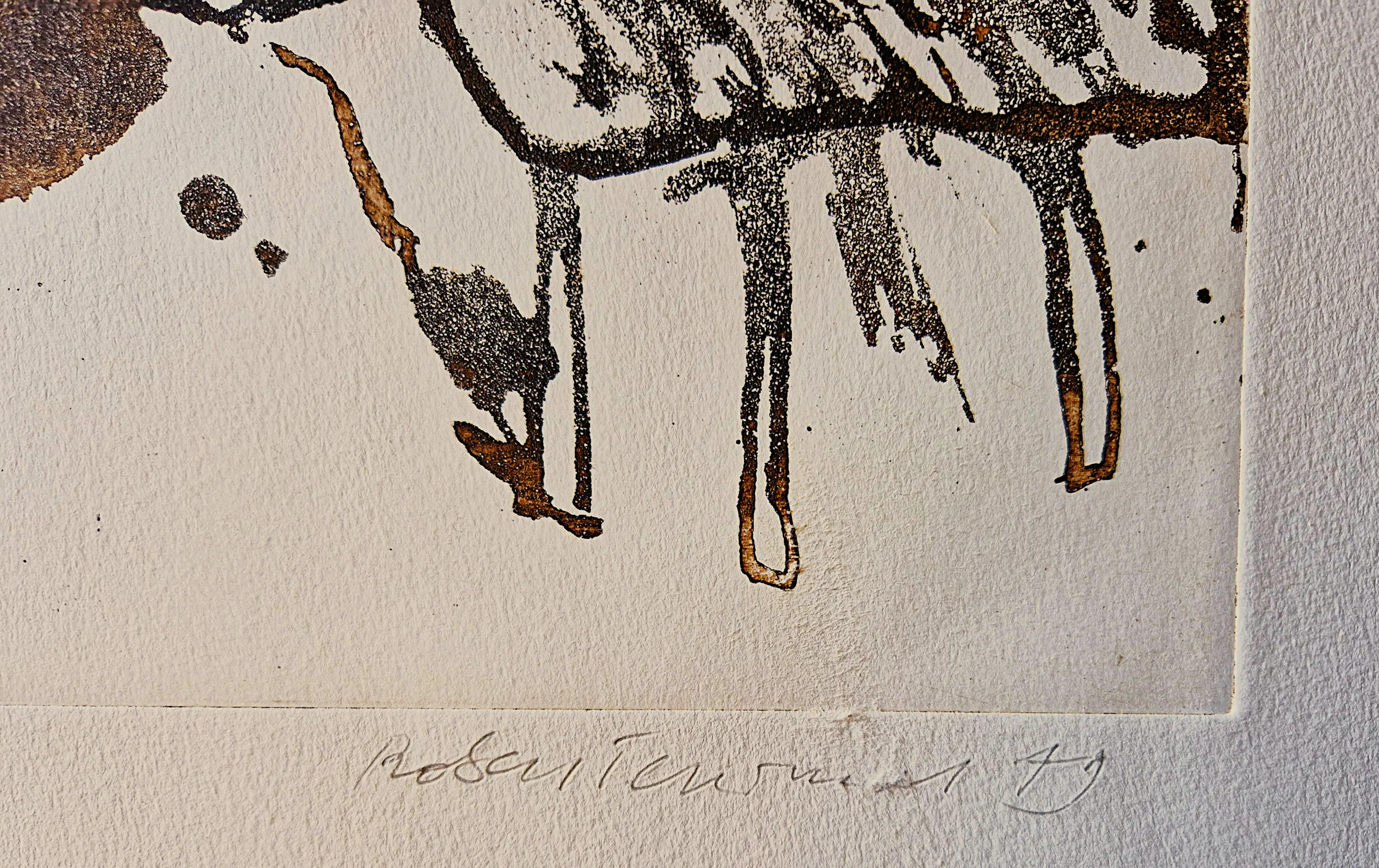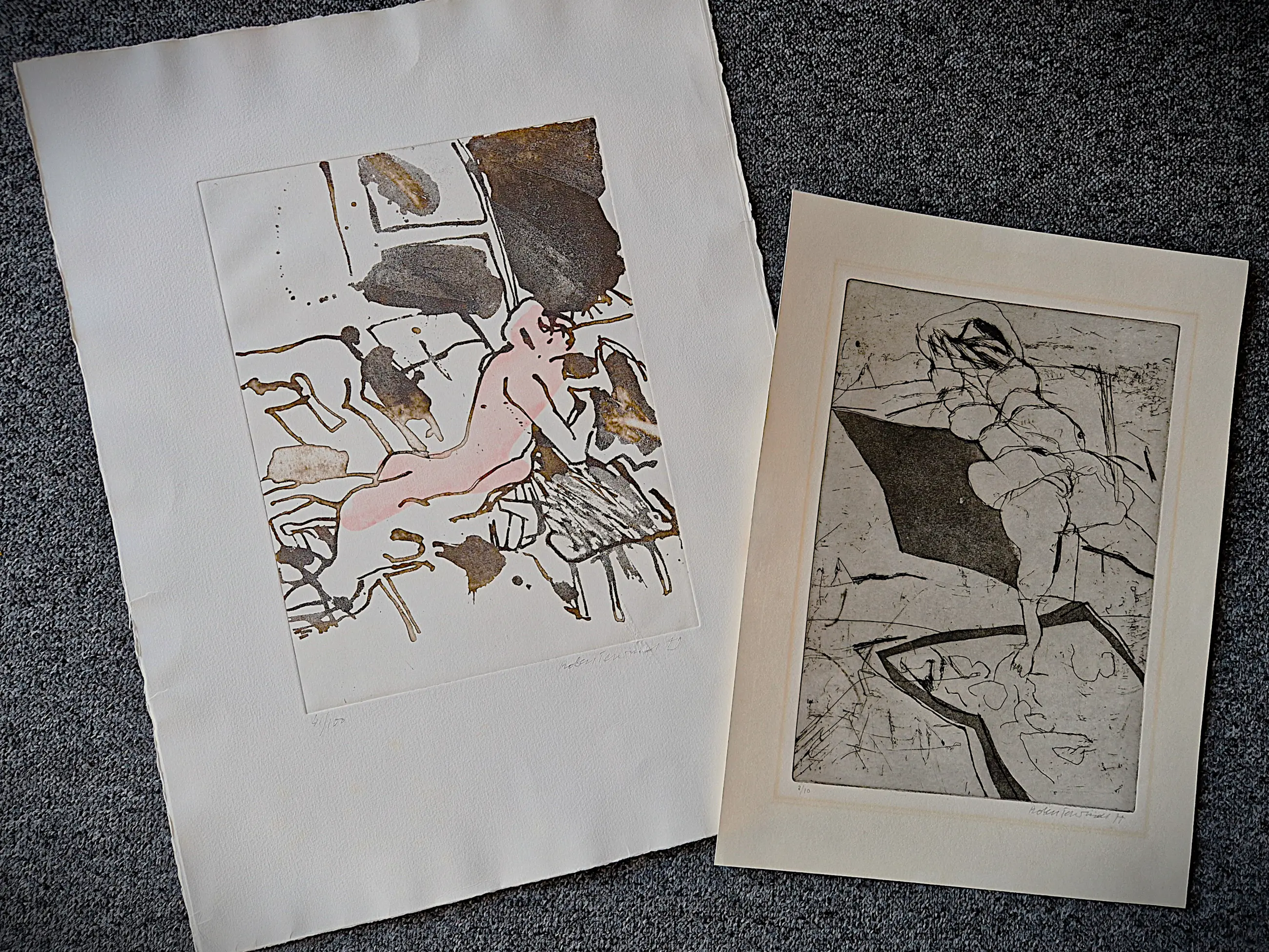 - Twee (2) x een Ets en aquatint met hetzelfde onderwerp van Robert Terwindt (1940-2019) , met potlood gesigneerd en gedateerd 1979. de Z/W ets is een zeer kleine oplage van 10 gemaakt - de grote Ets & aquatint in een oplage van 100. Beide grafische werken verkeren in goede, scherpe conditie (de Z/W Ets heeft een gele lijn in de omliggende marge van een eerdere inlijsting, de andere Ets heeft een ruwe plek linksonder bij de signatuur).