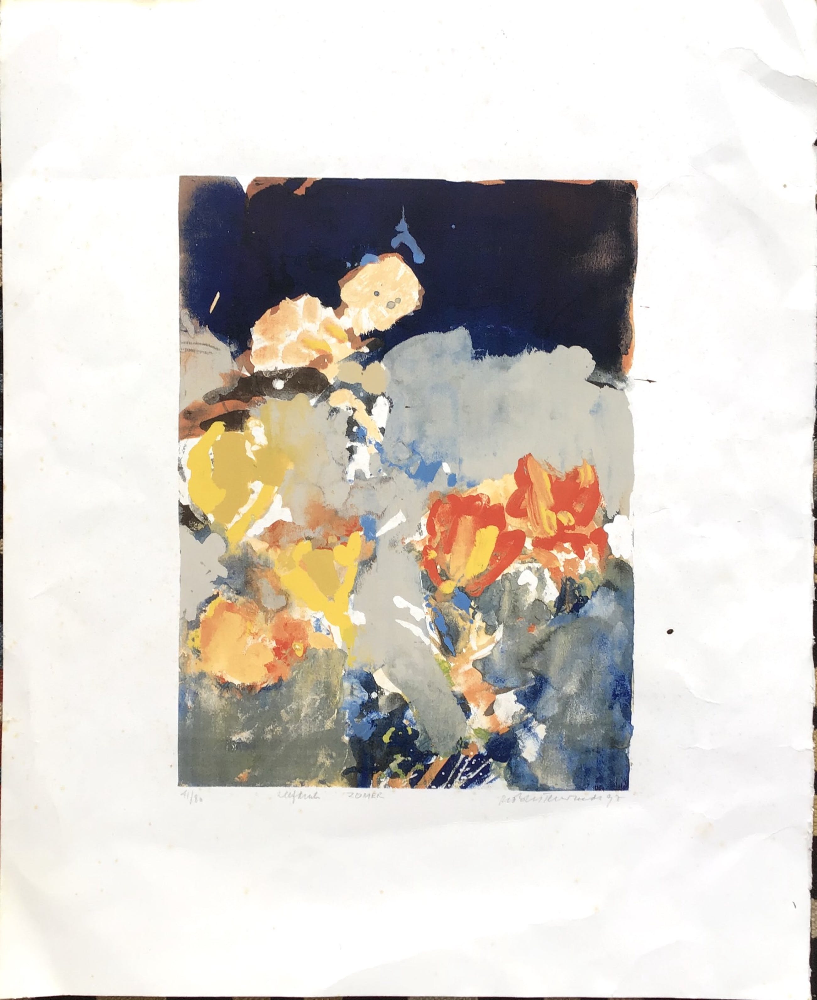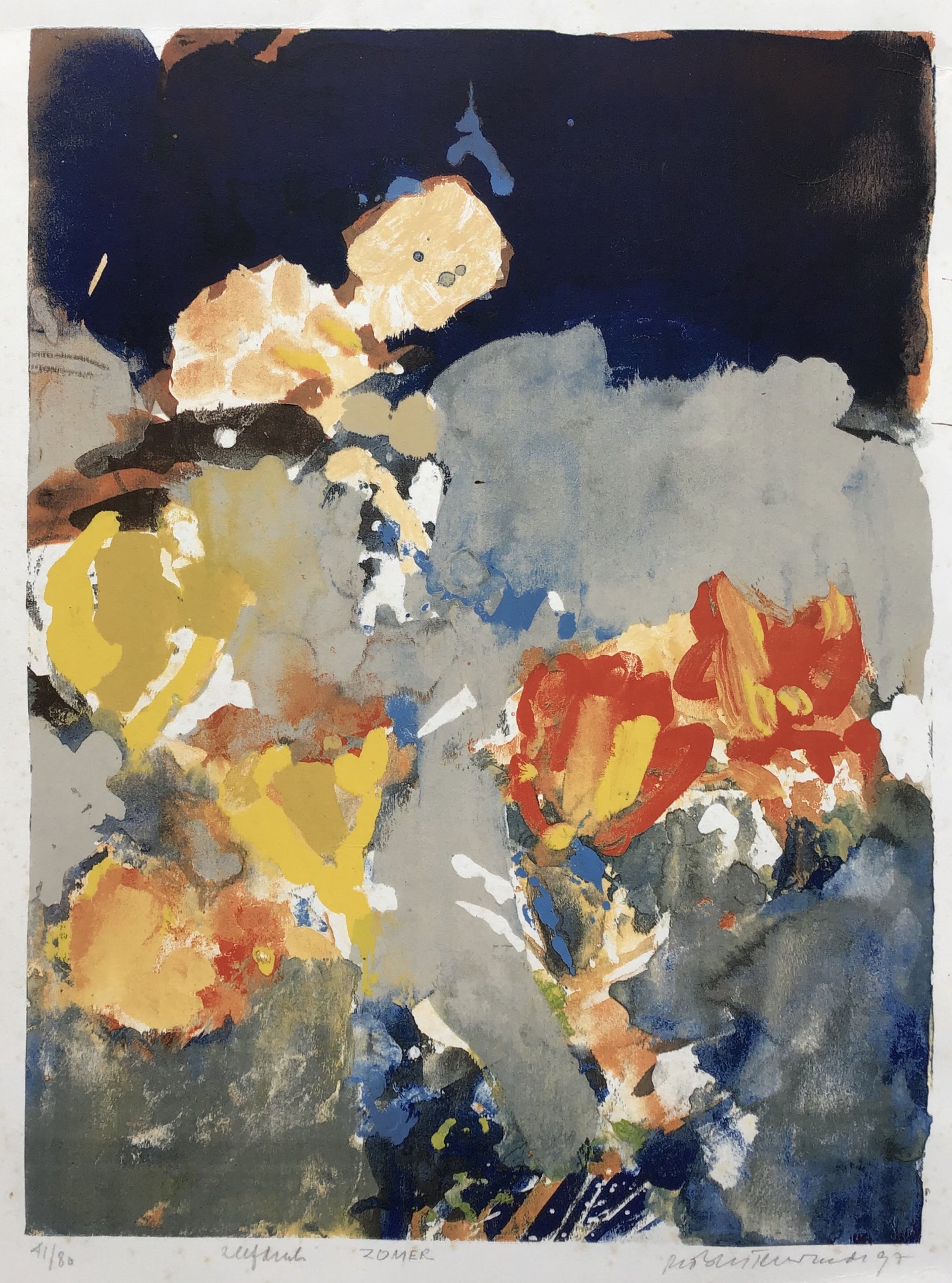 Robert Terwindt Zeefdruk Titel Zomer Afmetingen 60x70cm Oplage 41/80 Gesigneerd Heeft rondom wat vocht vlekjes Valt weg onder passe-partout Zie foto’s Wordt aangetekend verstuurd