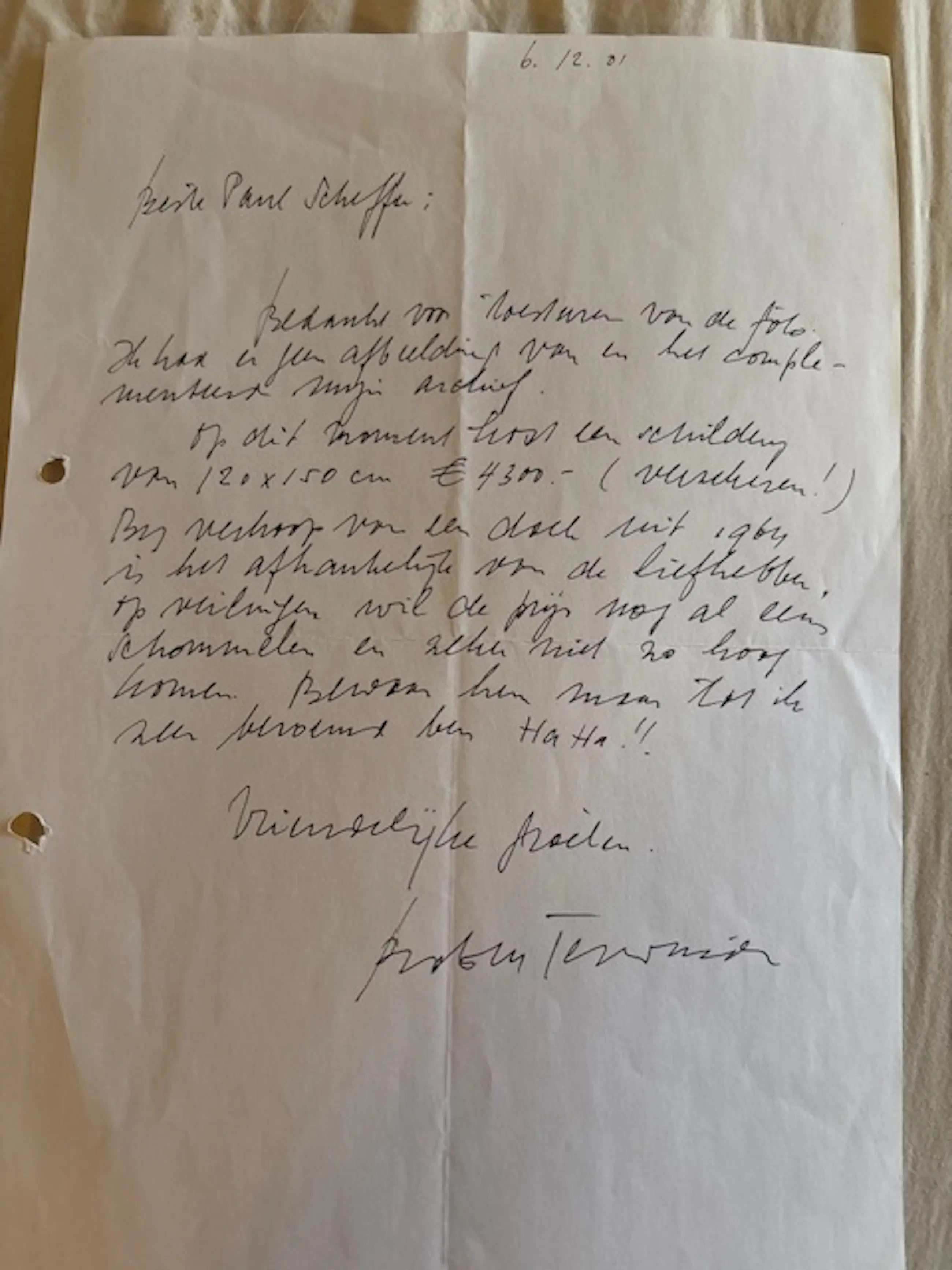 Bij het schilderij is een brief van Robert Terwindt gevoegd, zie bij de foto’s.