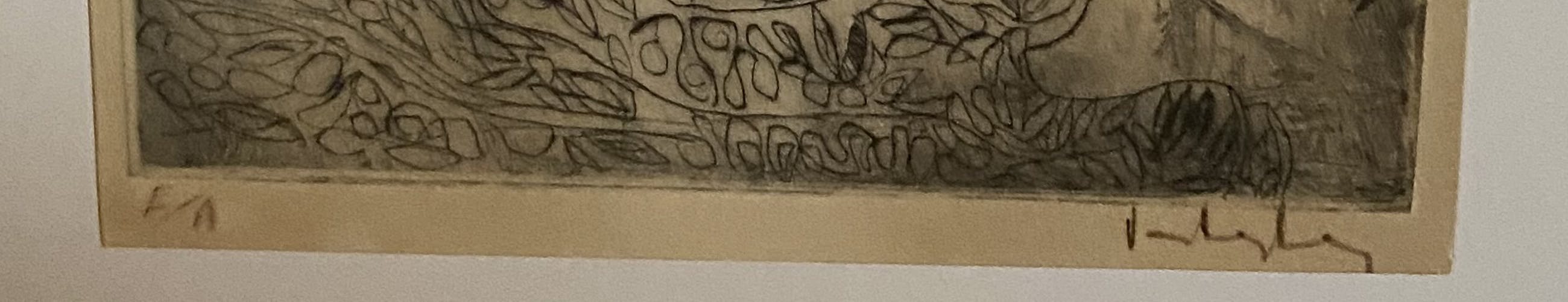 Gesigneerde ets, artiestenproef. Een artiestenproef is de eerste afdruk van een ets voor de genummerde afdrukken beginnen.