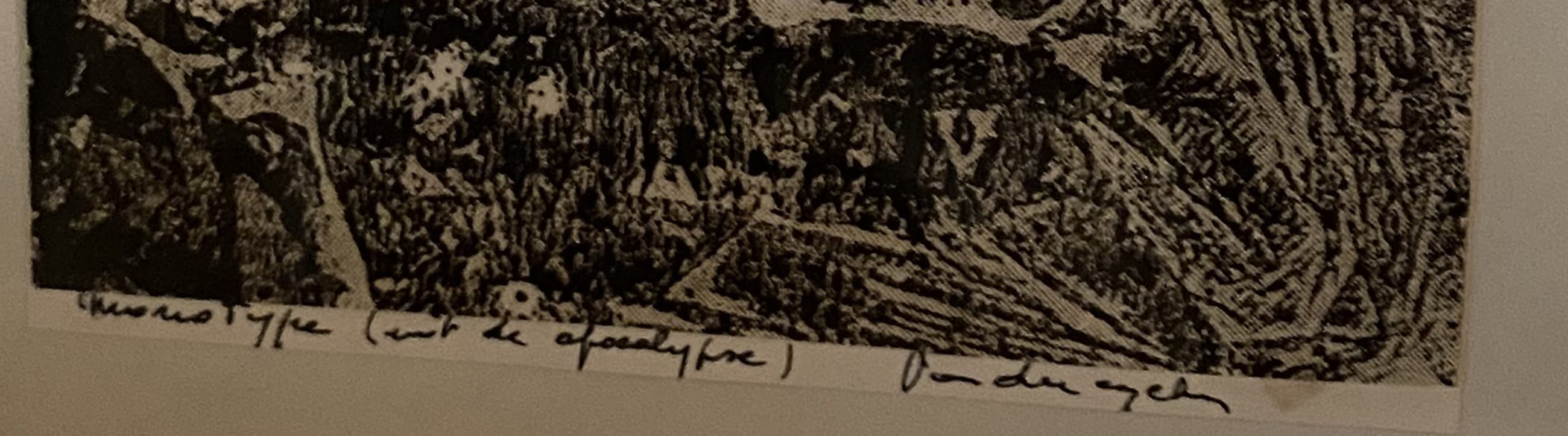 Een monotype is een druktechniek waarbij je een tekening op een plaatje maakt, er papier op legt en er een afdruk van maakt. Je kan elke tekening slechts één keer afdrukken, vandaar de benaming 'monotype'..