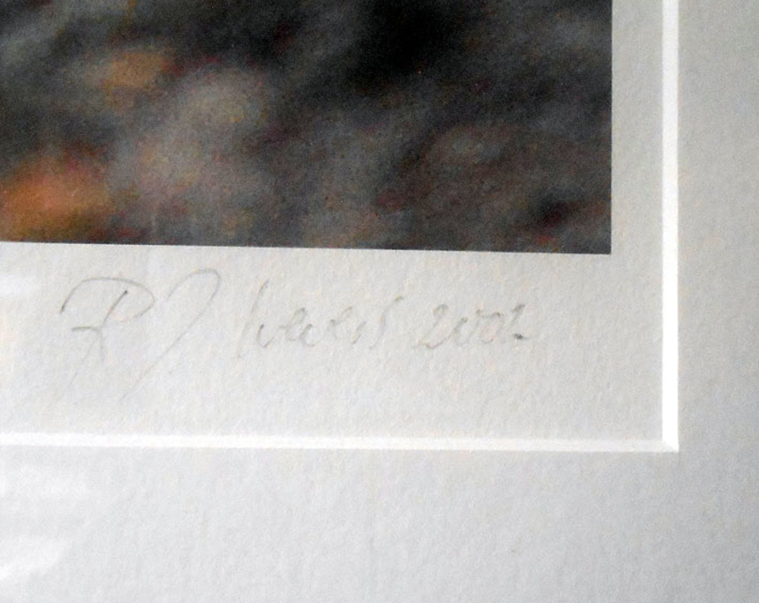 Zeer grote inktjetprint in passepartout achter glas in houten lijst. Oplage 5, genummerd: 4/5 in potlood linksbeneden. Rechtsbeneden in potlood: R J Wevers 2002.