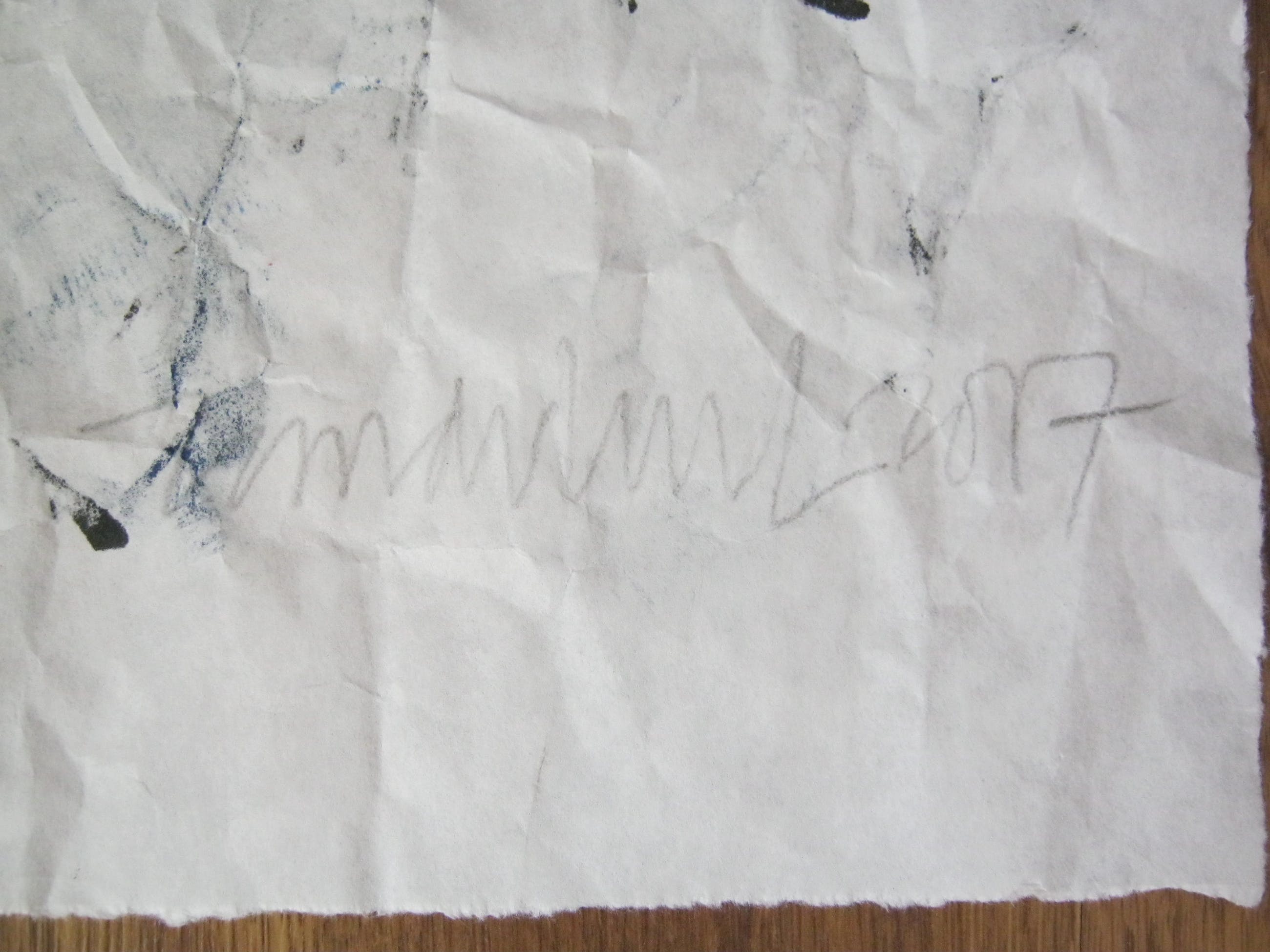 Het papier is in dit geval door de kunstenaar bewust gekreukt om lijnen en diepte in het kunstwerk te creëren.