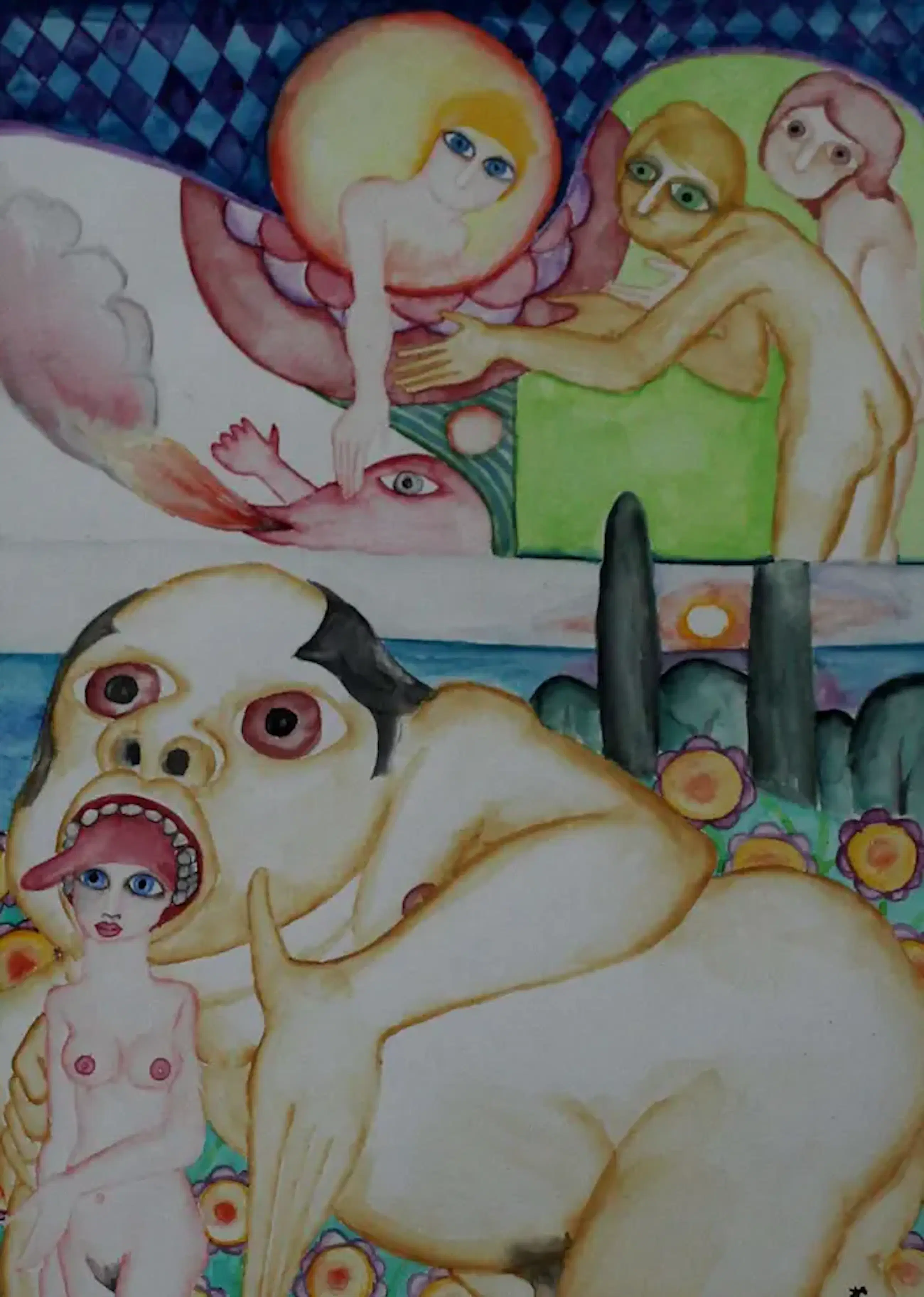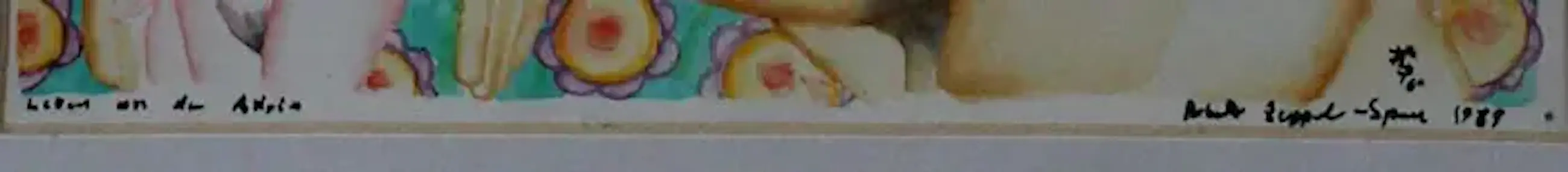 Robert Zeppel-Sperl - Aquarel: surrealistische compositie met figuren - 1989