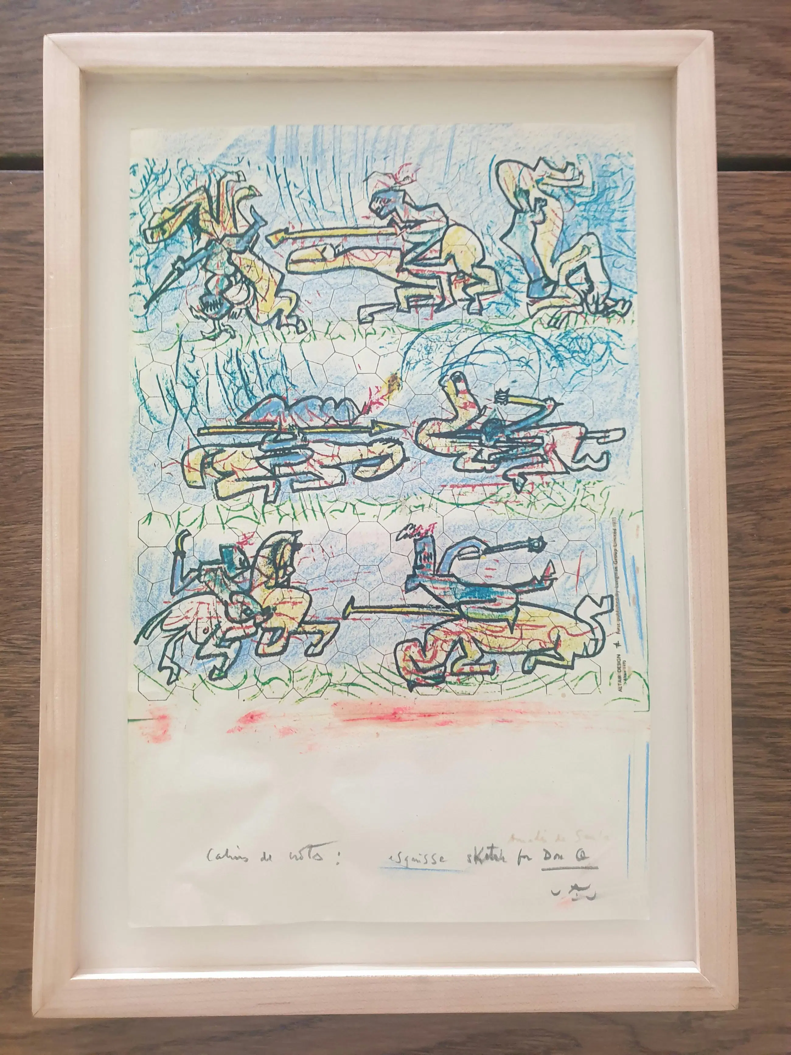 Een litho met de hele serie (6 stuks) van het verhaal van Don Quichot op 1 vel (zie afbeelding) is te zien en in het bezit van het museum Reina Sofia te Madrid. Het werk linksboven is de litho versie van het unieke werk van dit kavel. Eigenlijk zijn alleen de figuurtjes gelithografeerd. De rest is origineel!