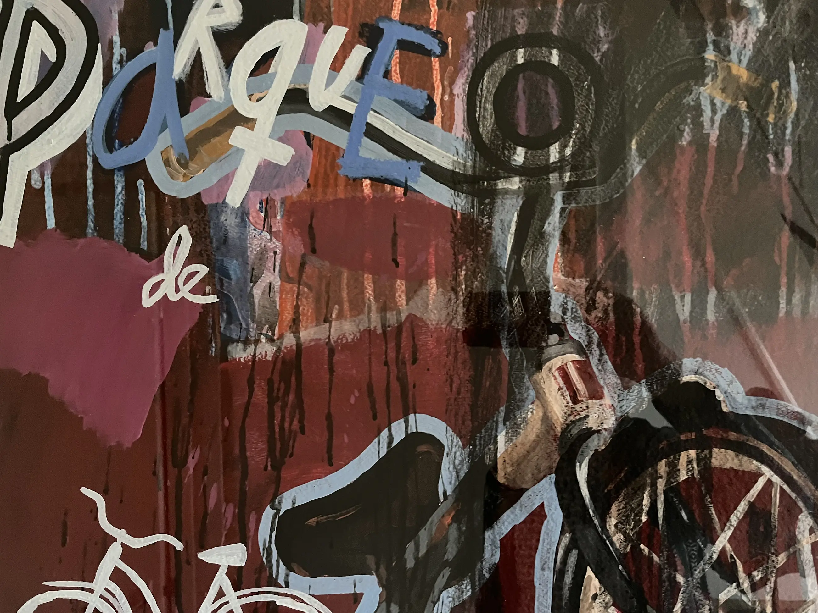 Fraai acryl schilderij uit 1997. Gelijst in houten lijst. Kan zo aan de muur. Afmeting voorstelling 74 x 56 cm. Inclusief lijst 93 x 73 cm. Rodolfo Llopiz baseert zijn schilderijen op Cubaanse affiches en zelfgemaakte reclameborden op deuren van huizen in Havana. De bewoners geven er op aan wat voor een extra dienst zij aanbieden om hun onvoldoende inkomen aan te vullen. De kunstwerken heet ‘trabajadores por cuenta propria o empresas alternativas’ (arbeiders voor eigen rekening of alternatieve ondernemingen). Llopiz gebruikt de teksten en de typologieën van Cubaanse huisvlijt. Om de tekst verder te verduidelijken voegt hij er een collage van beelden aan toe. De kunstenaar is vroeger chef-zeefdrukker is geweest van hét Cubaanse grafisch atelier ‘René Portocarrero’. Zijn denken in kleurlagen, dat voor het procédé van zeefdrukken noodzakelijk is, is in zijn schilderijen het geheim achter de kracht van de beelden te noemen.