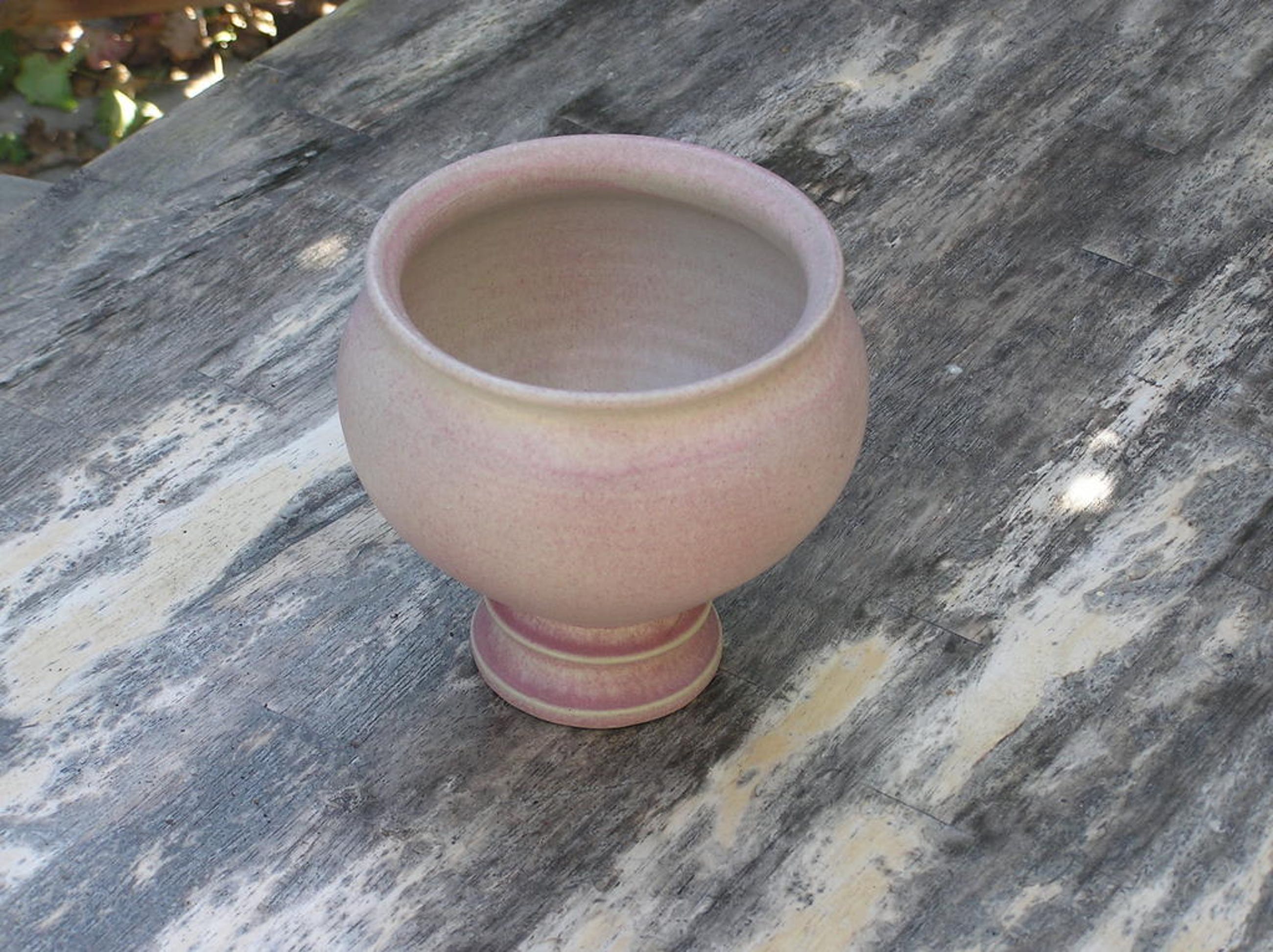 Zachtroze Rodolfo Gonzalez Mele vaas op voet, in prima onbeschadigde conditie. Uitgevoerd in eigen atelier in Baarlo. Onderzijde ingedrukt gemerkt Rodolfo. Afmetingen; 18 cm hoog en diameter boven is 15 cm en de diamter op de voet is 8,8 cm.