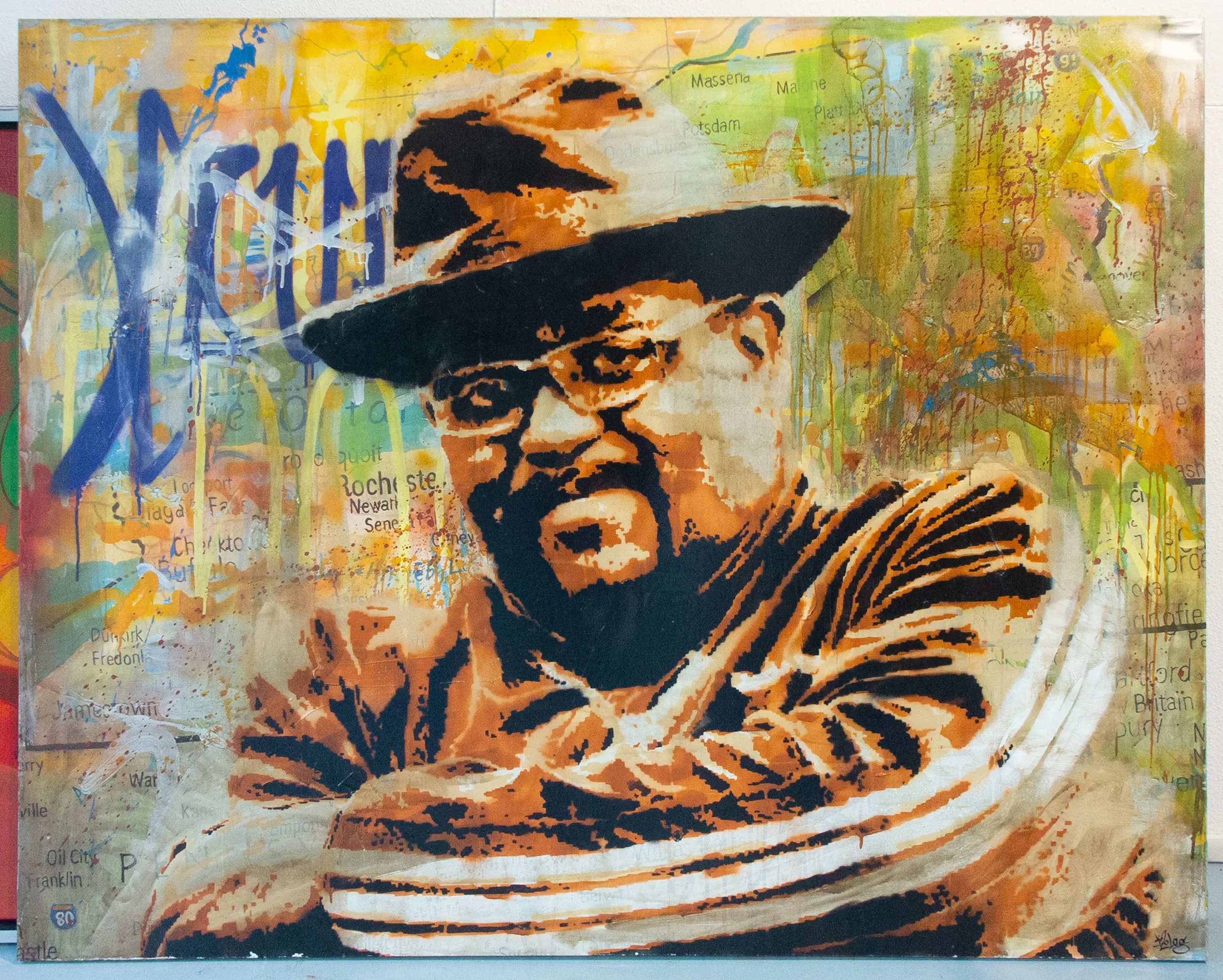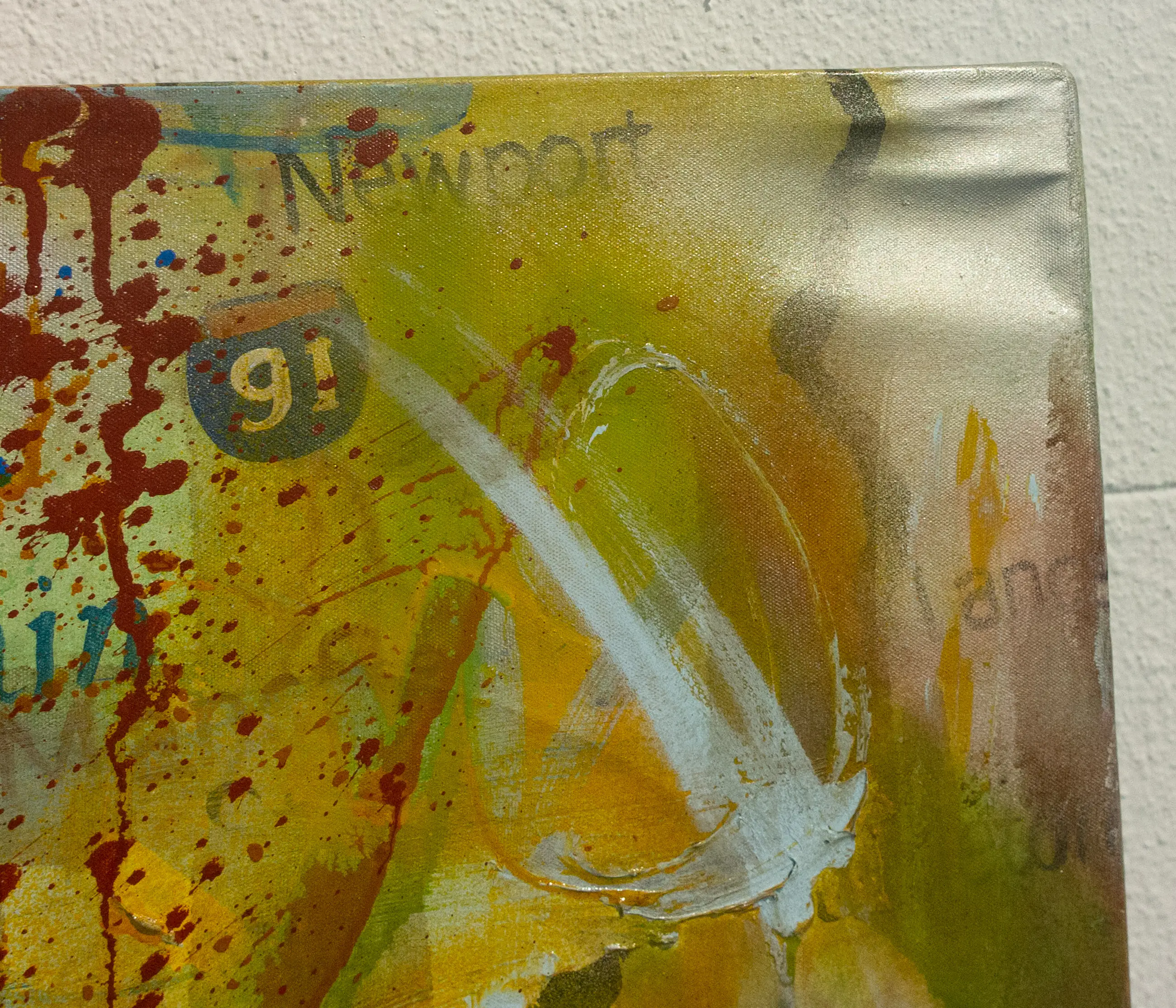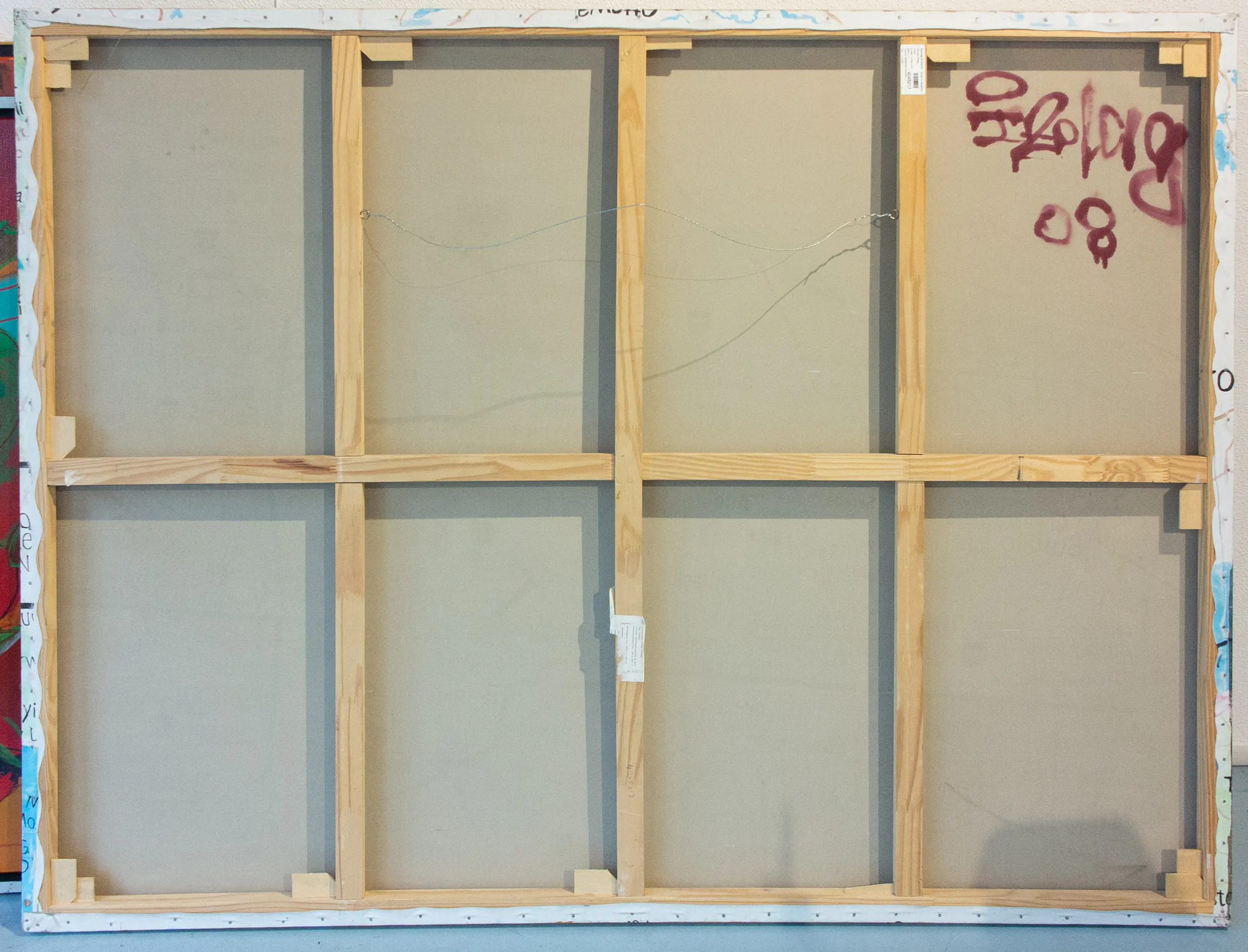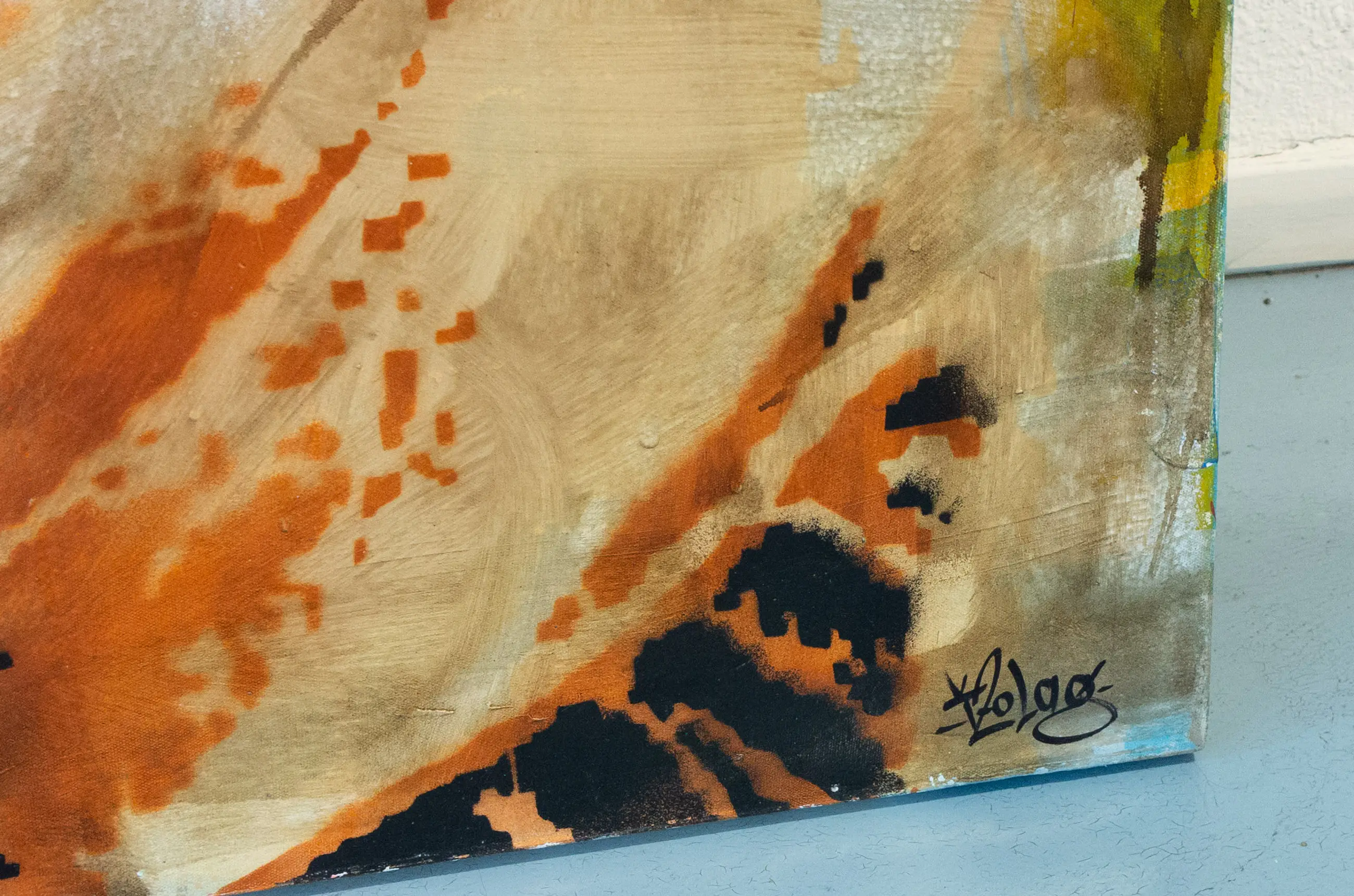 | Enkele lichte beschadigingen, verlies spanning hoekje spieraam / canvas | |