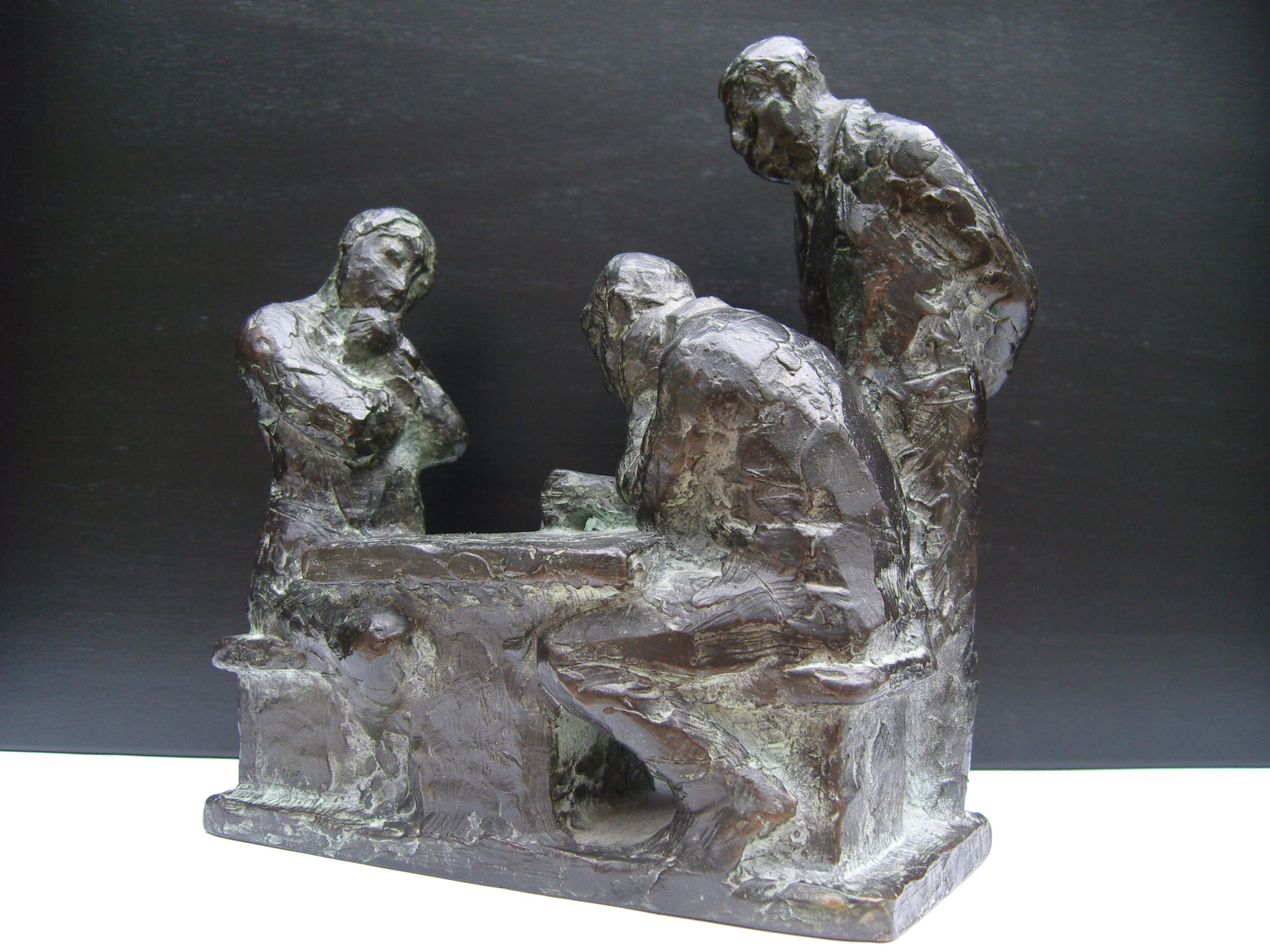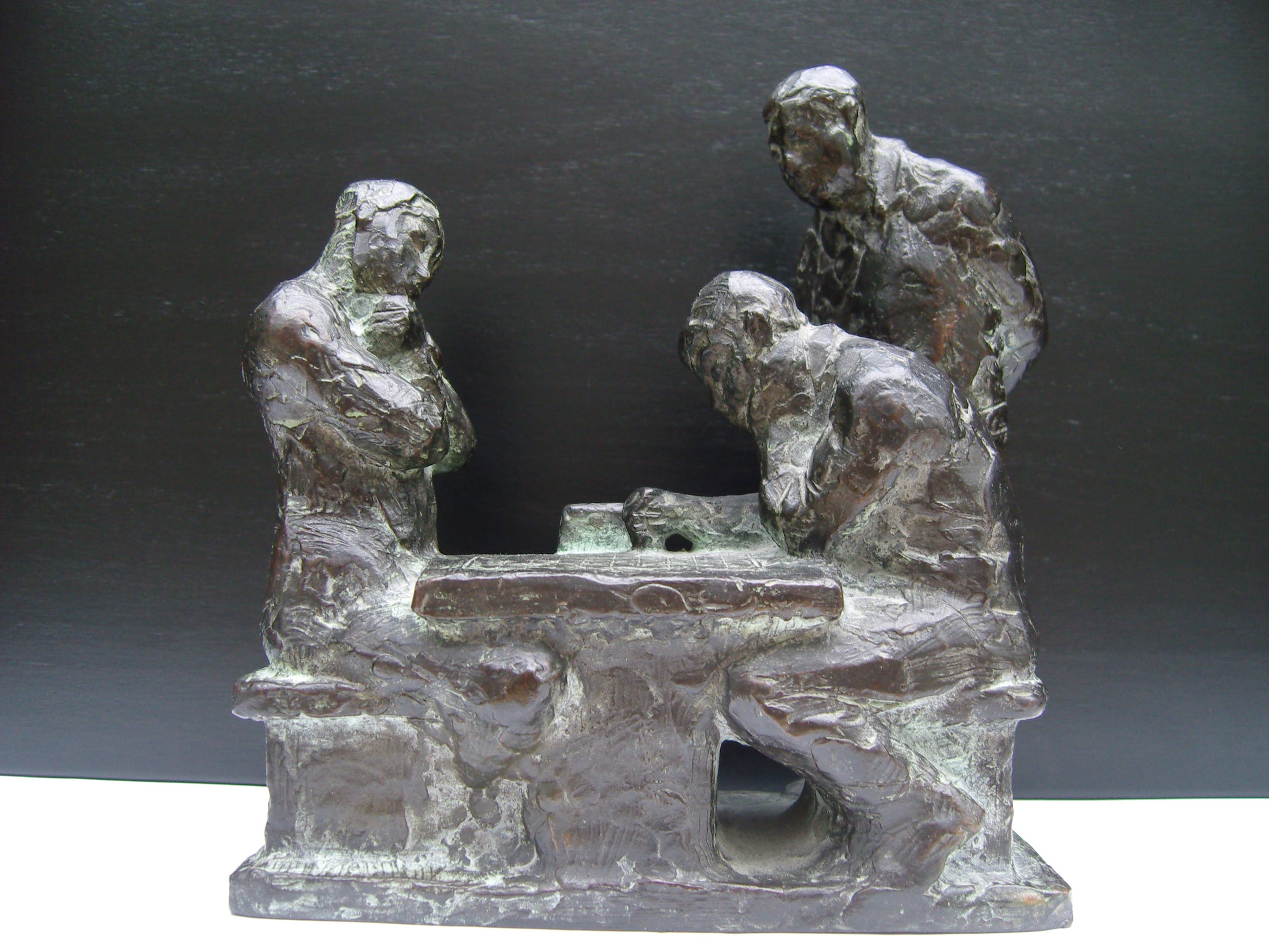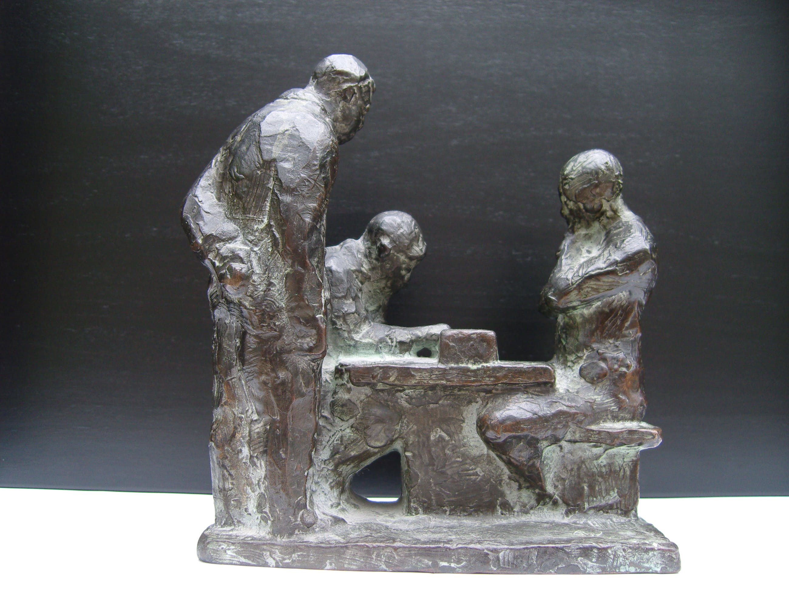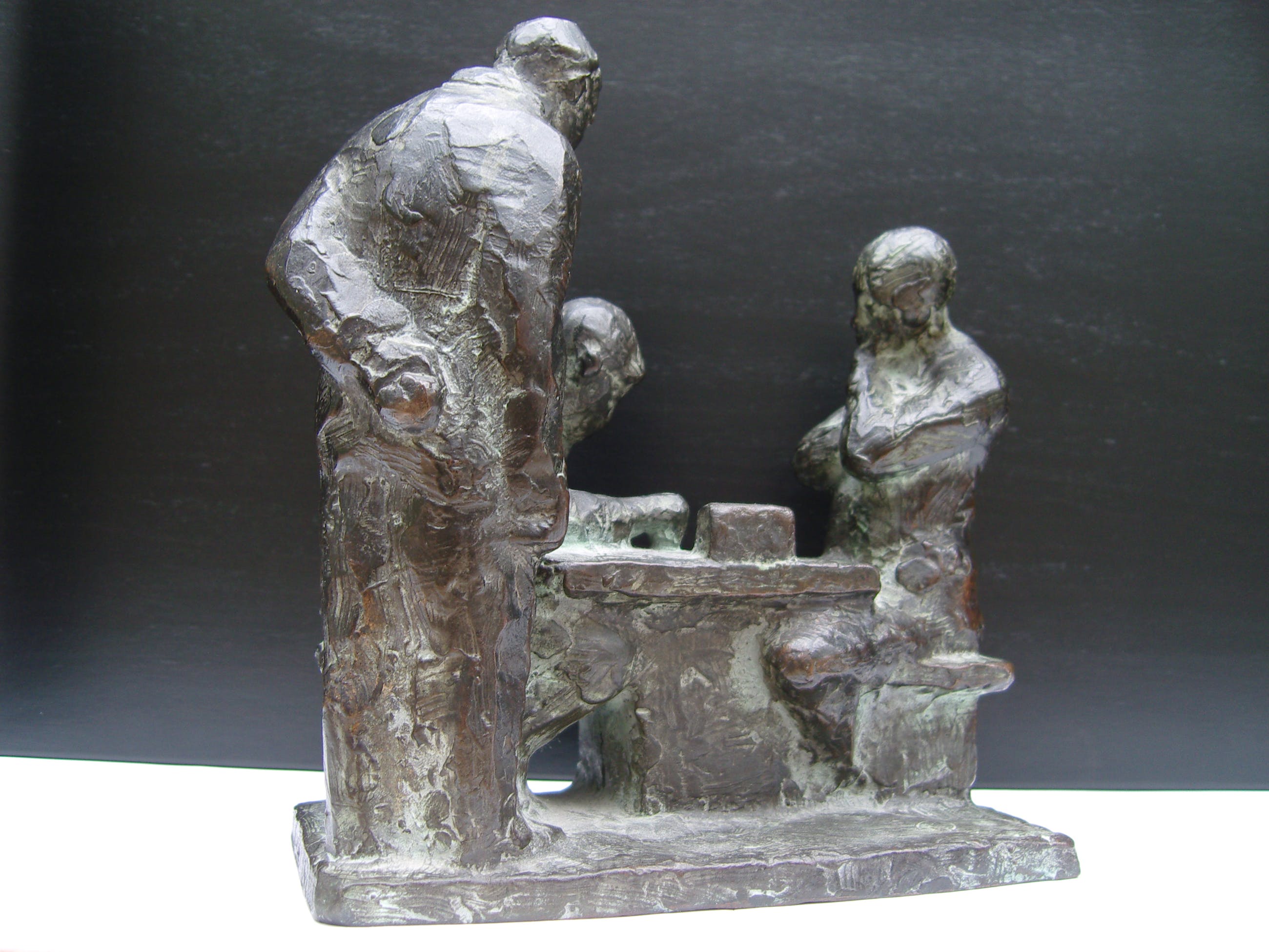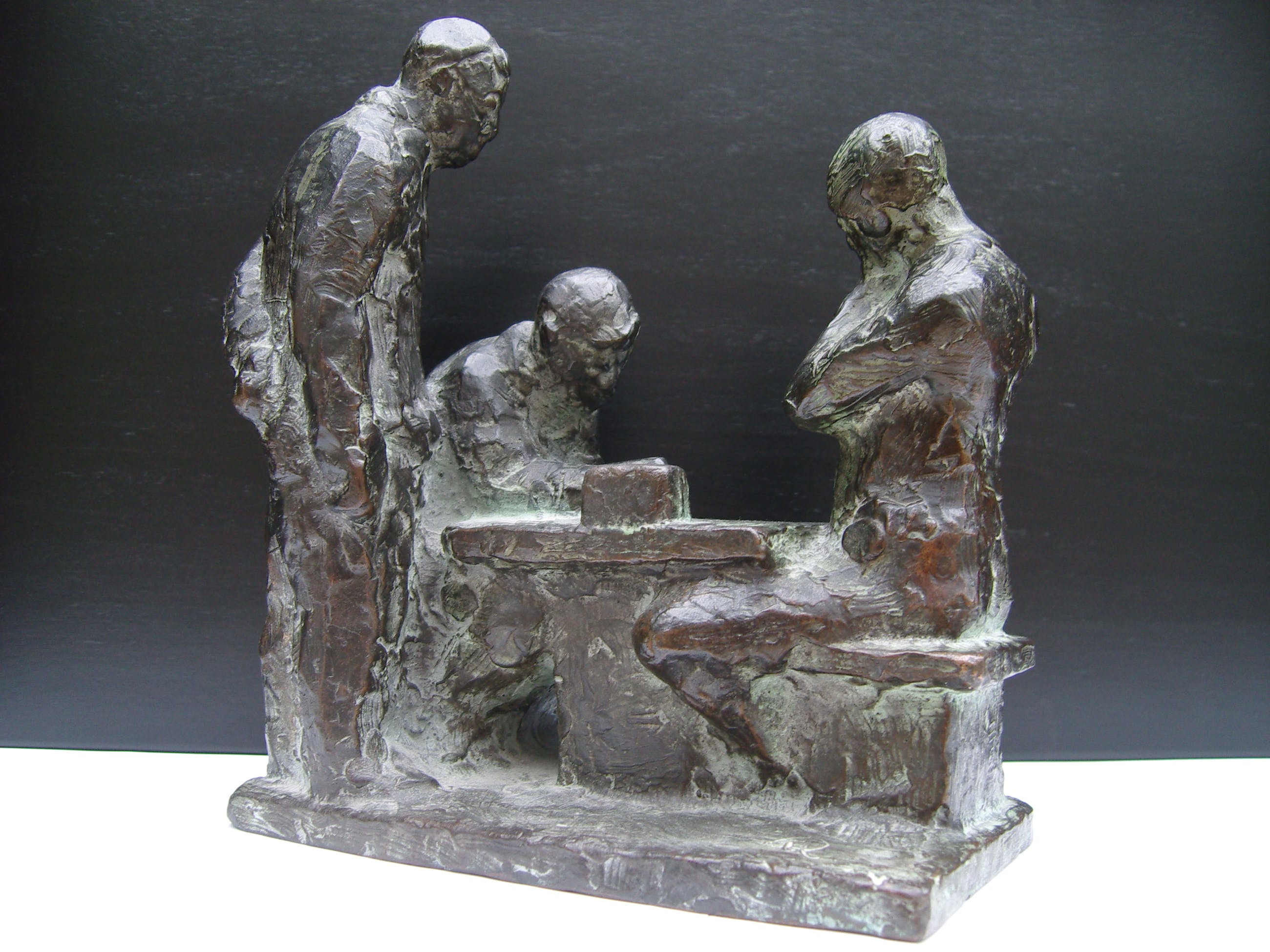 Zeer knap weergegeven beeld van een tweetal dammers en een toeschouwer. Mooi en realistisch weergegeven. Echt een beeld wat met liefde gemaakt is. Waarschijnlijk unica, dit weet ik echter niet zeker.