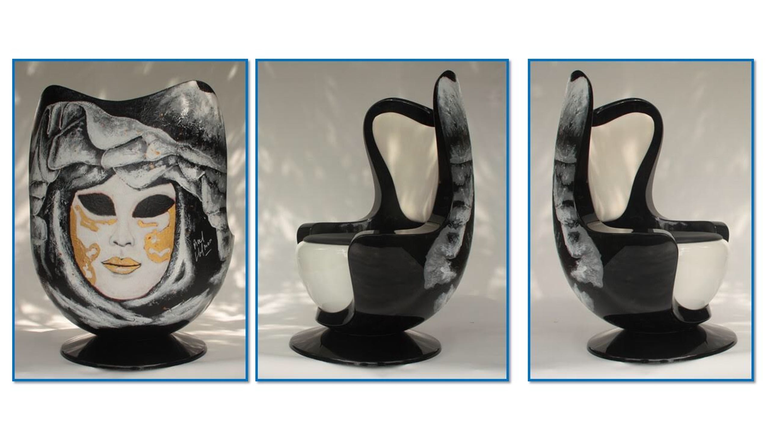 Dit object is een creatie van kunstenaar Roel Hofman uit Hellevoetsluis en staat bekend in BNer contreien alsmede vaste deelnemer op de Miljonairs Fair in Amsterdam. Het basismateriaal is gemaakt van een composiet en binnenzijde bekleed met echt leer in zwart en wit. Geheel staat op een draaivoet.