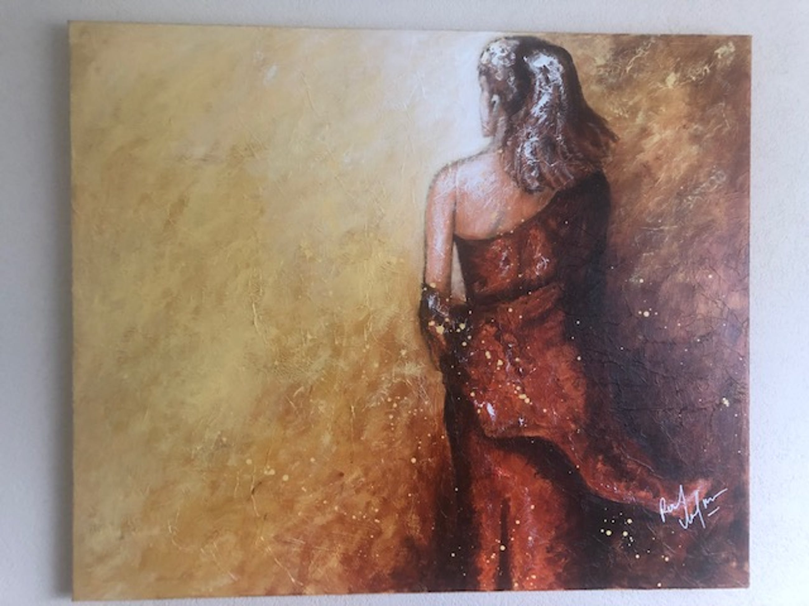 Ik wil graag een schilderij van Roel Hofman veilen. Het is een staande vrouw en rood-beige van kleur. Ik heb hem rond 2011 gekocht. Hij is gesigneerd door Roel Hofman.