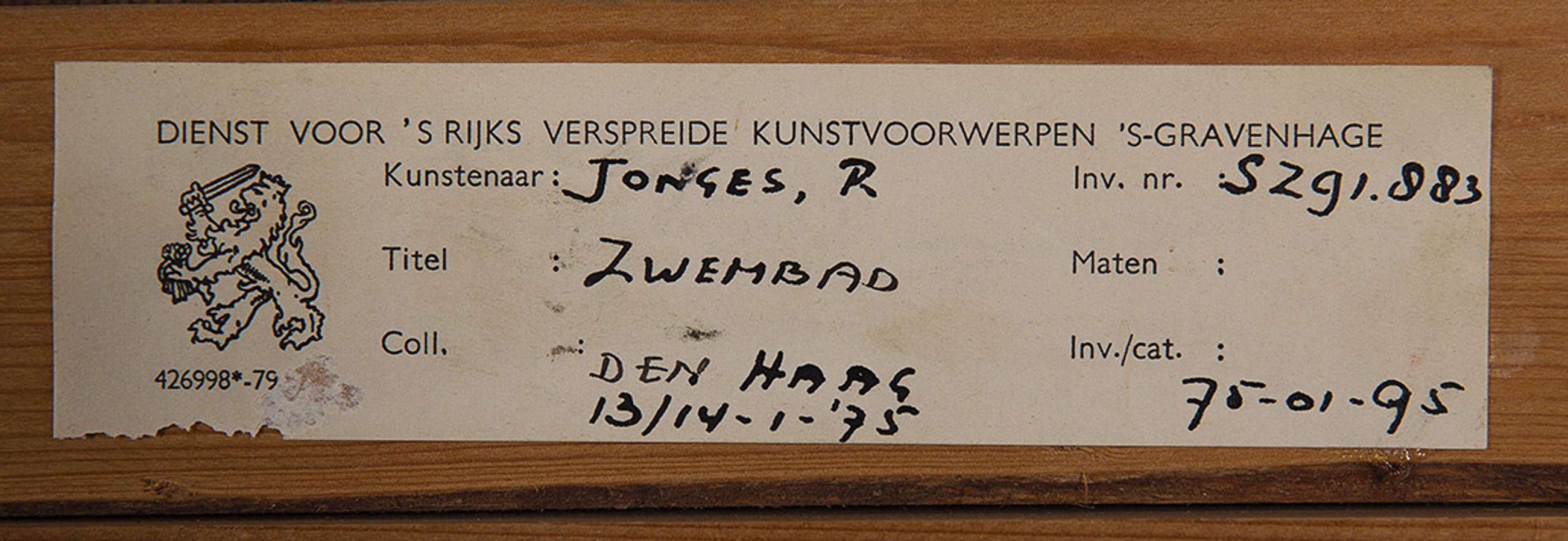Herkomst: BKR Den Haag (Het kunstwerk is afgevoerd uit de