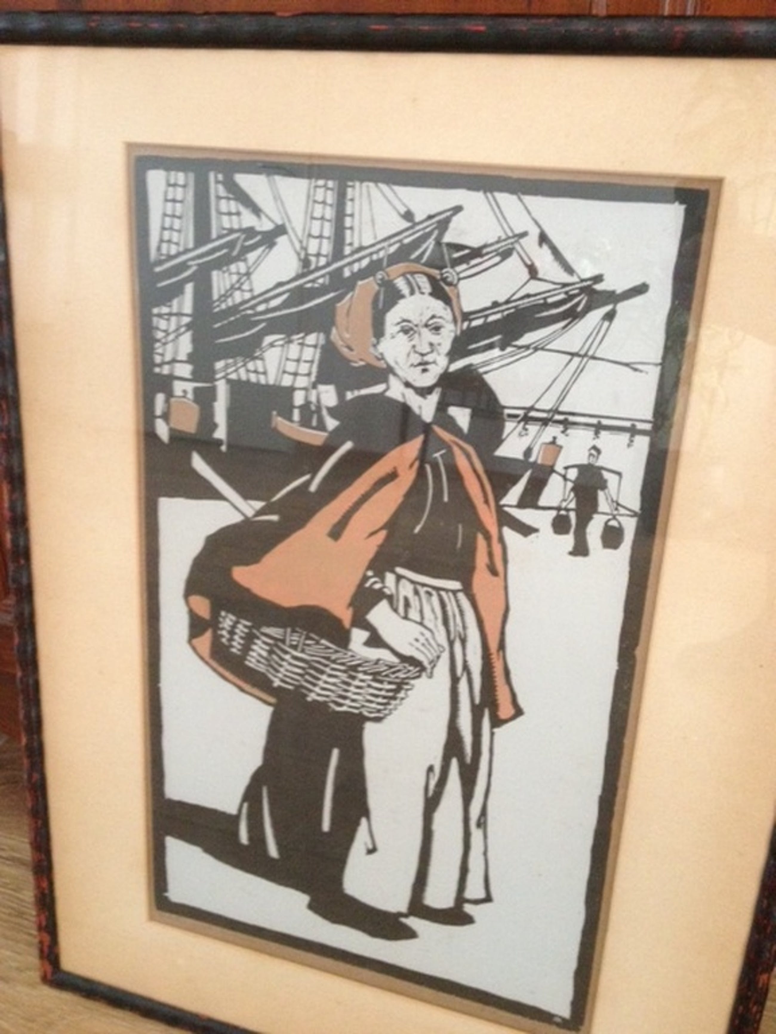 Visverkoopster in Scheveningen. Het werk zit nog origineel gelijst. Potlood gesigneerd.