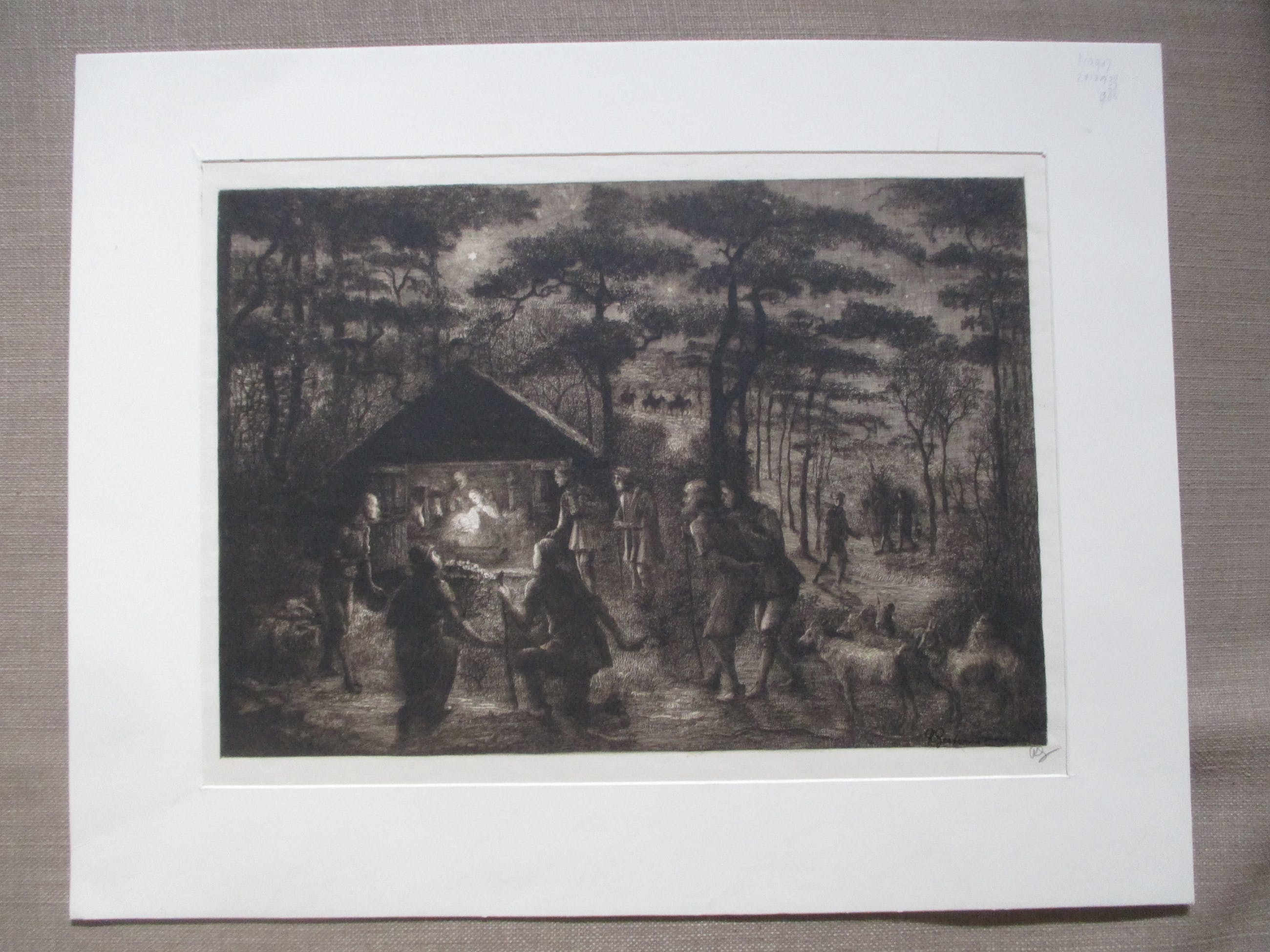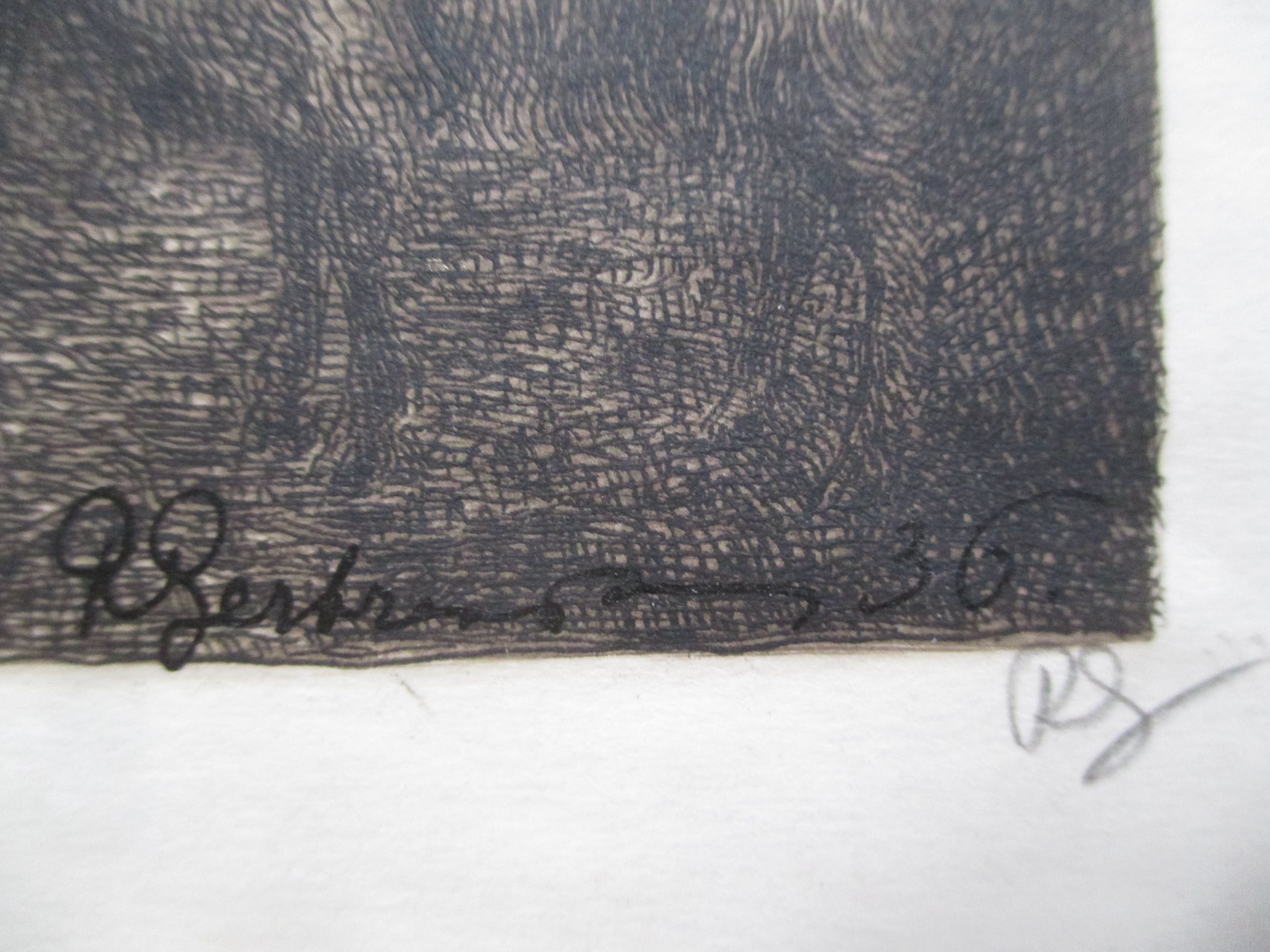 Fraaie ets van Roelf Gerbrands, gesigneerd en gedateerd in pen r.o. Geplaatst in papieren passe-partout (bovenaan getipt). verzending tussen twee platen, 8,25 aangetekend 10,20