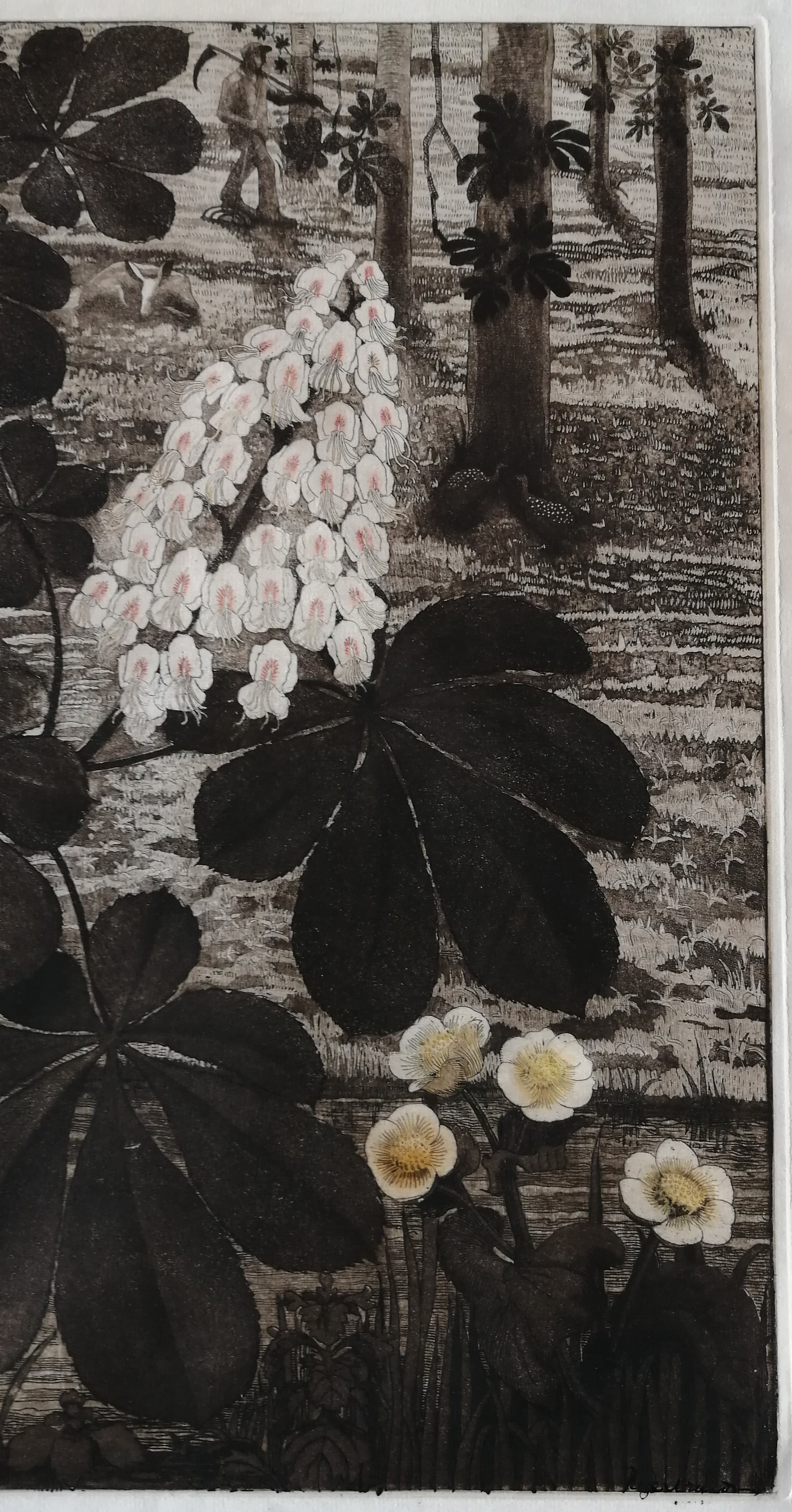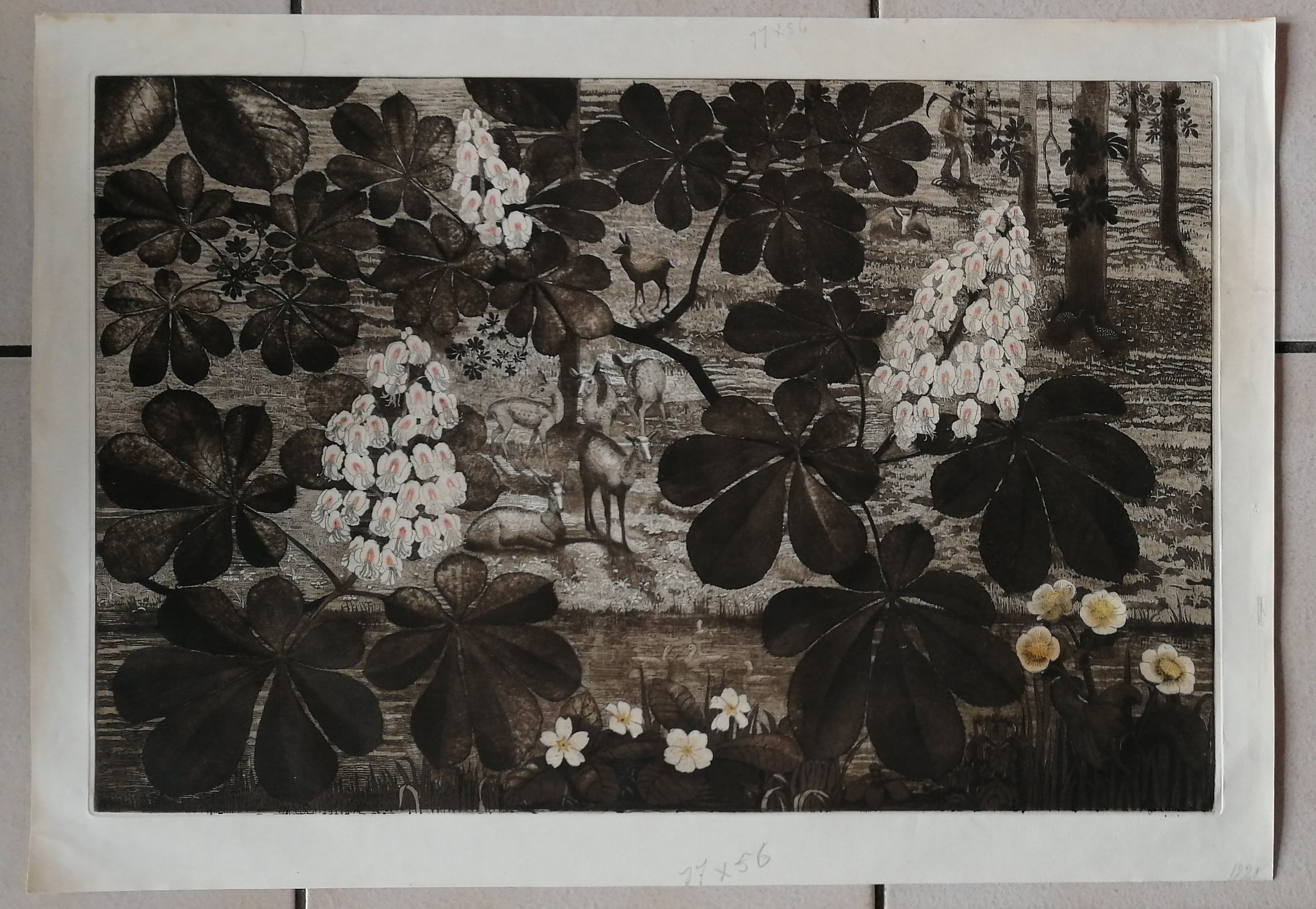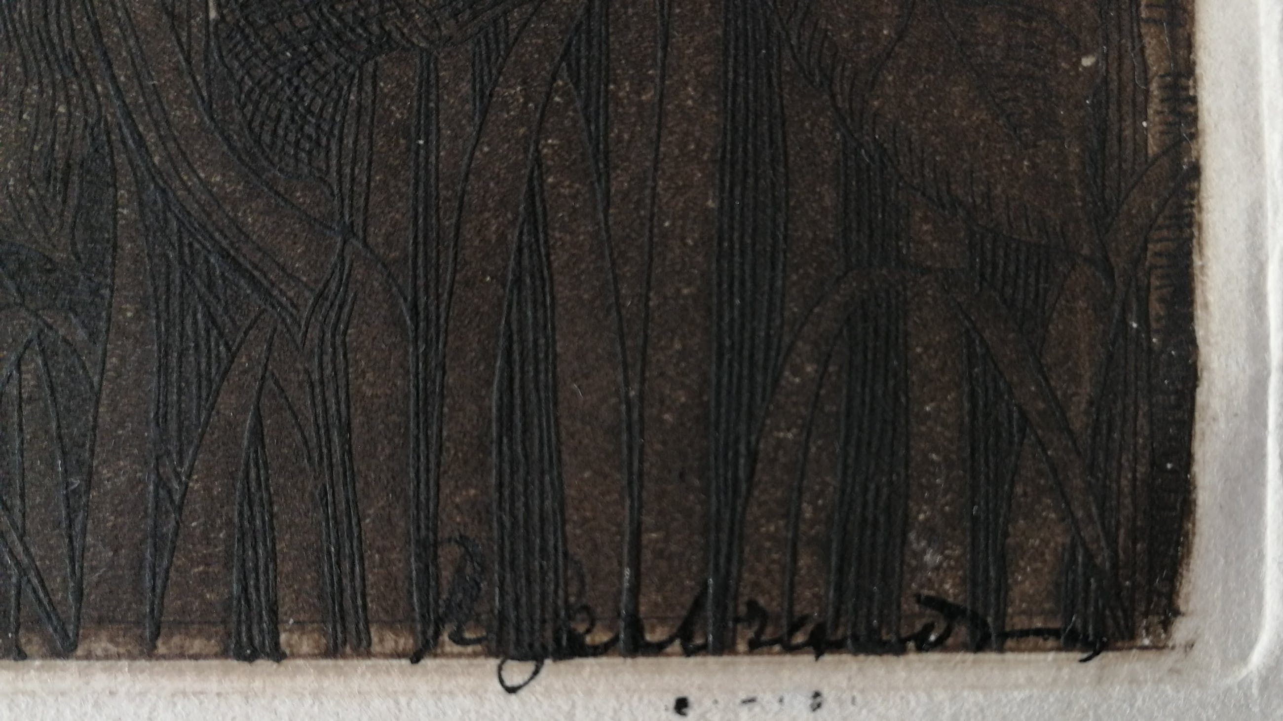 Mooie grote kleuren ets van Roelf Gerbrands. Losbladig.