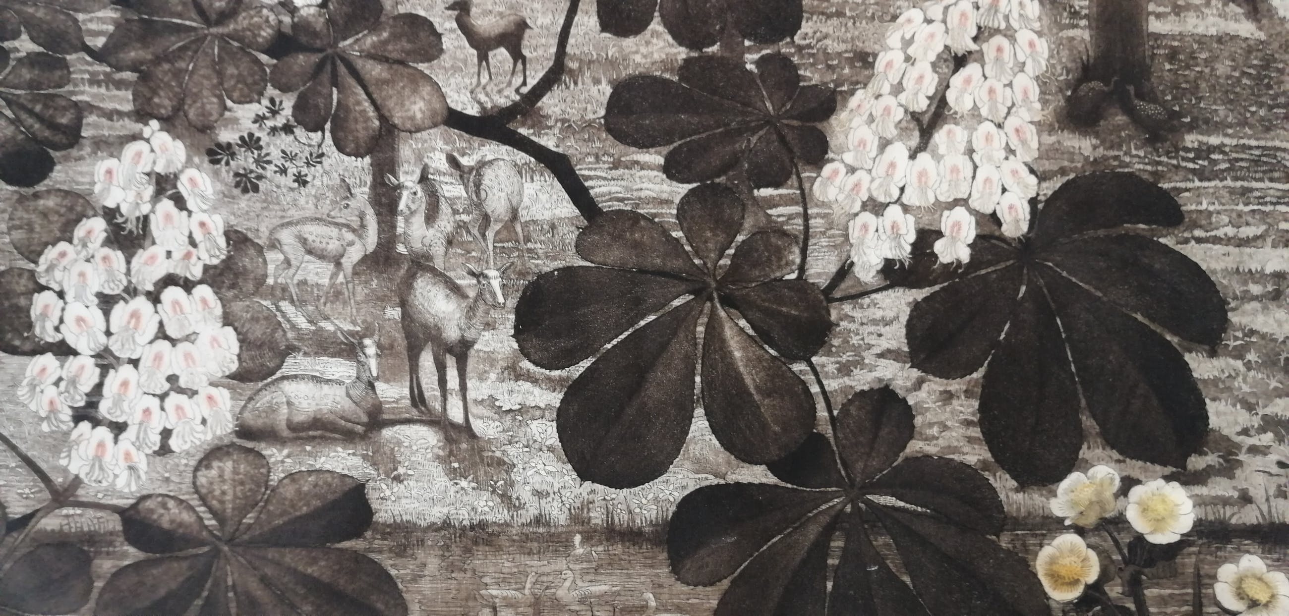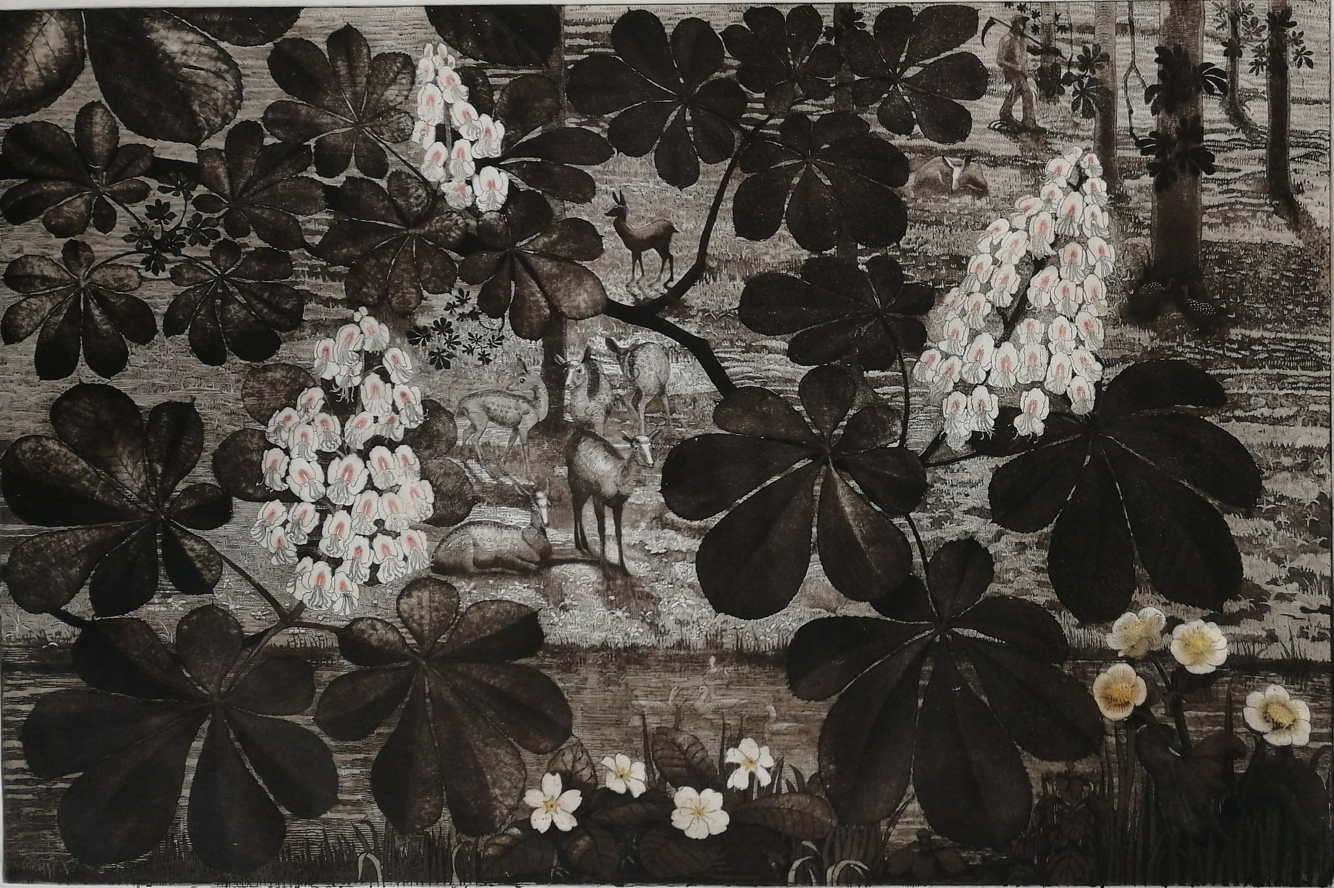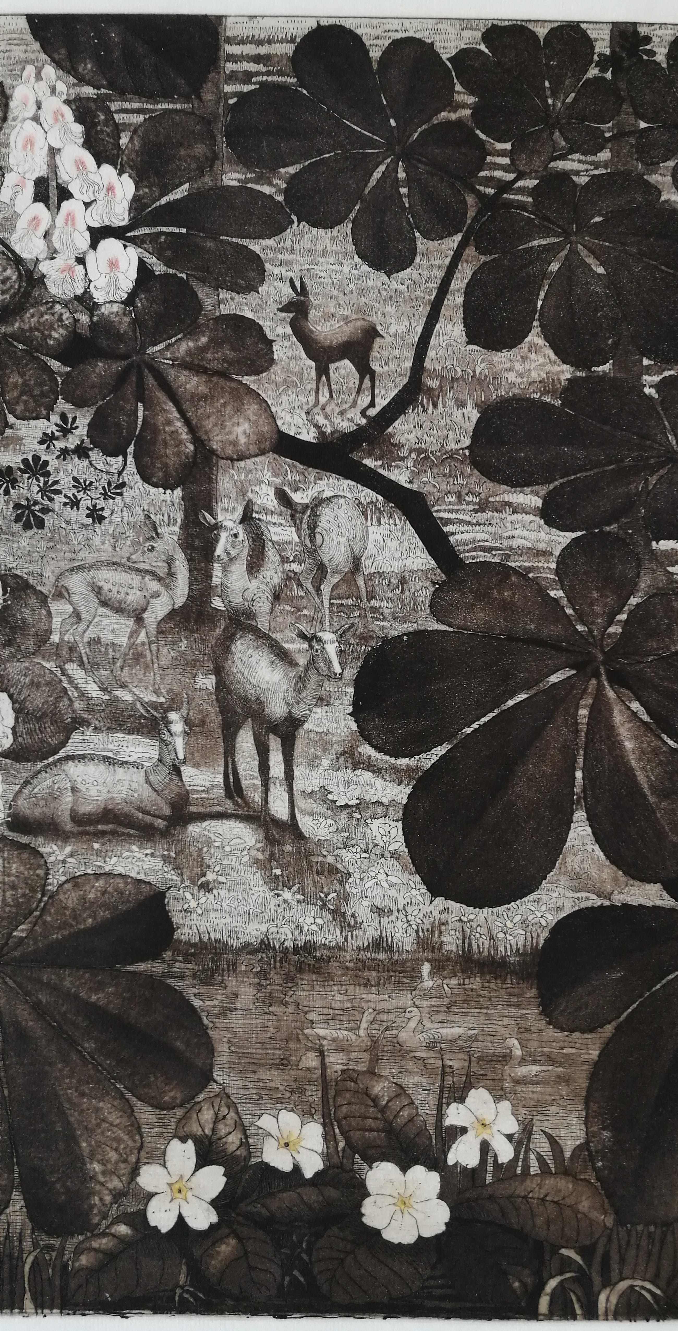 Mooie grote kleuren ets van Roelf Gerbrands. Losbladig.