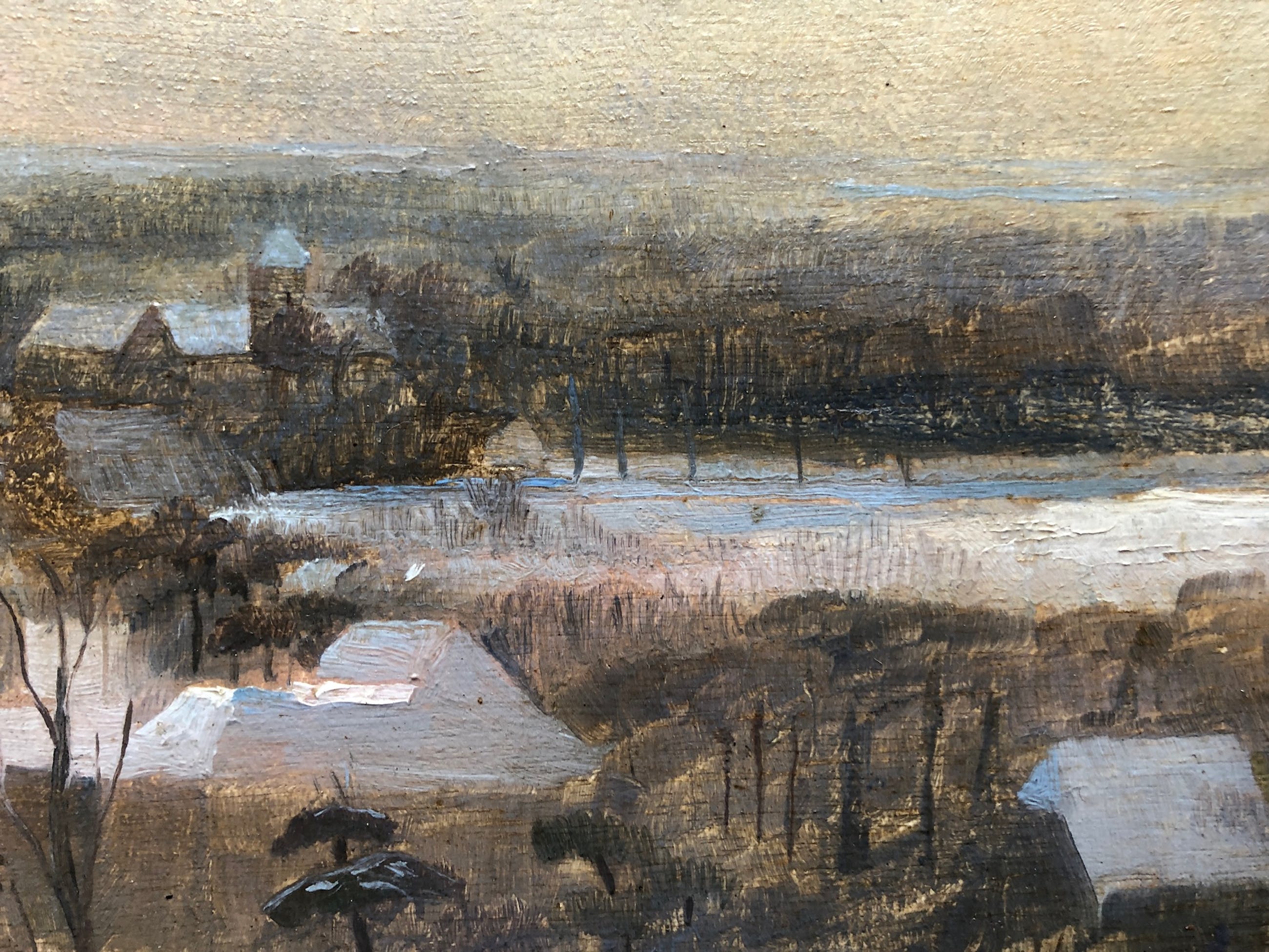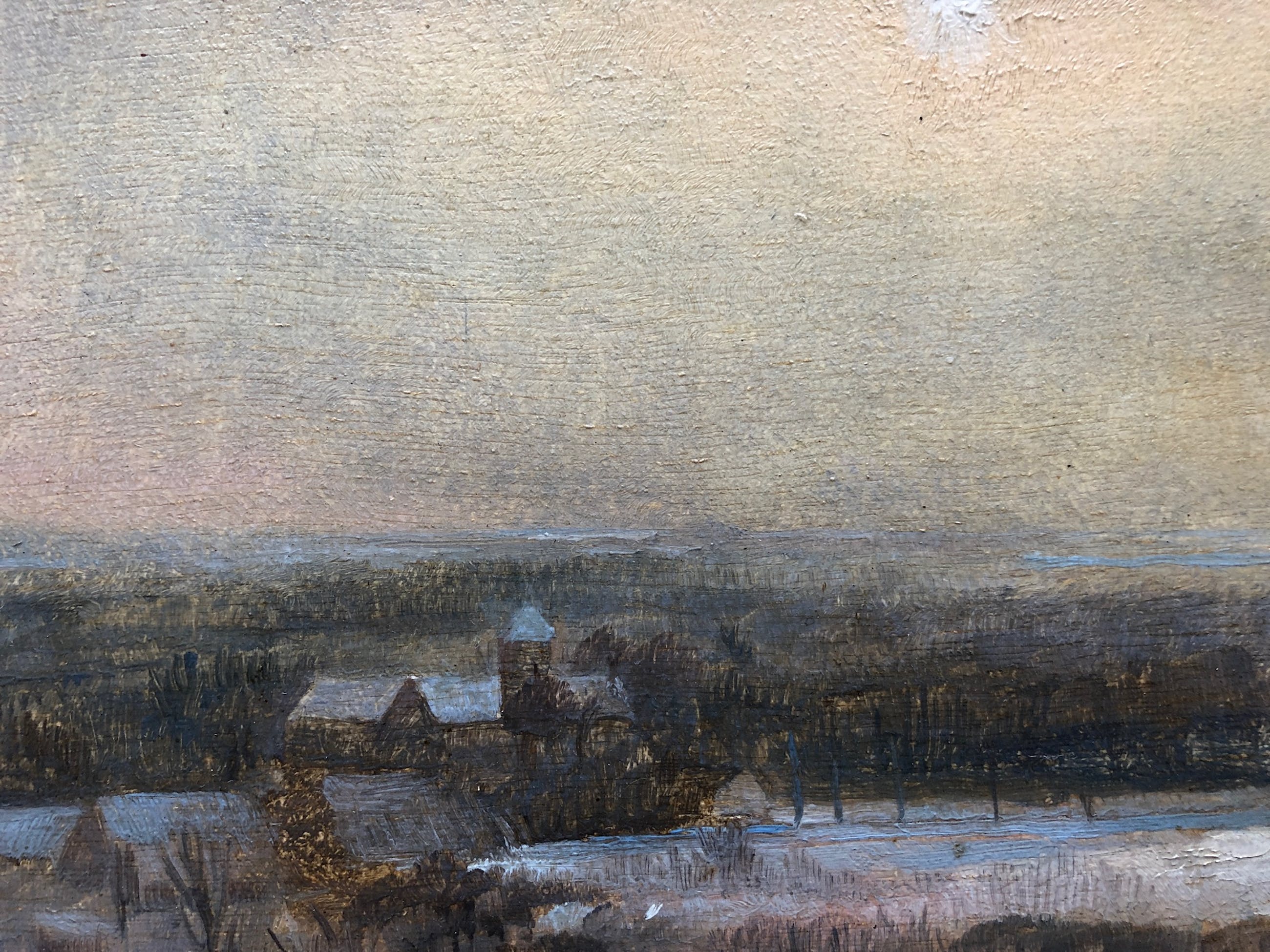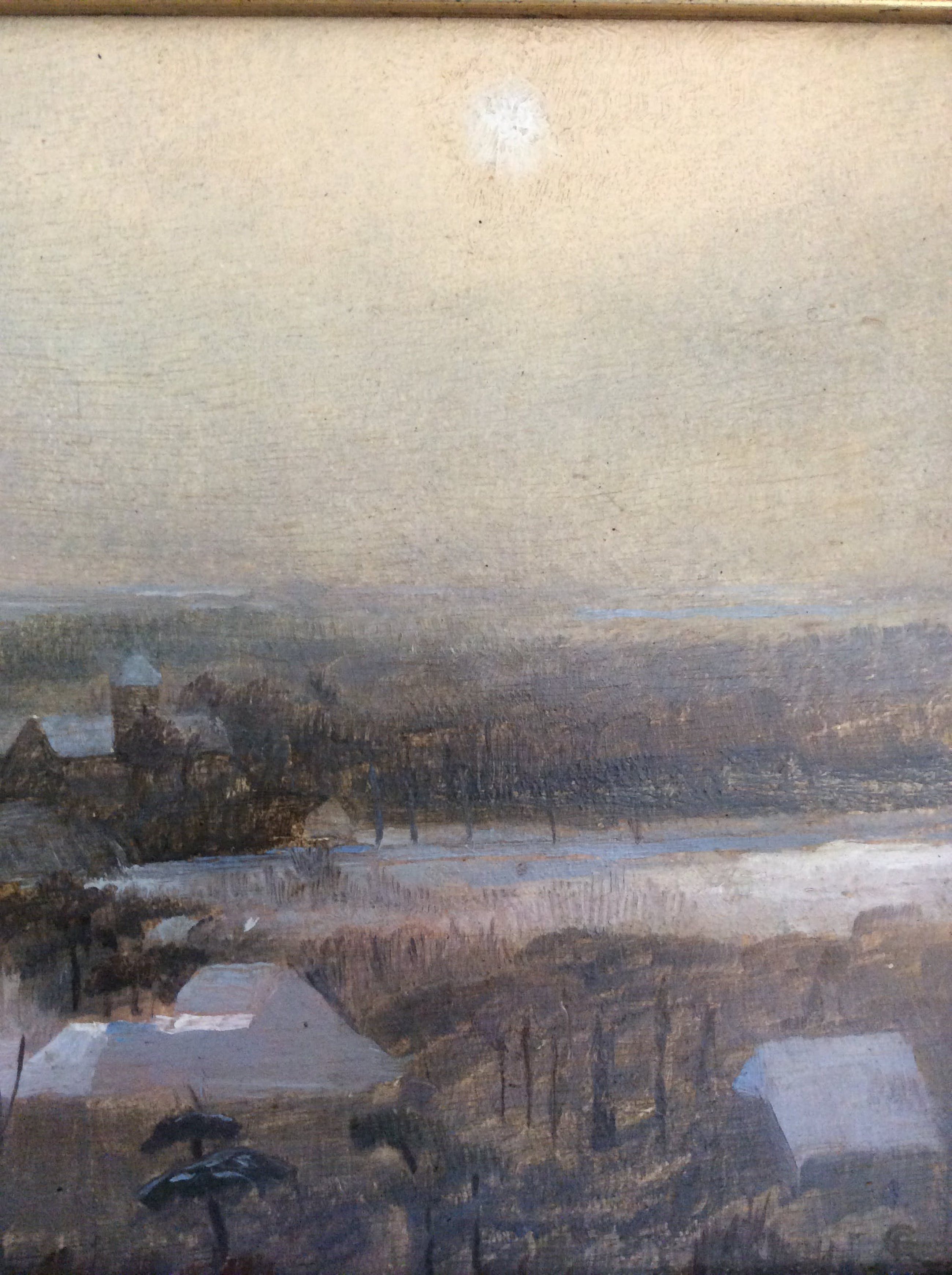 Mooi klein werk van de Roelf Gerbrands uit 1932. Rechts onder Sign. De R staat door de G. Limburgs besneeuwd landschap met zon. Zijn werk bevindt zich in het Frans Hals museum in Haarlem en in het Rijksmuseum Amsterdam