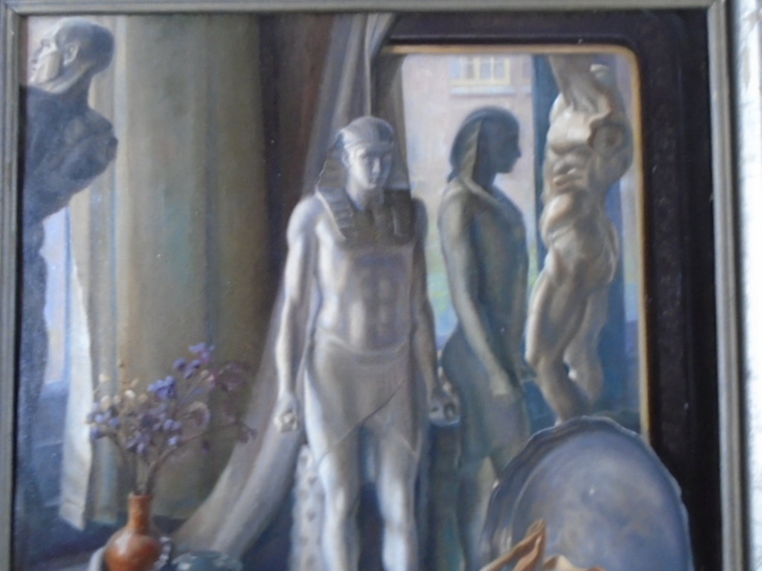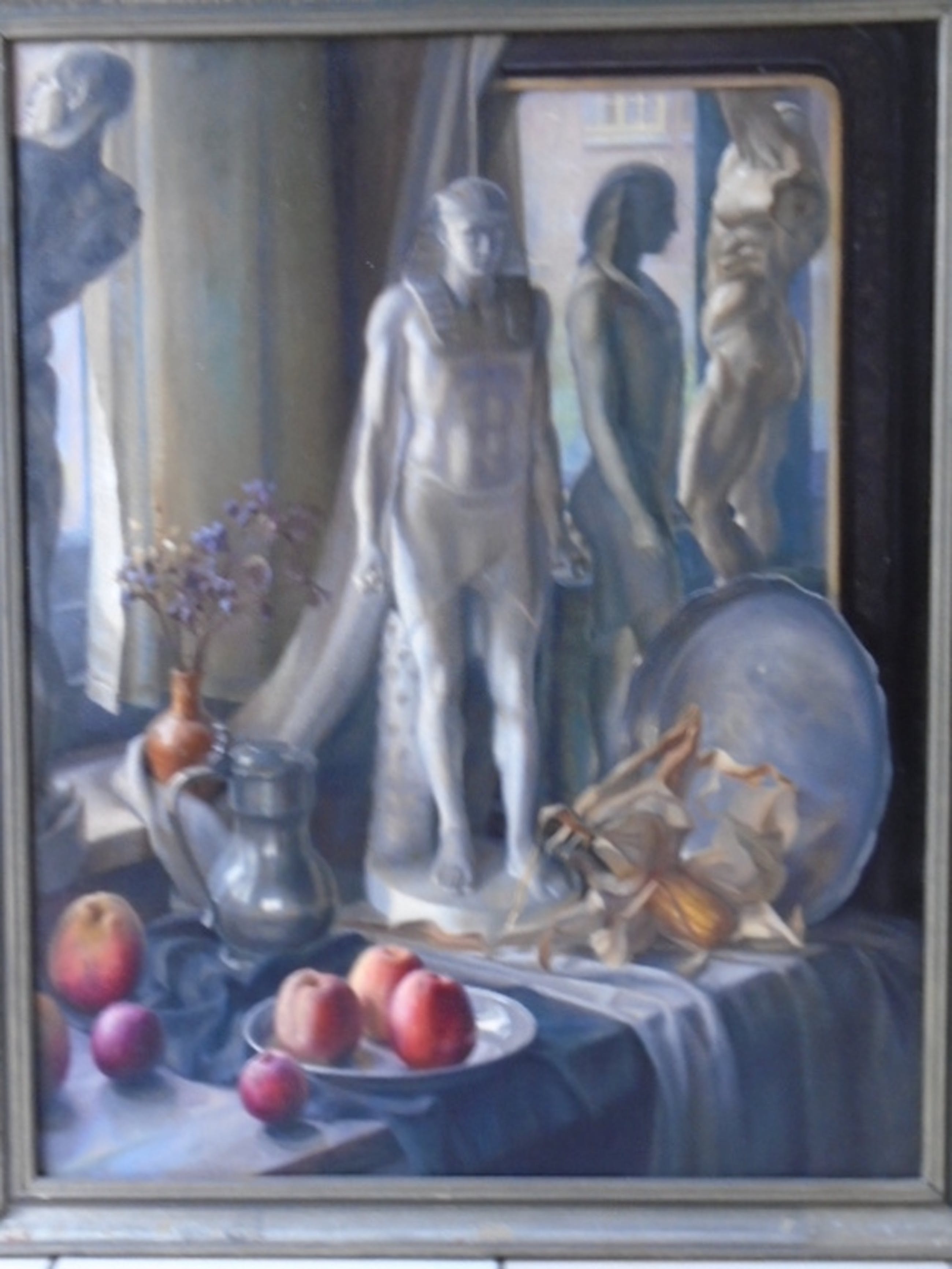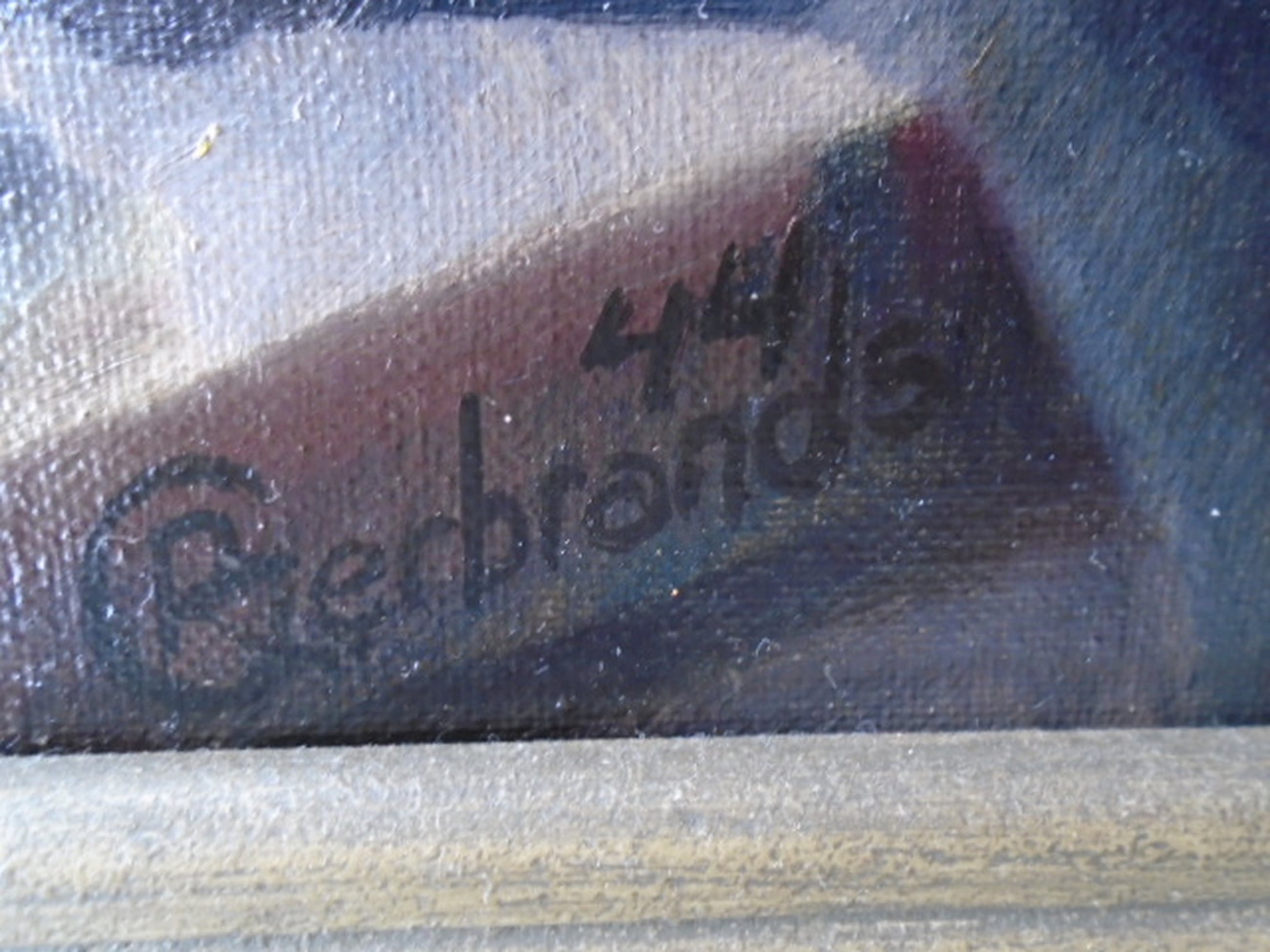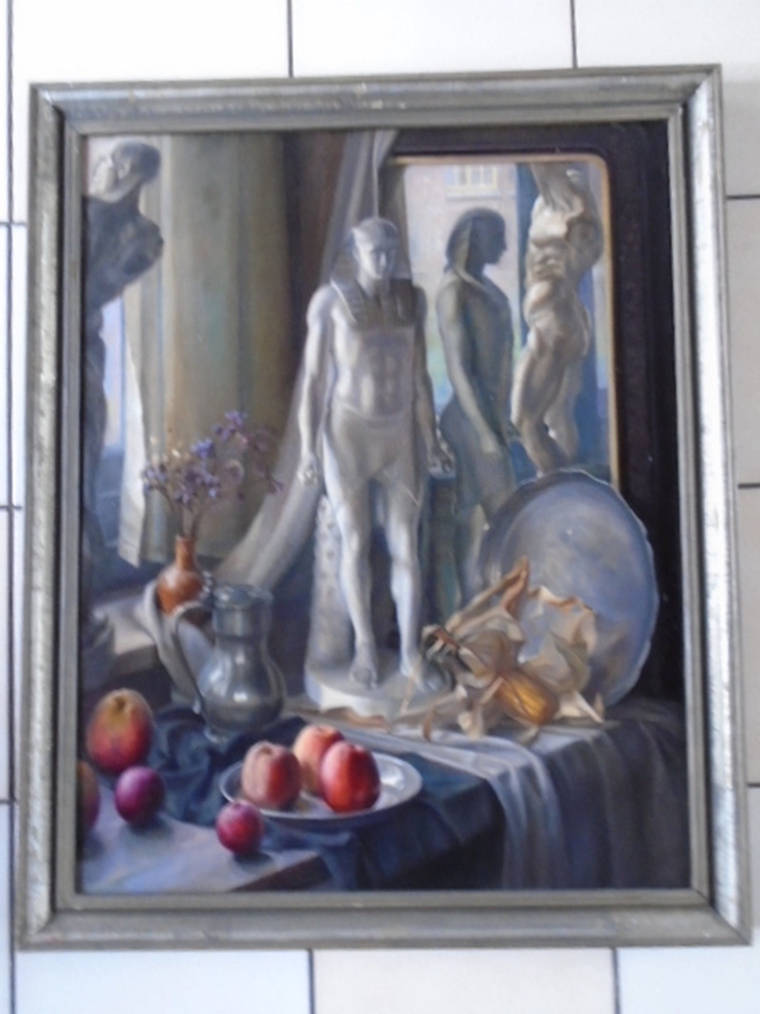 Doekmaat 87 x 69 cm. Ingelijst. Lijstmaat 97 x 79 cm. (Lijst heeft beschadigingen).