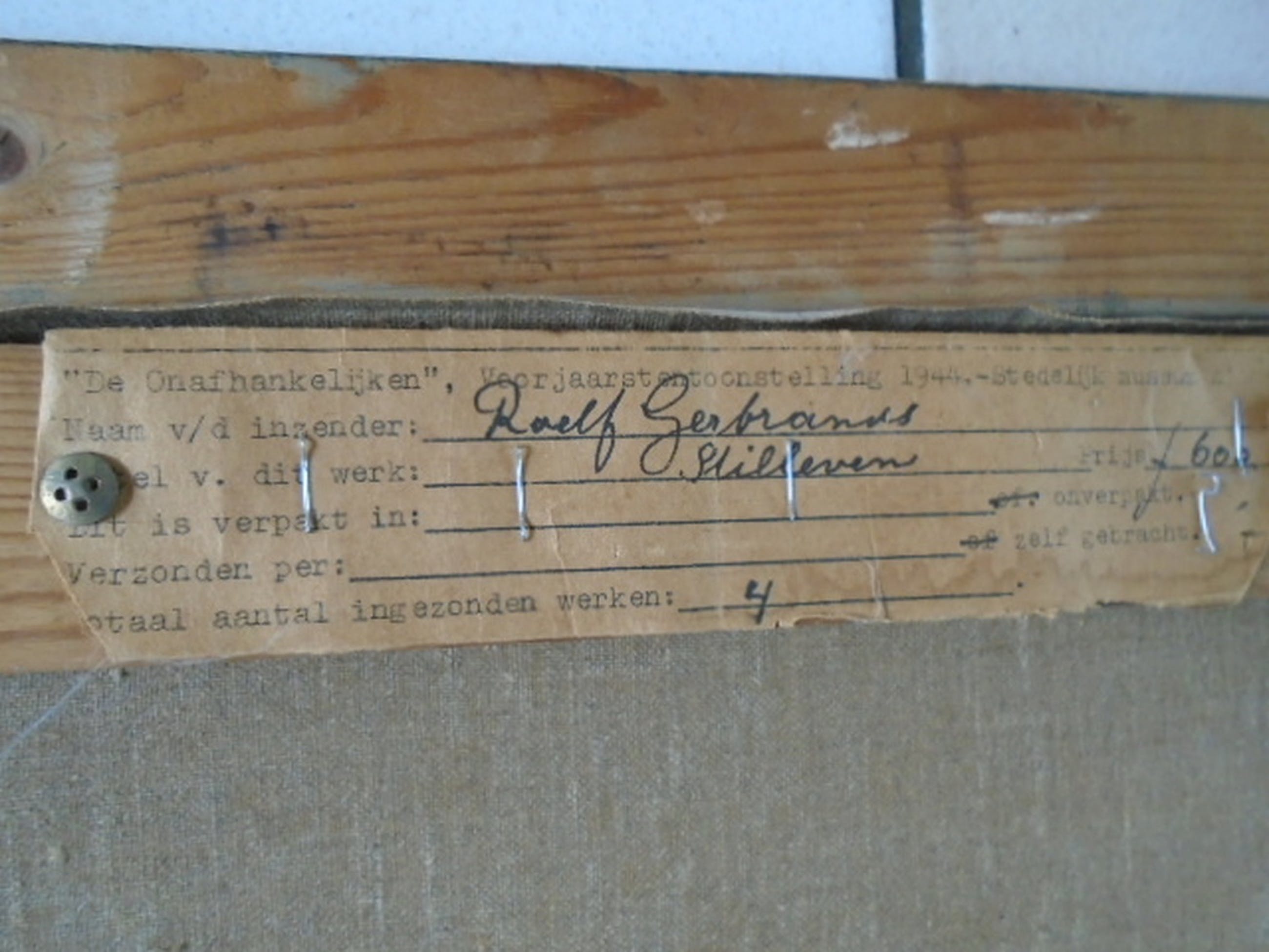 Dit werk was ingezonden via kunstenaarsvereniging "De Onafhankelijken" in de Voorjaarstentoonstelling van 1944
