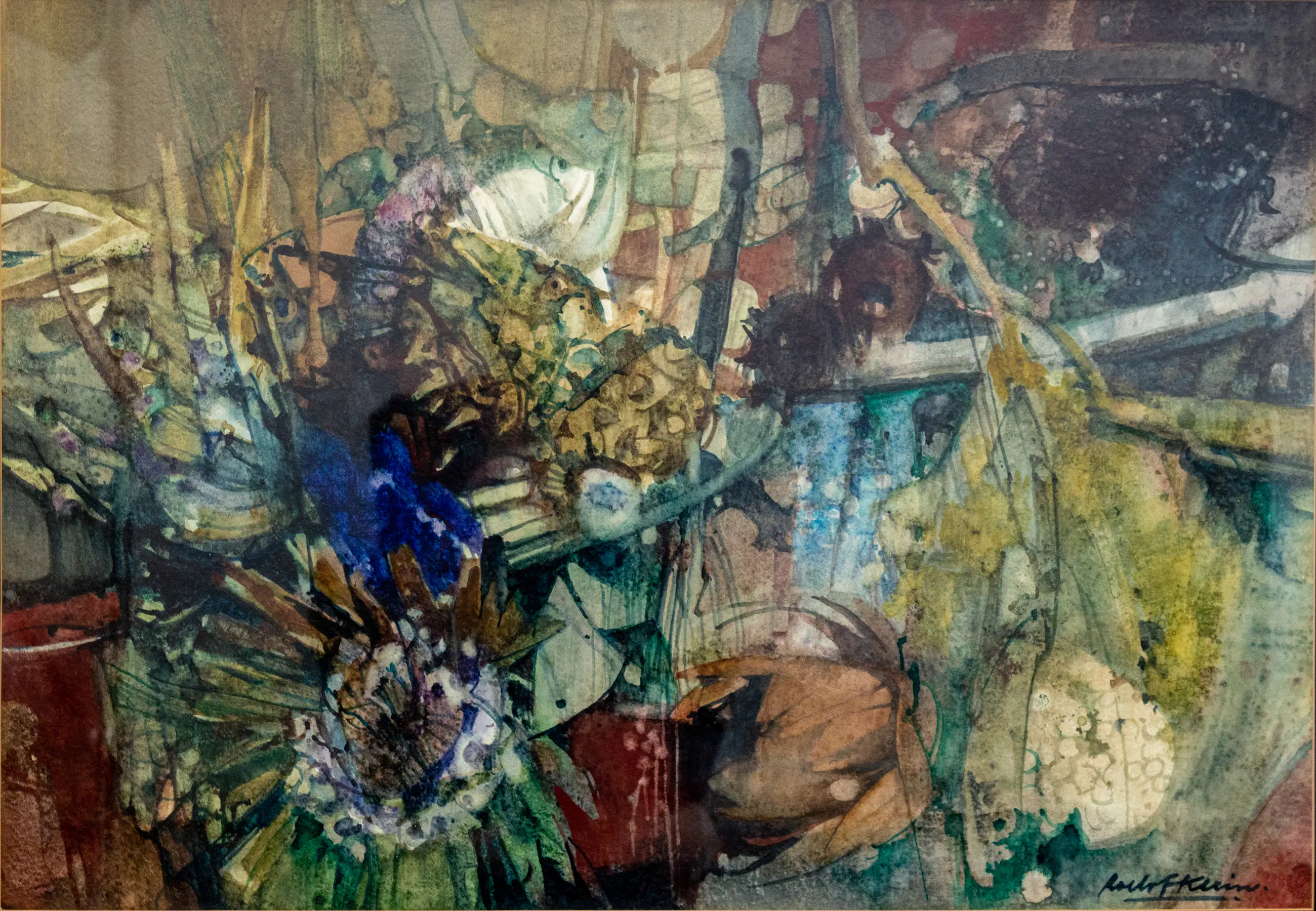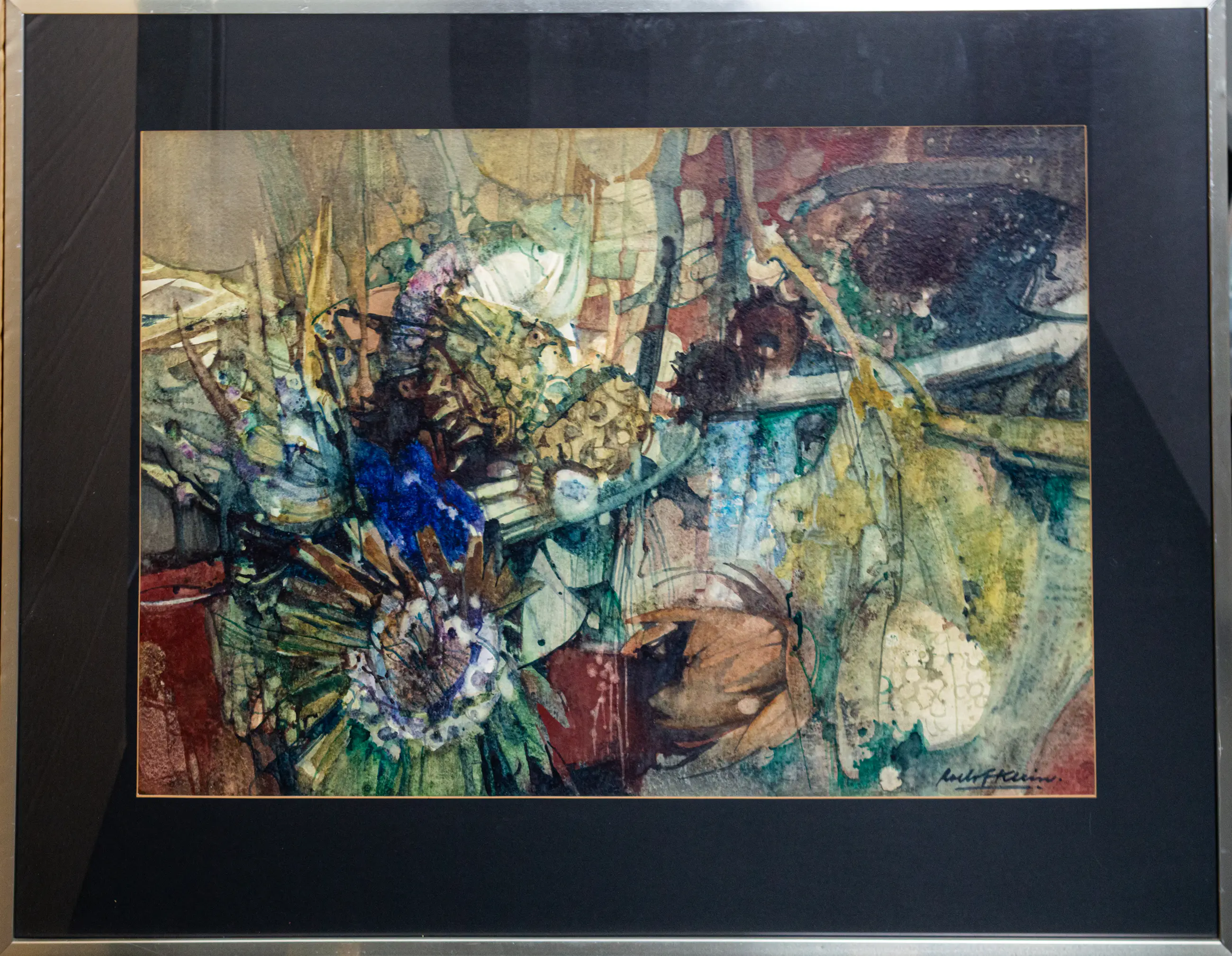 bloemstilleven. De aquarel is gekocht in 1974 via Galerie Ina Broerse, Amsterdam. Het werk is in heel goede staat, géén ingeschoten kleuren en zit nog in de oorspronkelijke lijst.