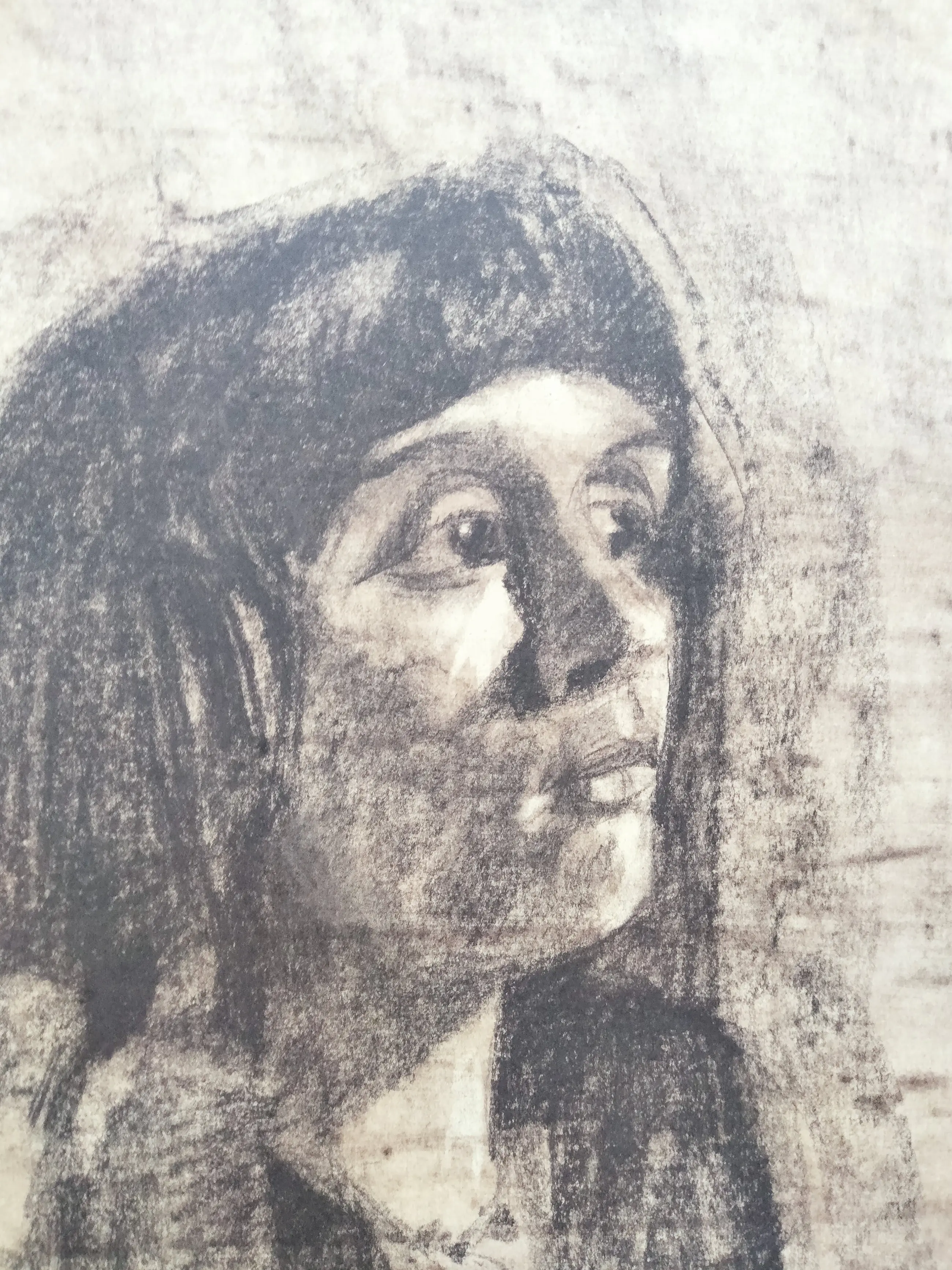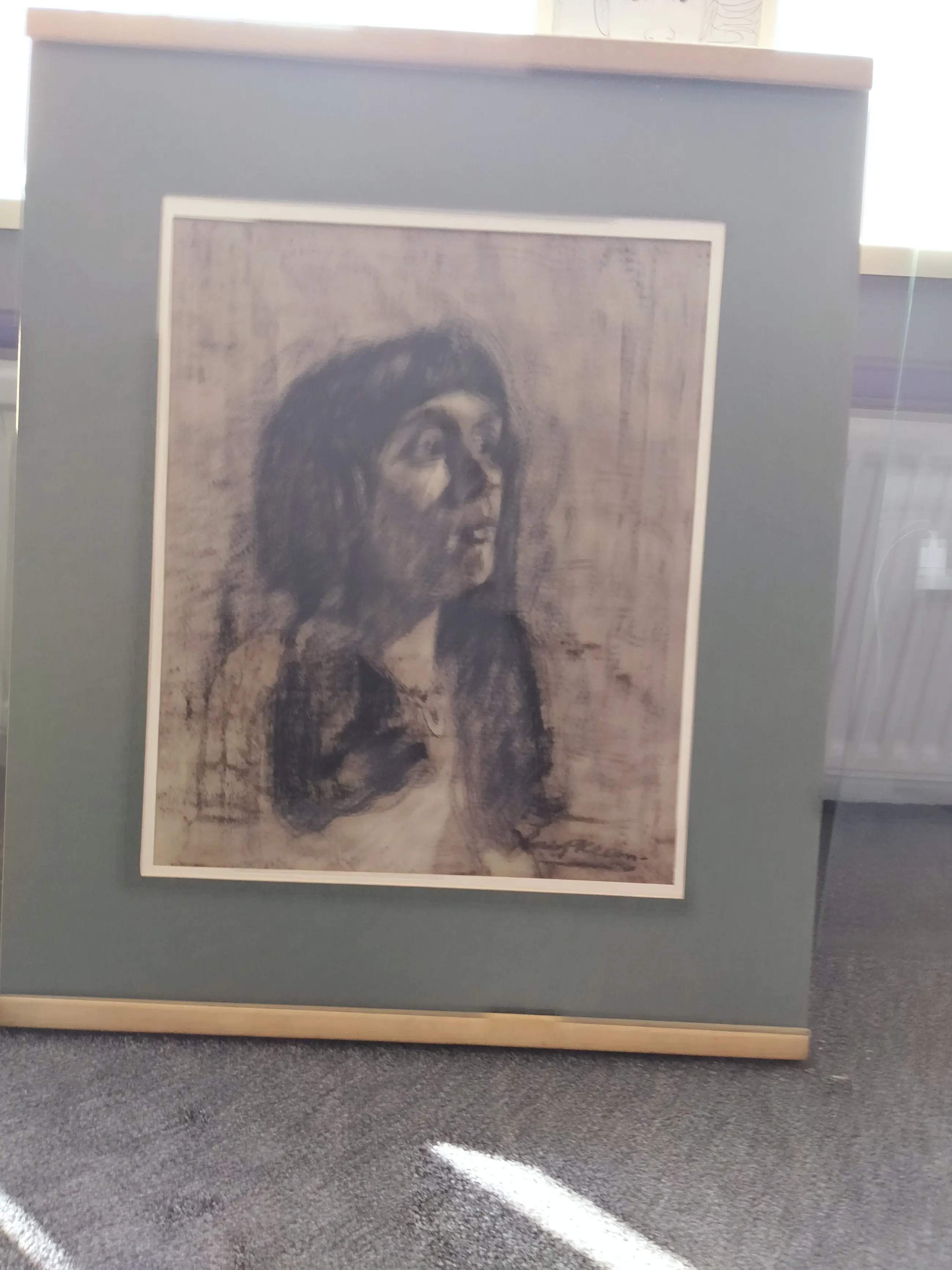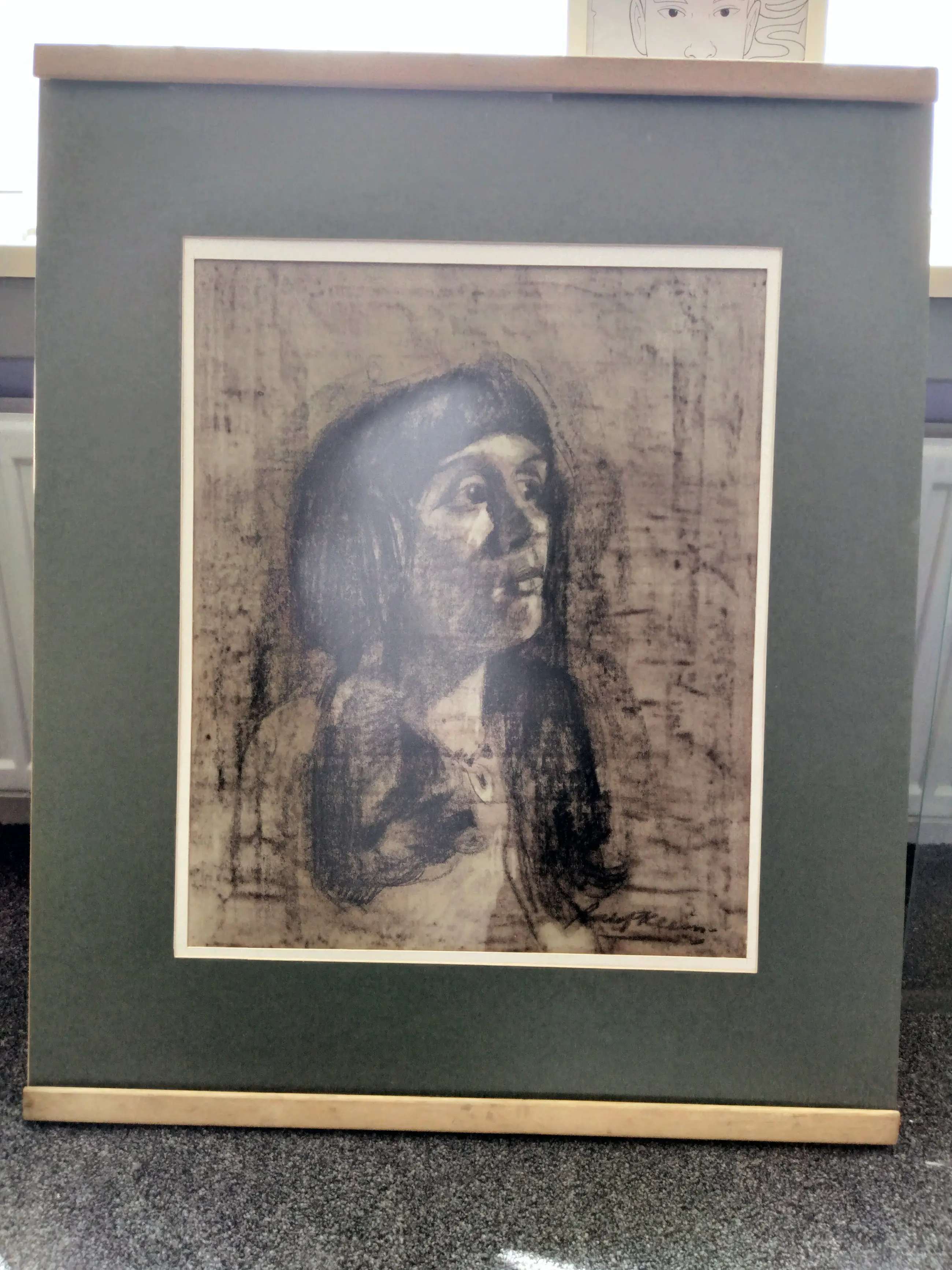 Mooi groot potret van meisje op papier met krijt gemaakt in 1967 .85cm hoog 70cm breed in dubbel passepartout netjes ingelijst en uiteraard achter glas