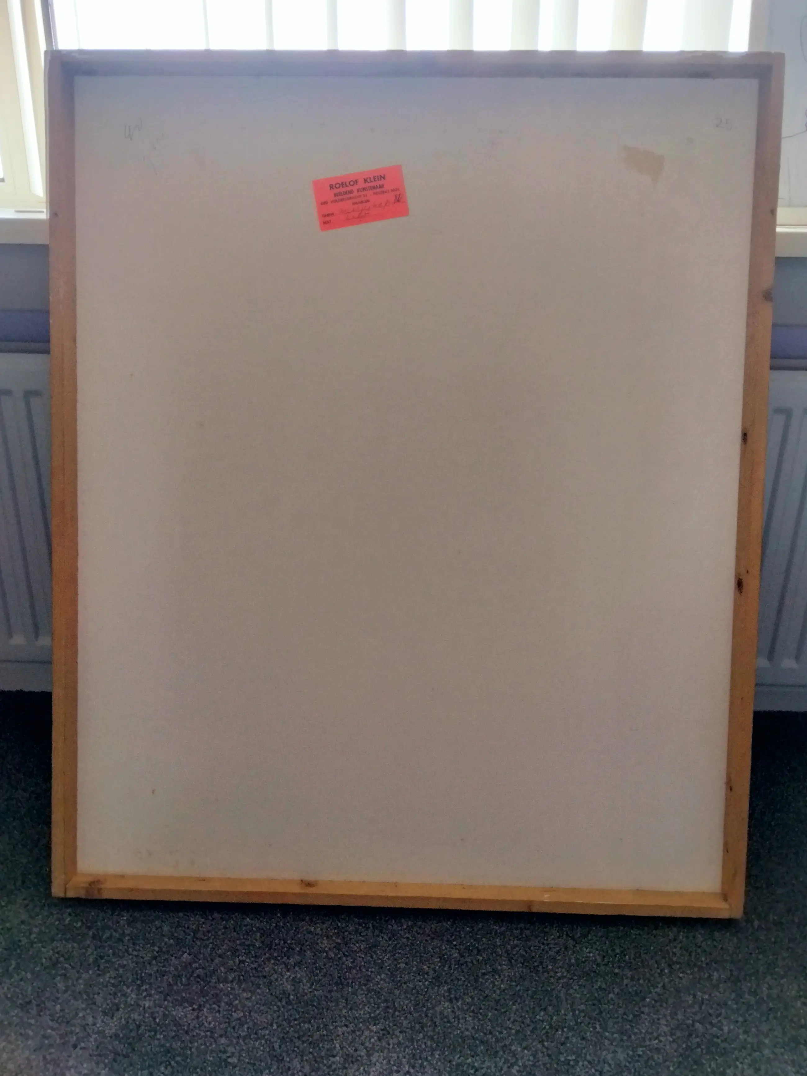 Het werk is af te halen op locatie. Als koper dient u zelf verpakkingsmateriaal mee te nemen. De locatie is: Haarlem, Nederland