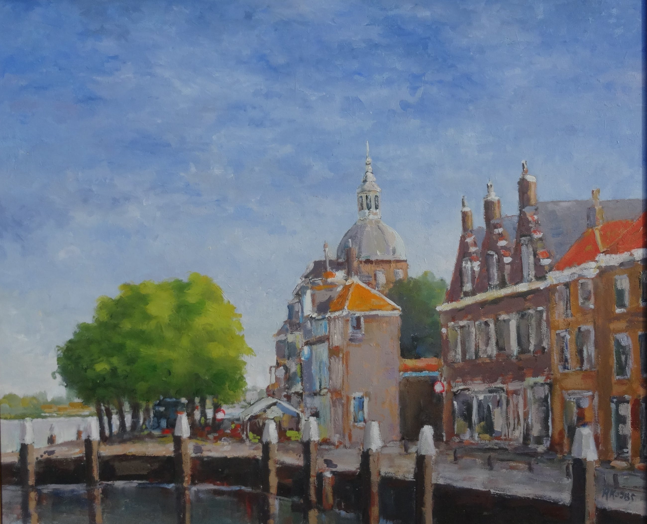Het schilderij is gemaakt met kijk op het Groothoofd aan het rivierenkruispunt bij Dordrecht.