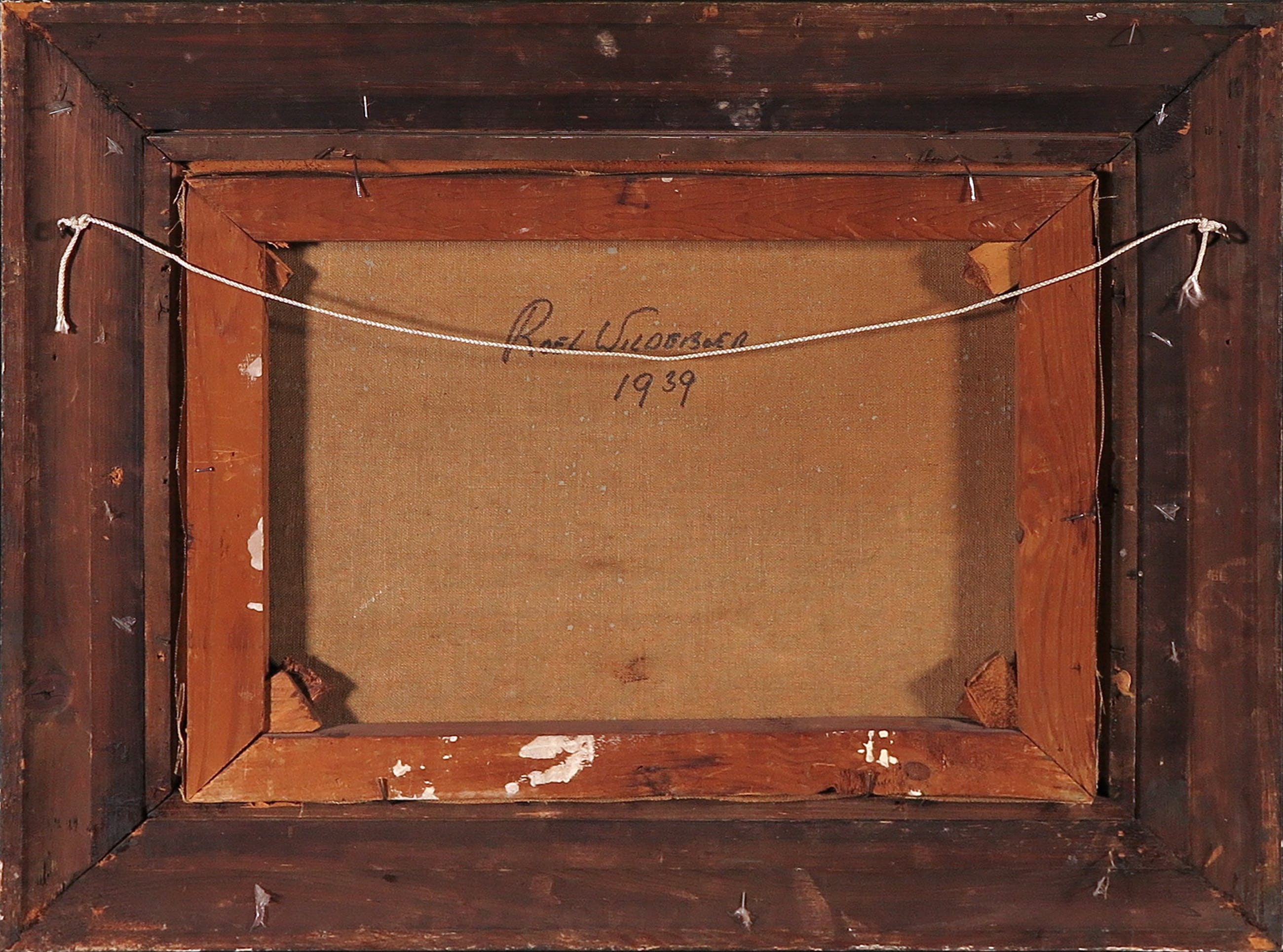 | Lichte golving in het doek en enige slijtage langs de randen. Paar kleine plekjes vuil op de verflaag. De lijst heeft een paar beschadigingen. Gezien de leeftijd in goede conditie. | |