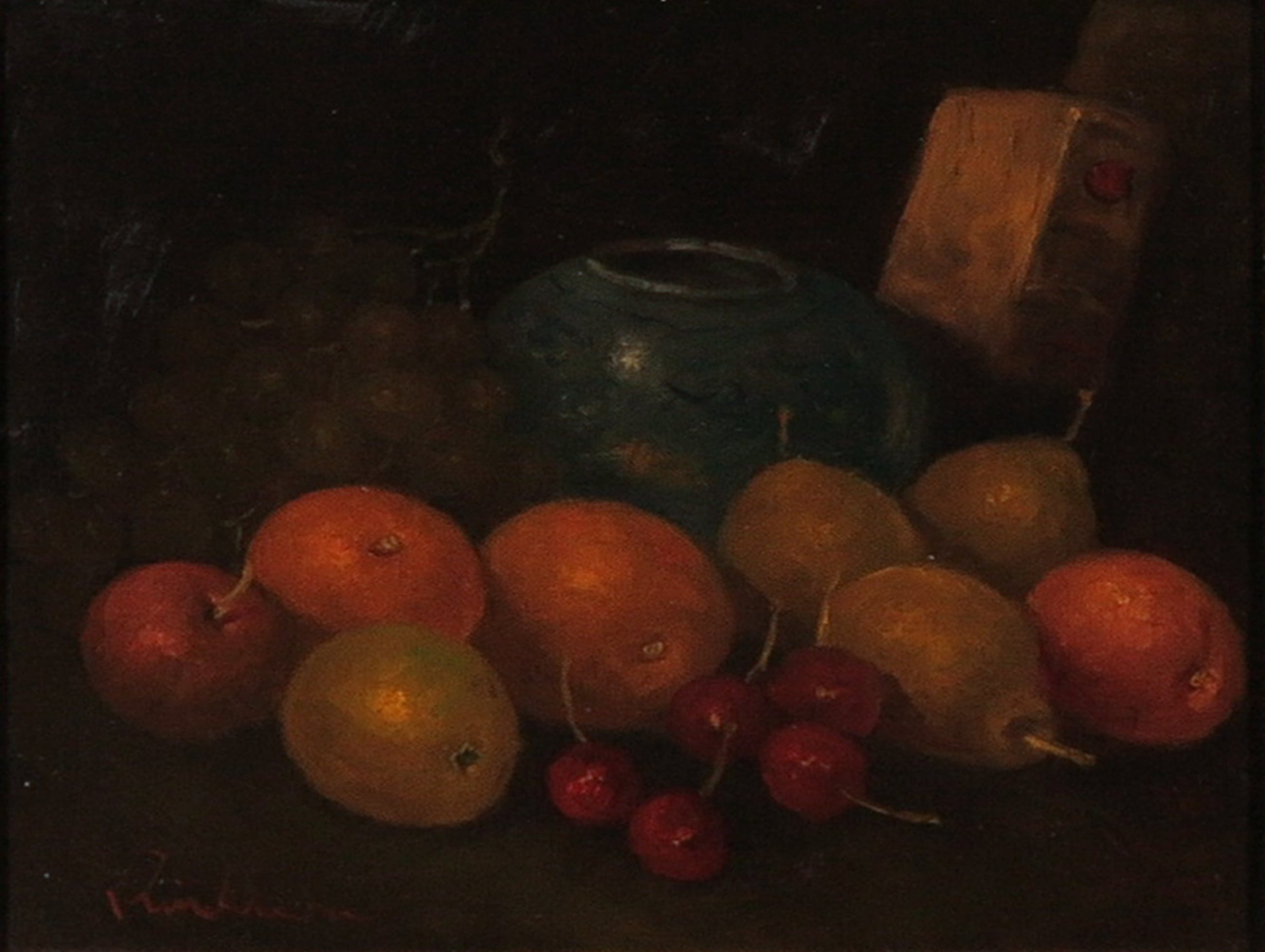 | Op een paar plekken lichte slijtage in de vernislaag, met name in strijklicht zichtbaar. | |