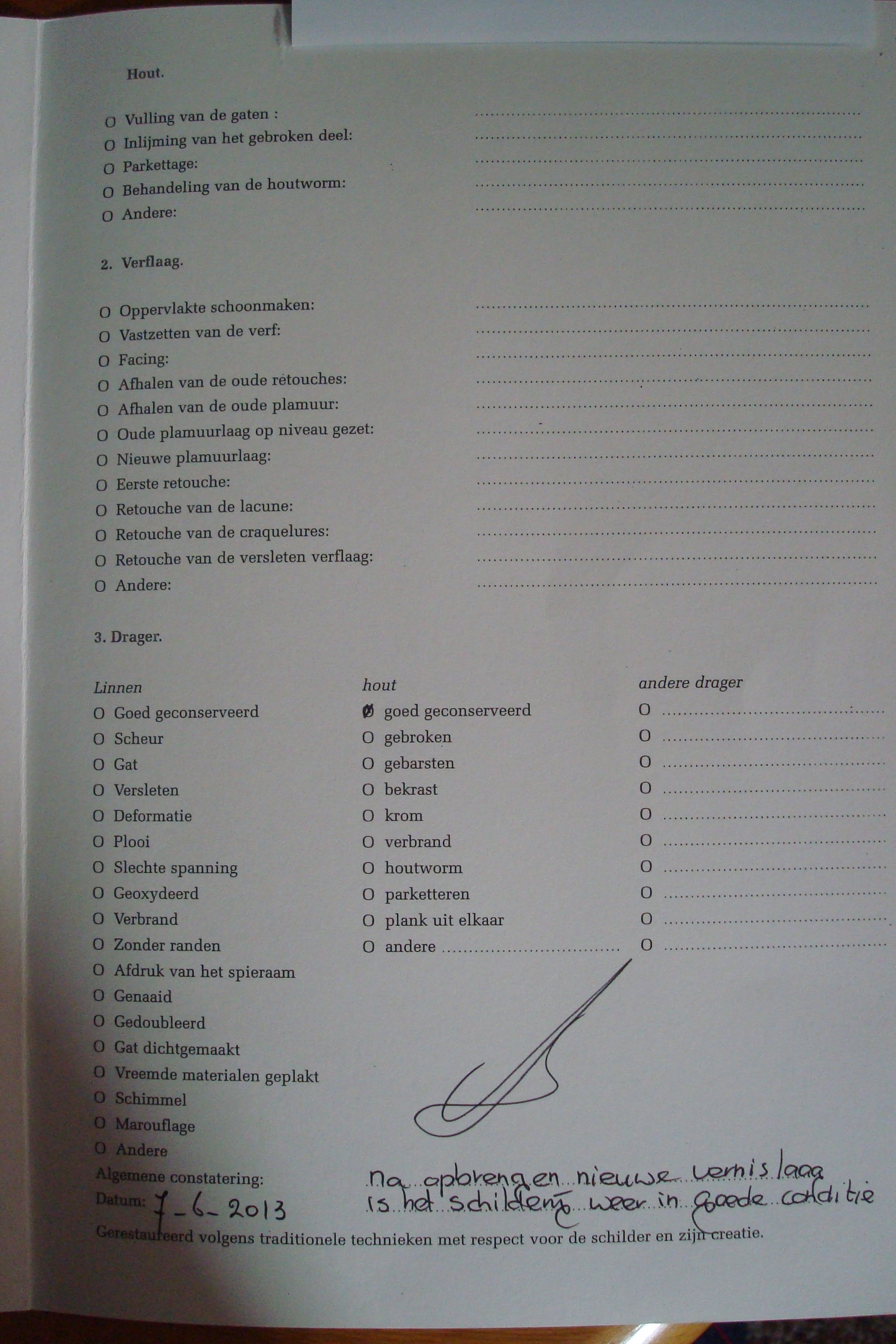 In juni 2013 gerestaureerd (o.a. schoon gemaakt en voorzien van nieuwe vernis laag)Volledig restauratie rapport aanwezig.