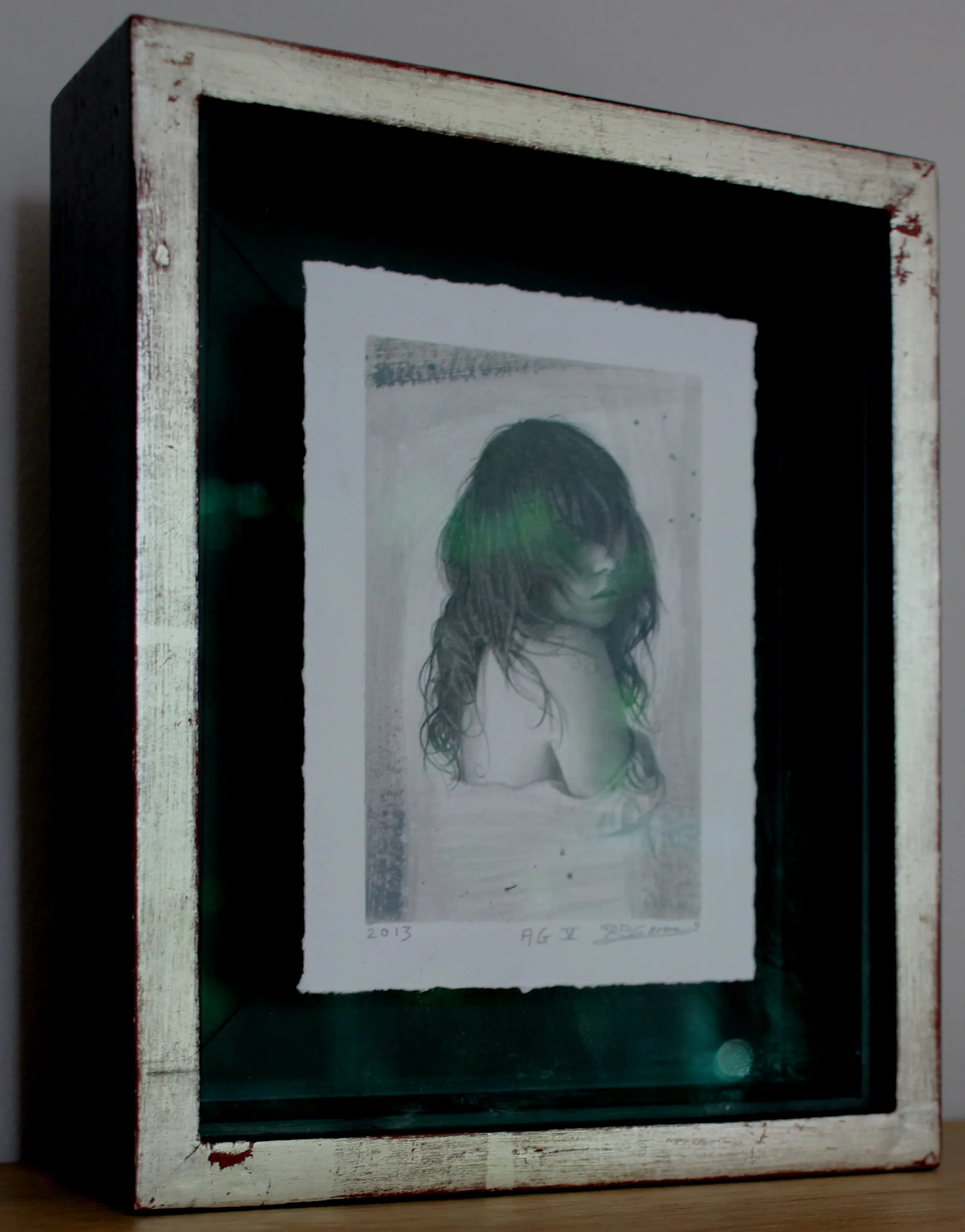 Ingelijst werk(grafiet en acryl) van Roger Braun. Titel: achter glas V. Jaar: 2013. Afmetingen incl lijst: H17 x b14cm. Afmetingen voorstelling: H11 x b8cm. Het werk is rechts onder gesigneerd door de kunstenaar. De authenticiteit van het aangeboden werk wordt volledig gegarandeerd. Een certificaat van echtheid kan, op aanvraag, worden gegarandeerd.