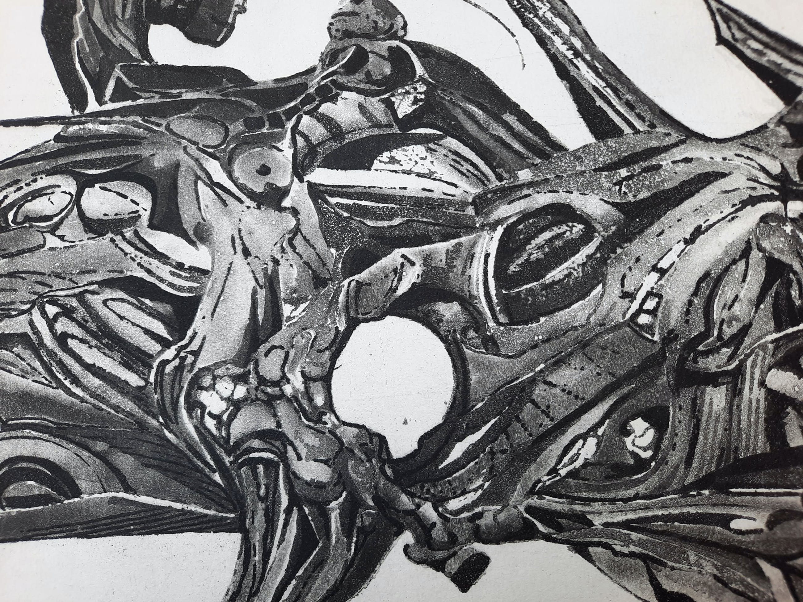 Prent 190 gaf jaarlijks series van werken van hedendaagse grafische kunst uit, welke in oplagen van 190 exemplaren werden vervaardigd. Elk jaar werden er andere kunstenaars gevraagd om aan Prent 190 mee te werken. Werk is nooit ingelijst geweest. Wordt verzekerd verzonden. Afhalen in de galerie in Zaandam geniet de voorkeur.