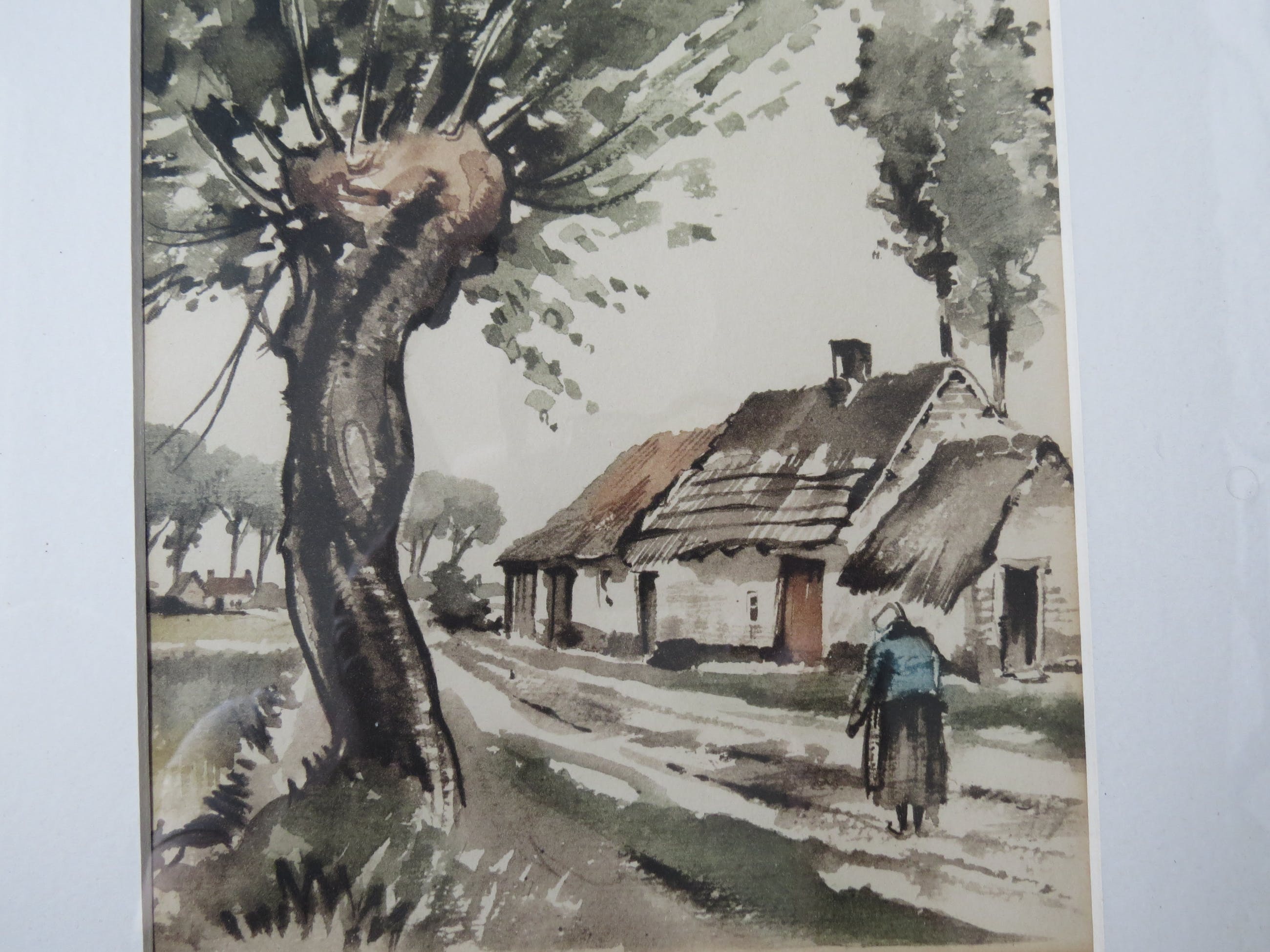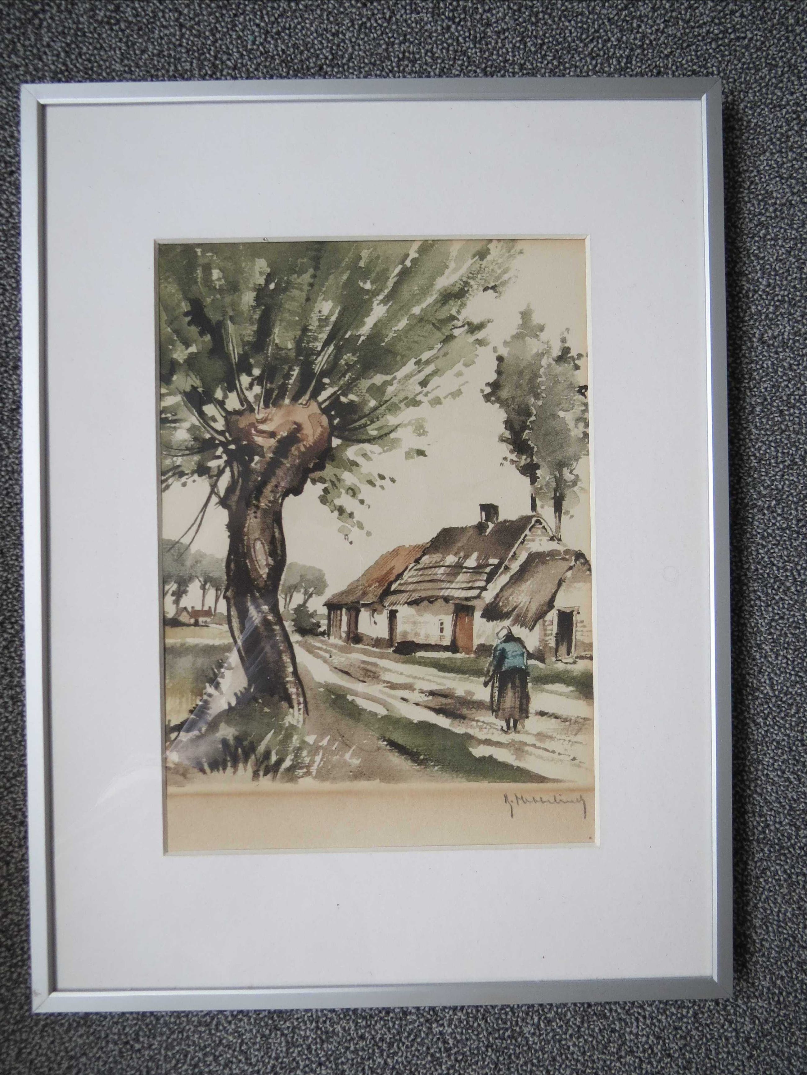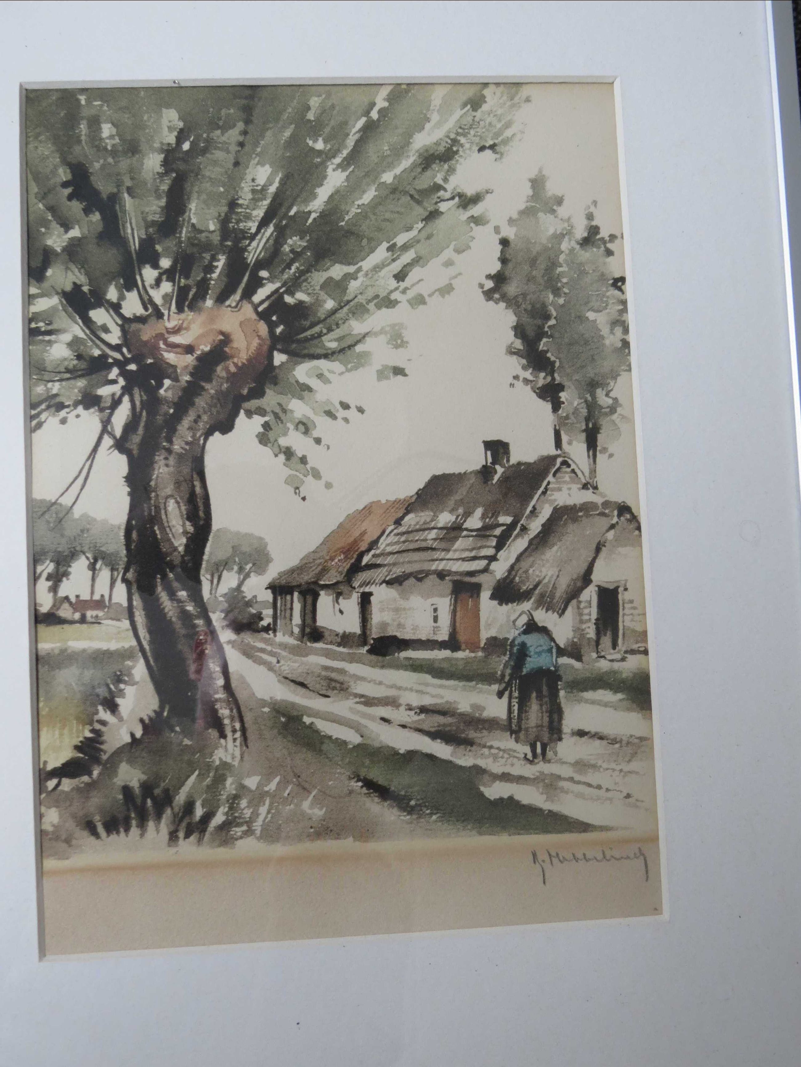 Fraaie (in) gekleurde ets van Roger Hebbelick, werk en lijst zijn in prima conditie