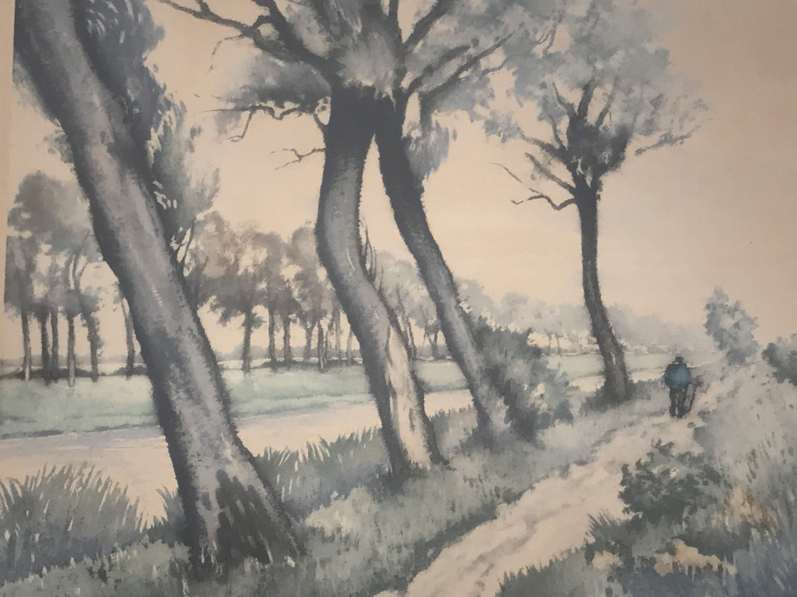 Een prachtige kleuren lithografie van Roger Hebbelinck getiteld op achterzijde: 'Canal en Flanders'. Het betreft de eerste druk van 350 exemplaren!