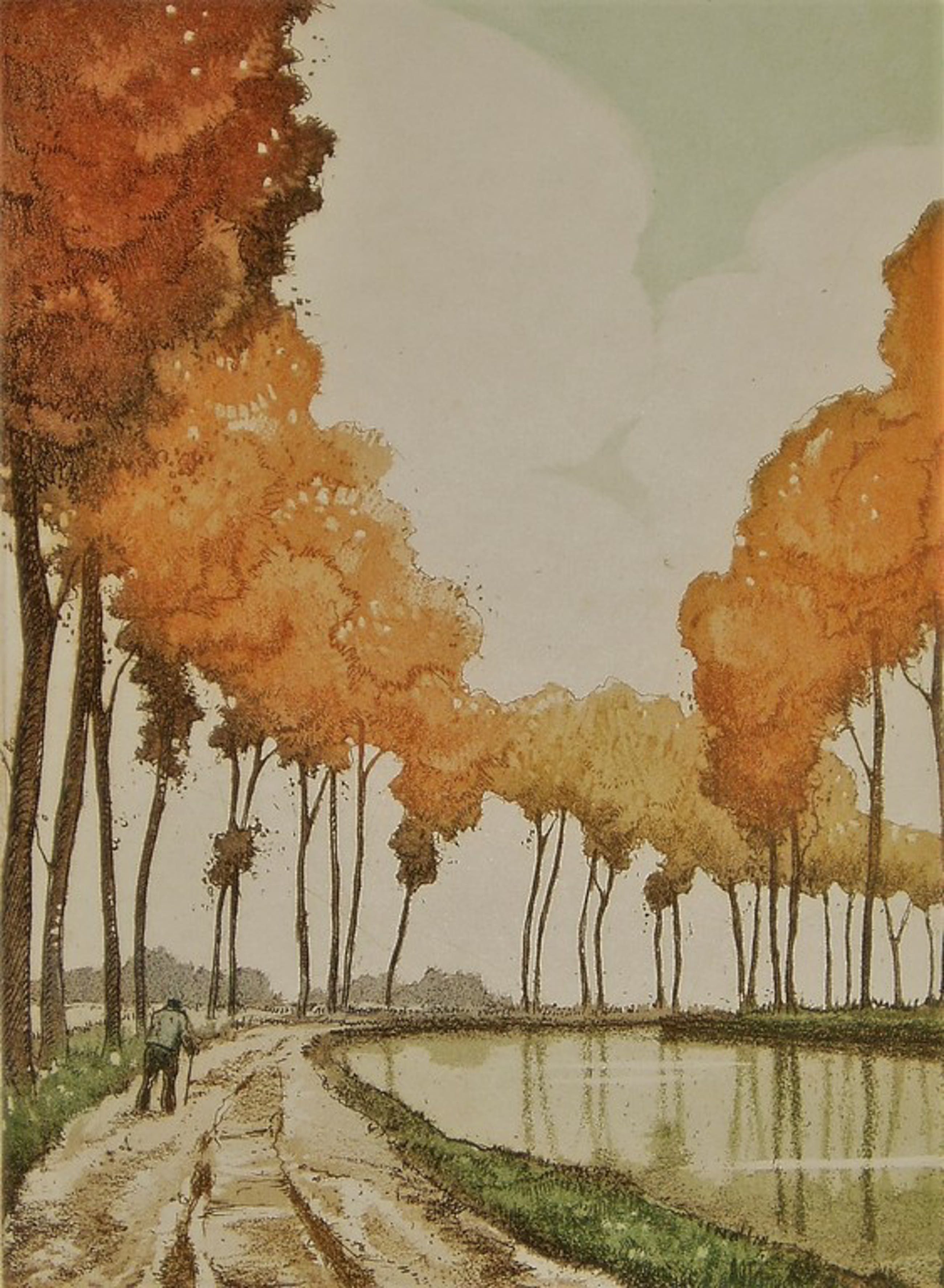 conditie : uitstekend, heldere kleuren, gesigneerd en voorzien van titel, ruime marges, verso blank