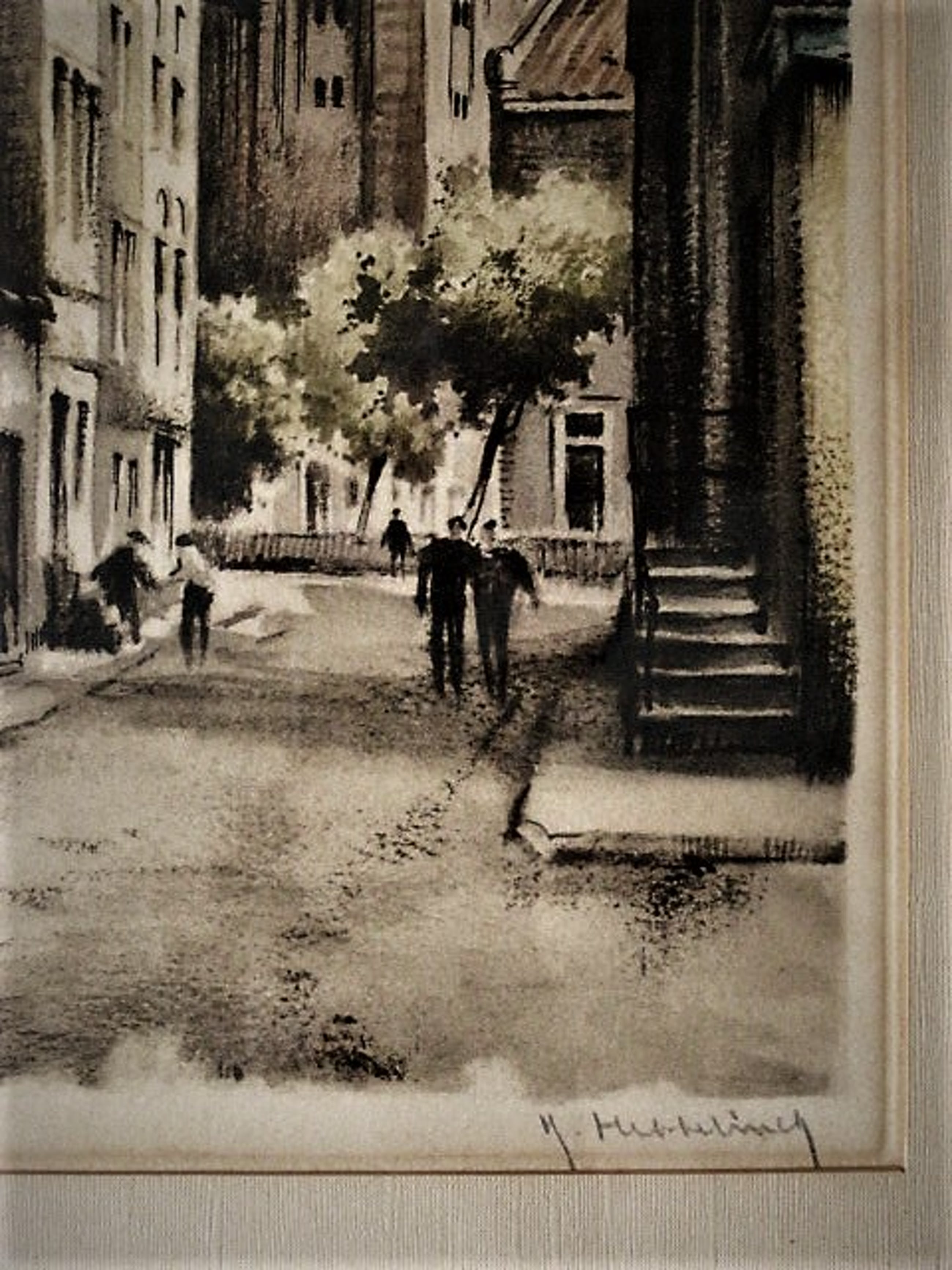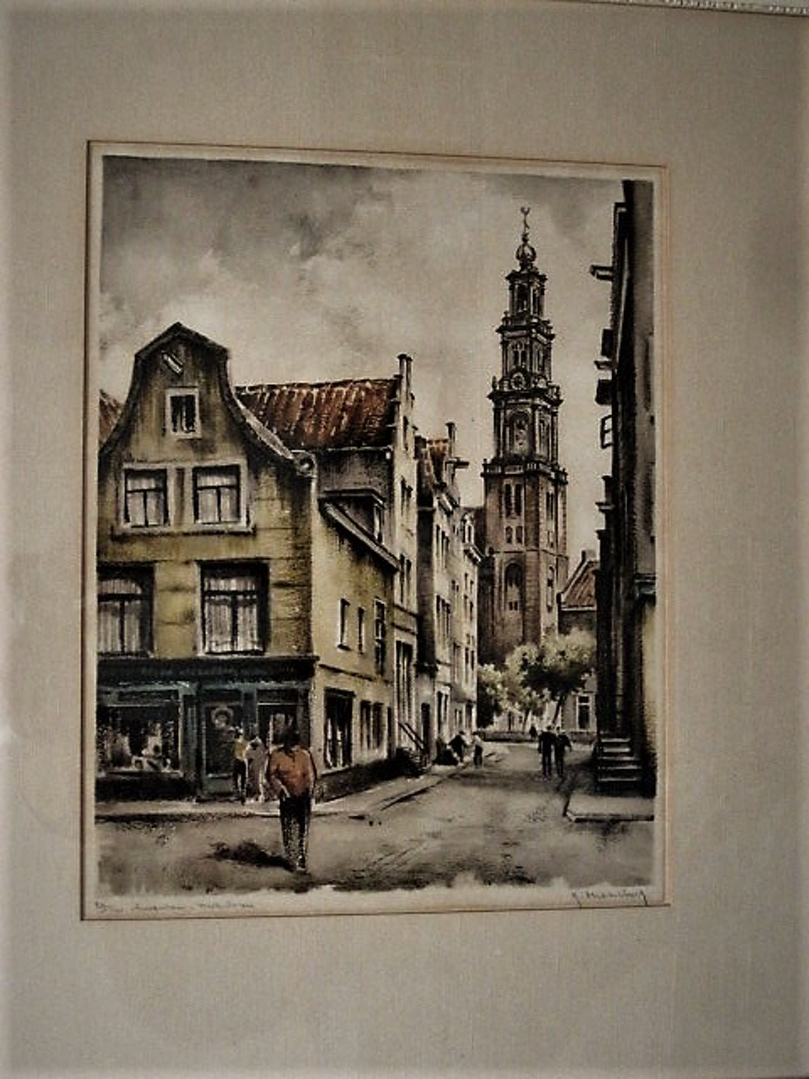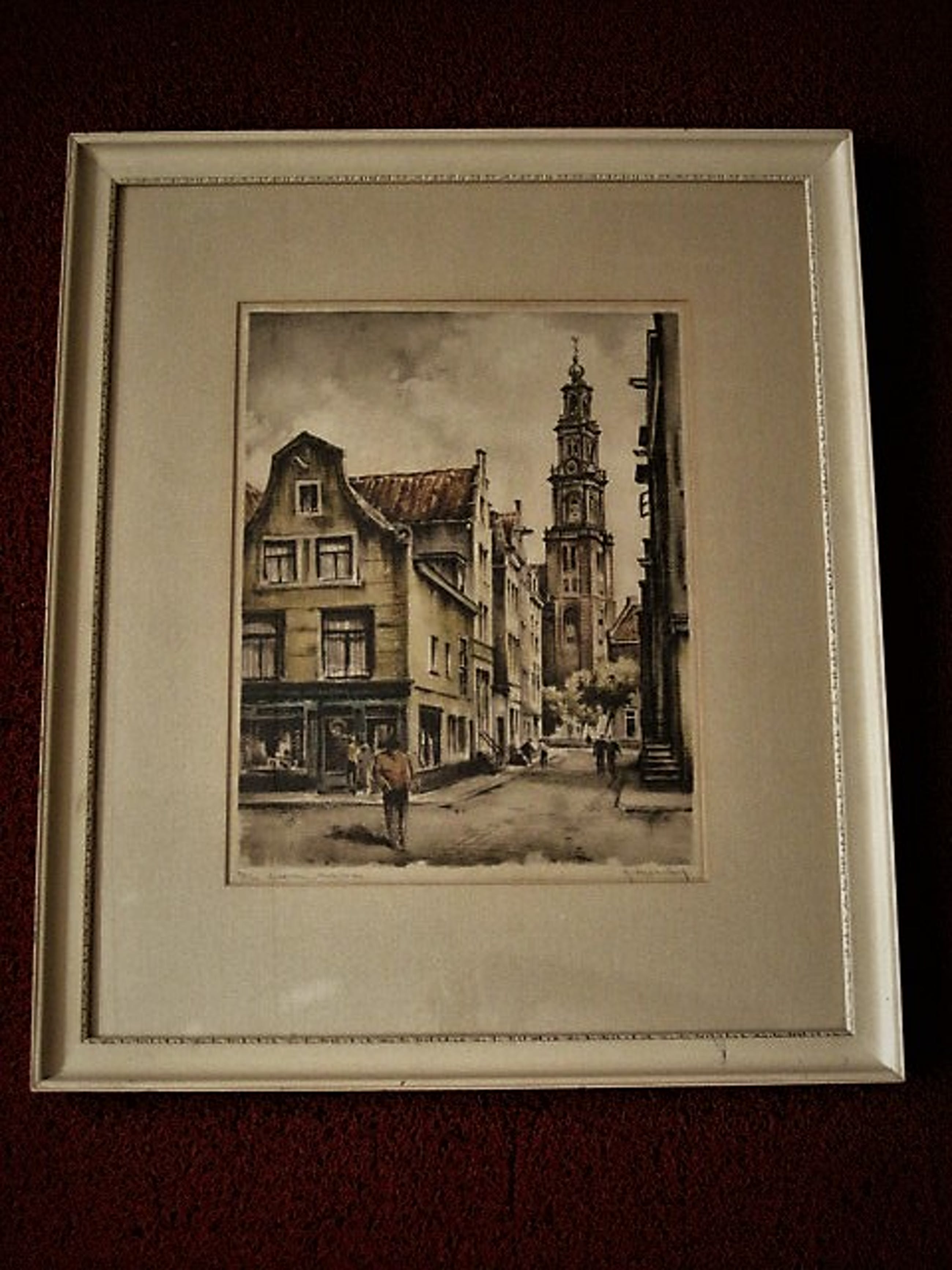 | mooie grote handgekleurde ets. Fraai ingelijst. | |||