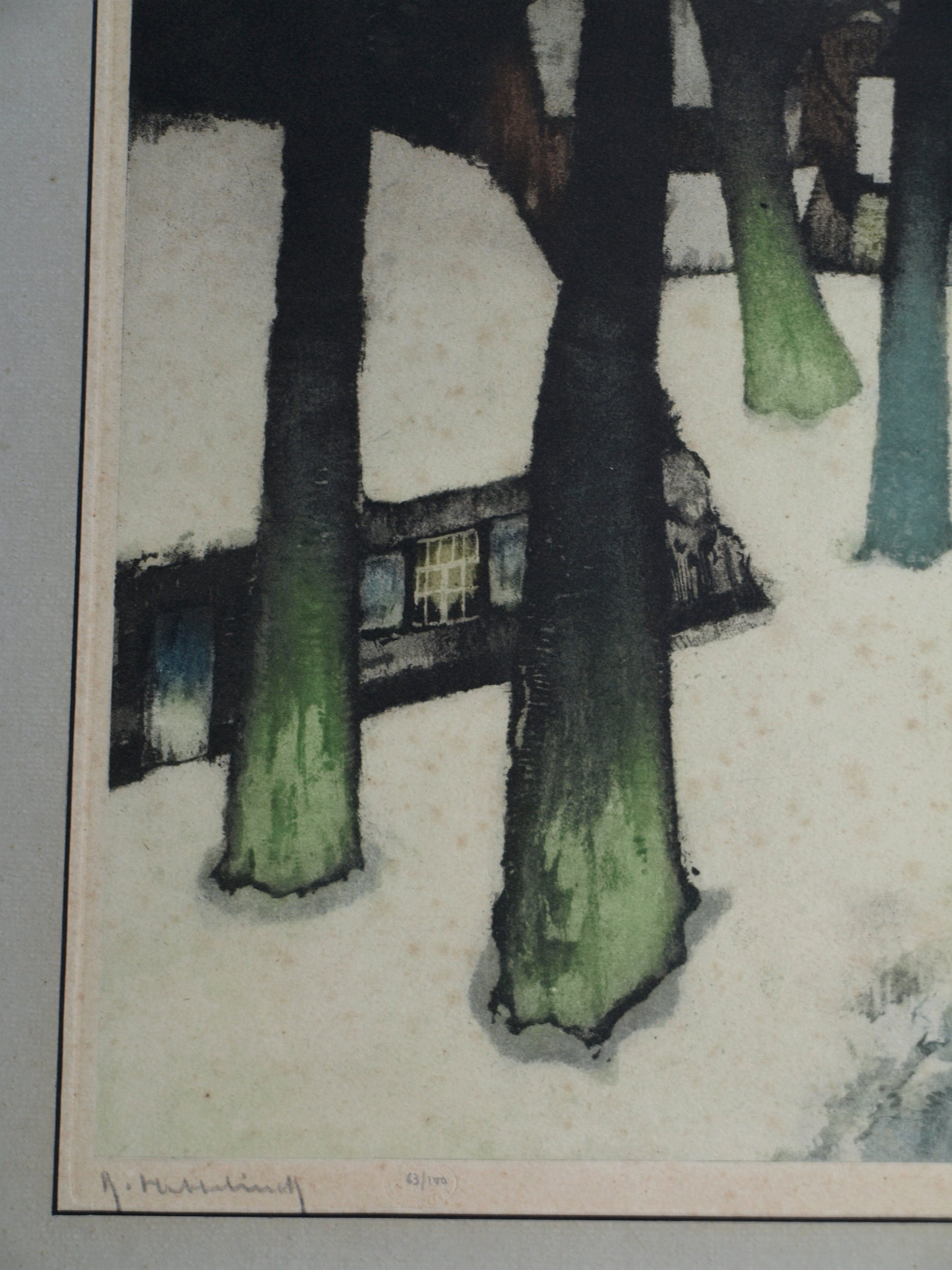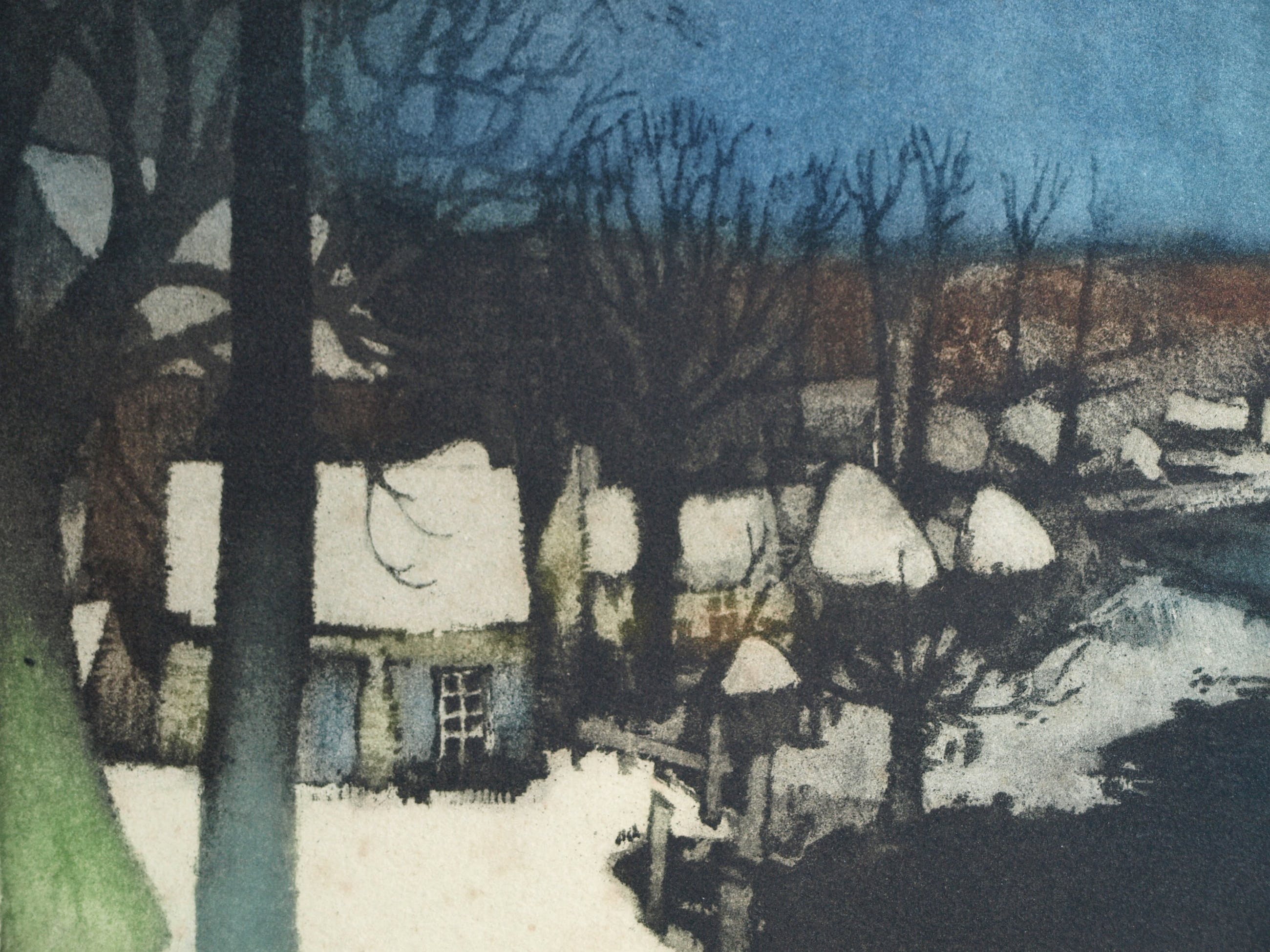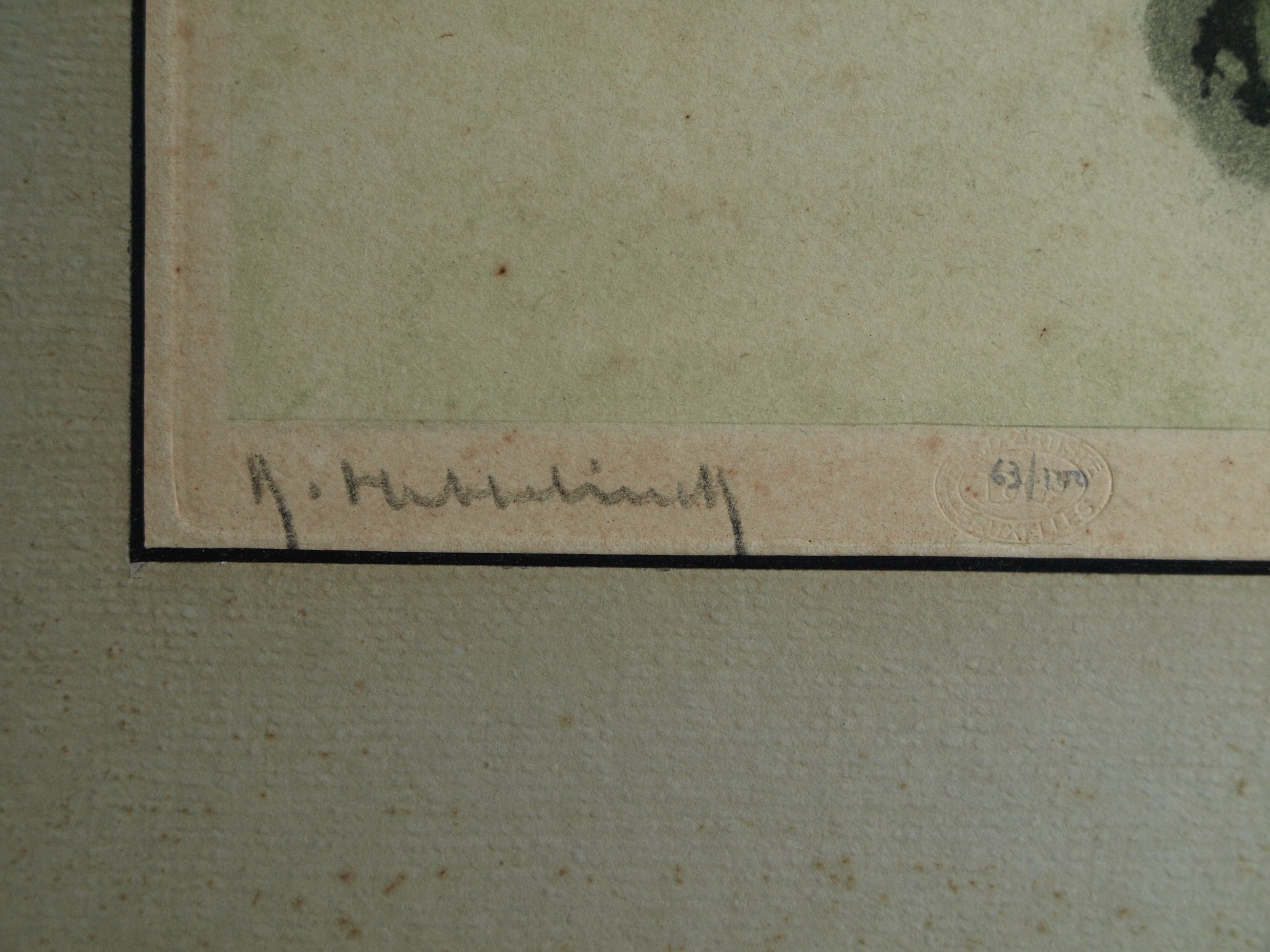 -Conditie: Het papier van de ets en het passe-partout hebben lichte ‘zuurvlekjes’.