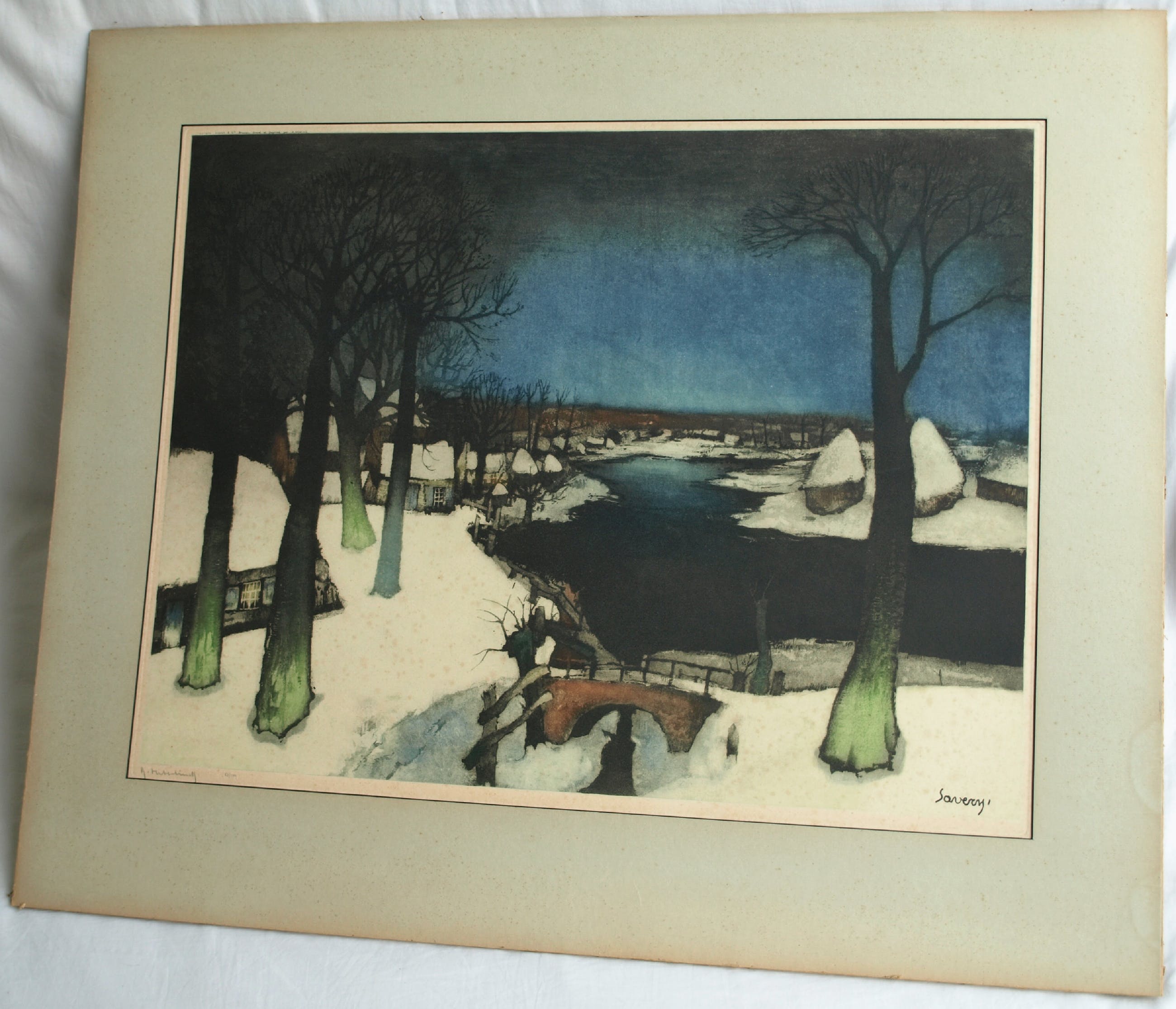 Een grote kleurenets uit ca 1950 van de Belgische kunstenaar Roger Hebbelinck (1912-1987) naar een schilderij van de Belgische kunstenaar Albert Saverys (1886-1964).