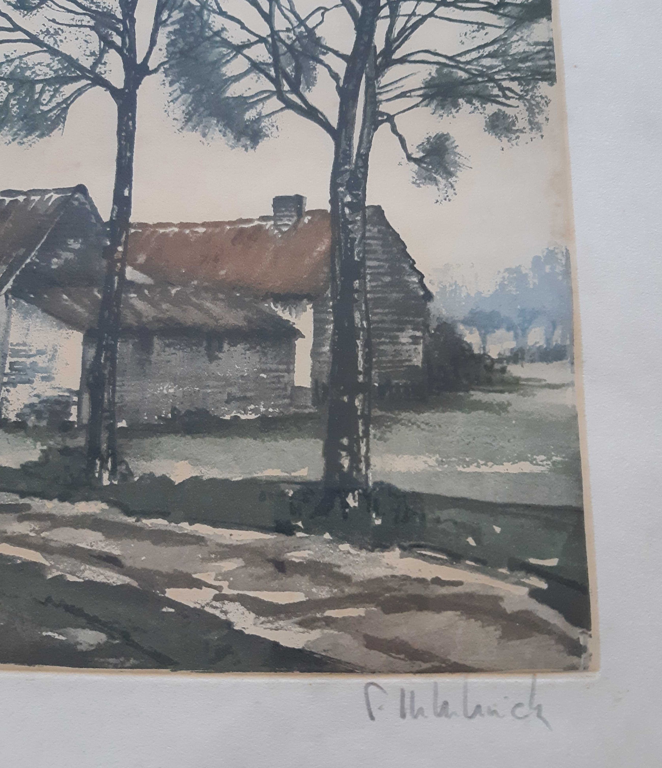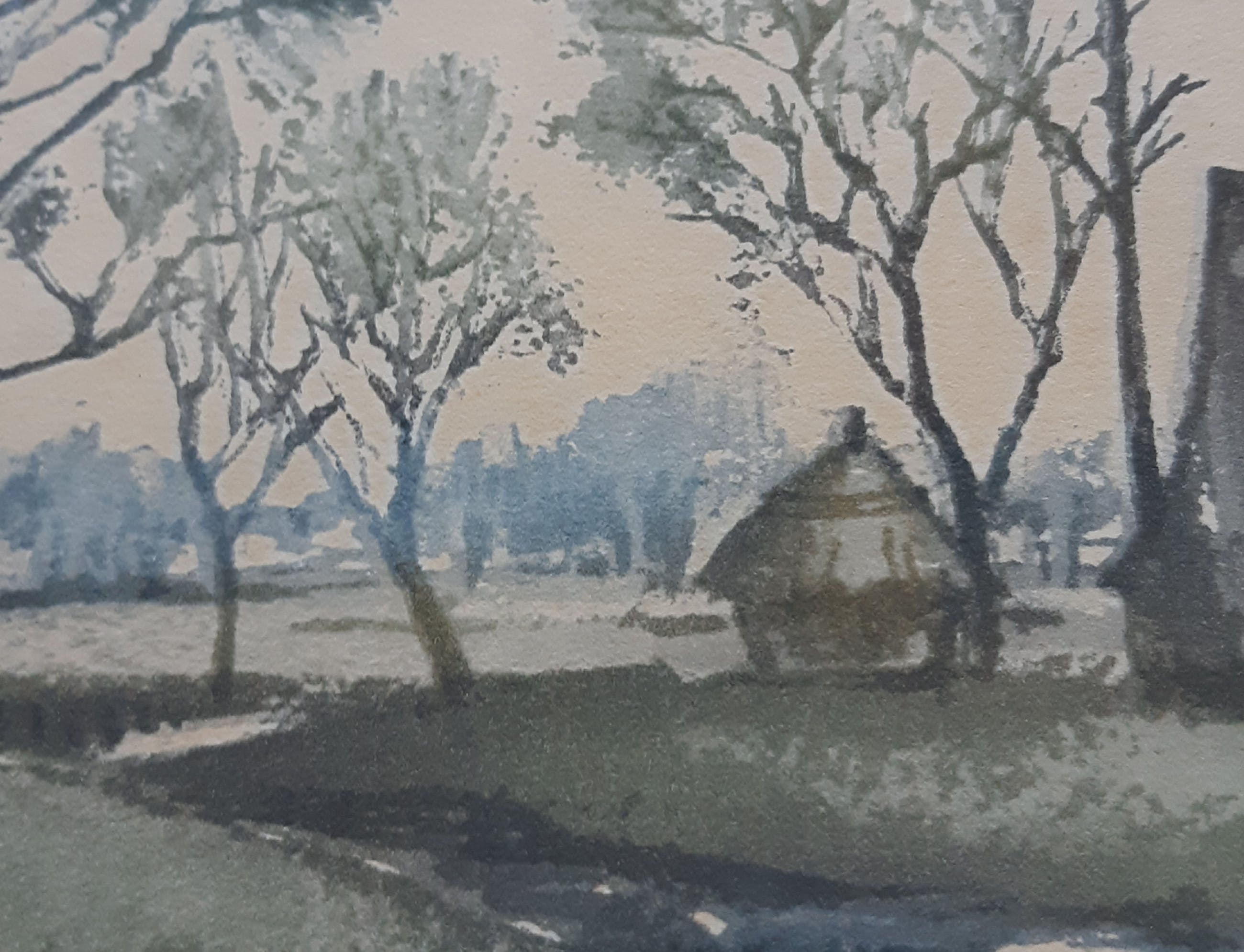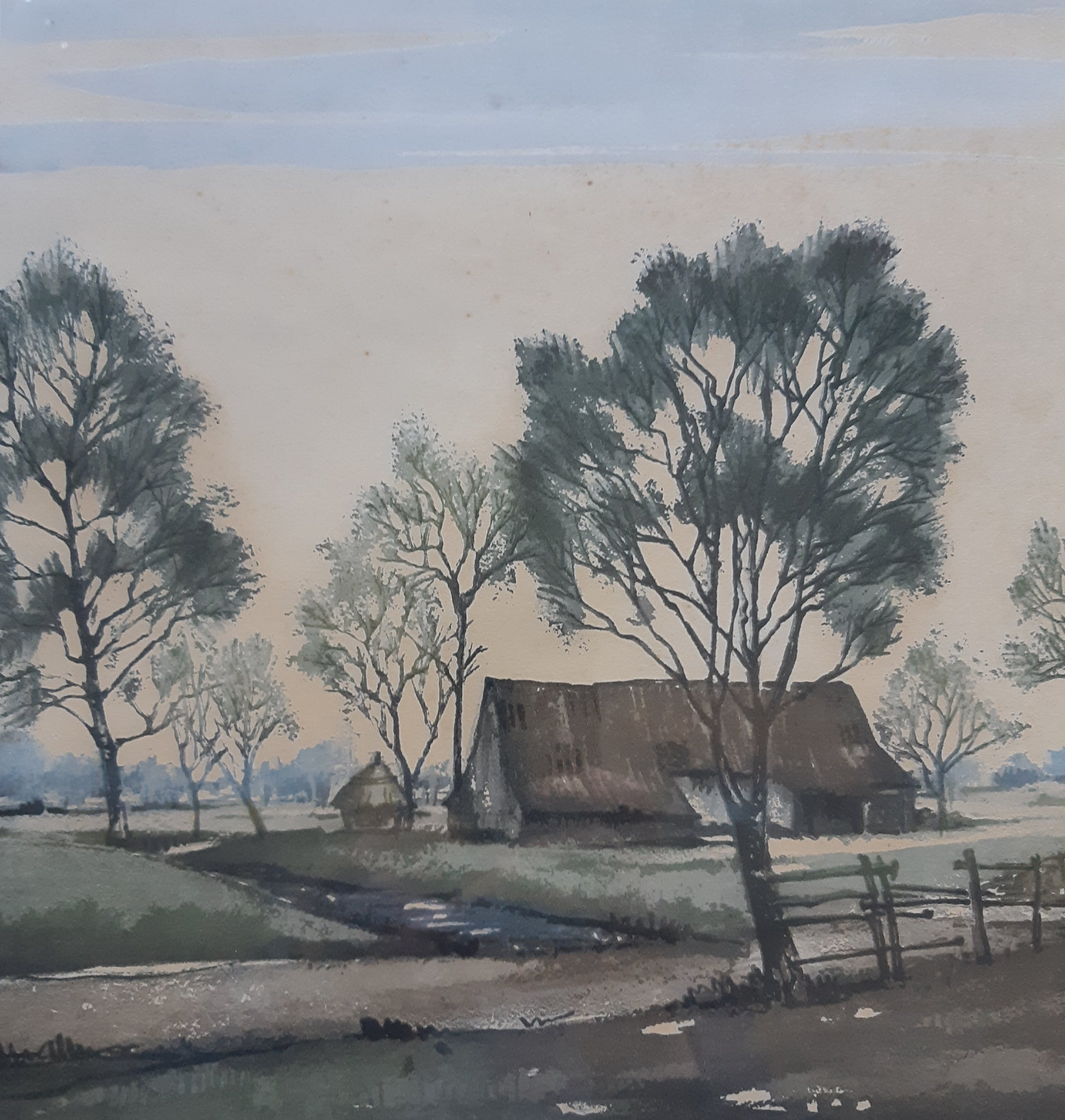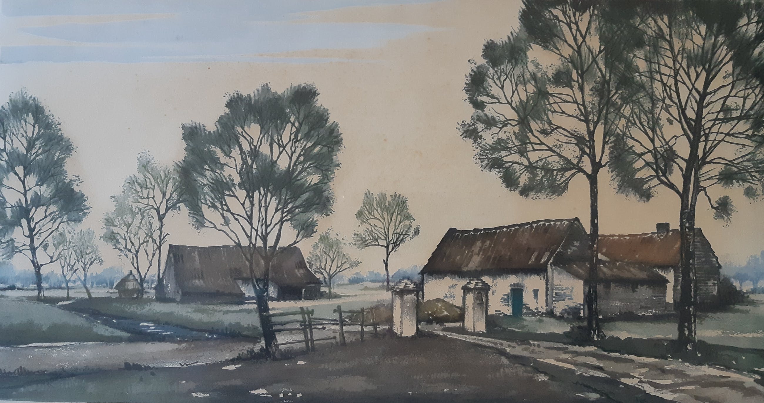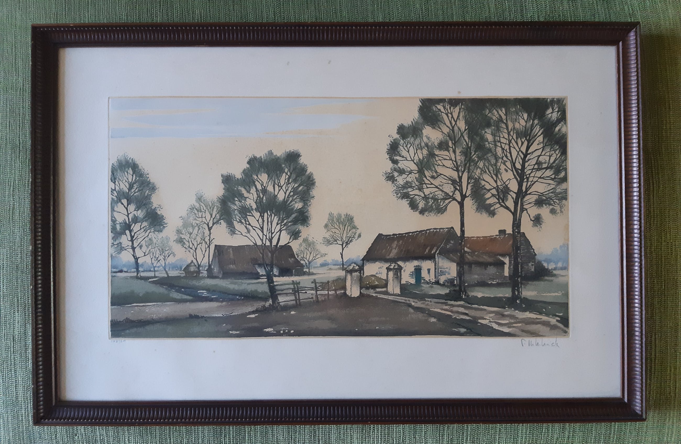 Prachtige kleuren ets van het platteland door Roger Hebbelinck.
