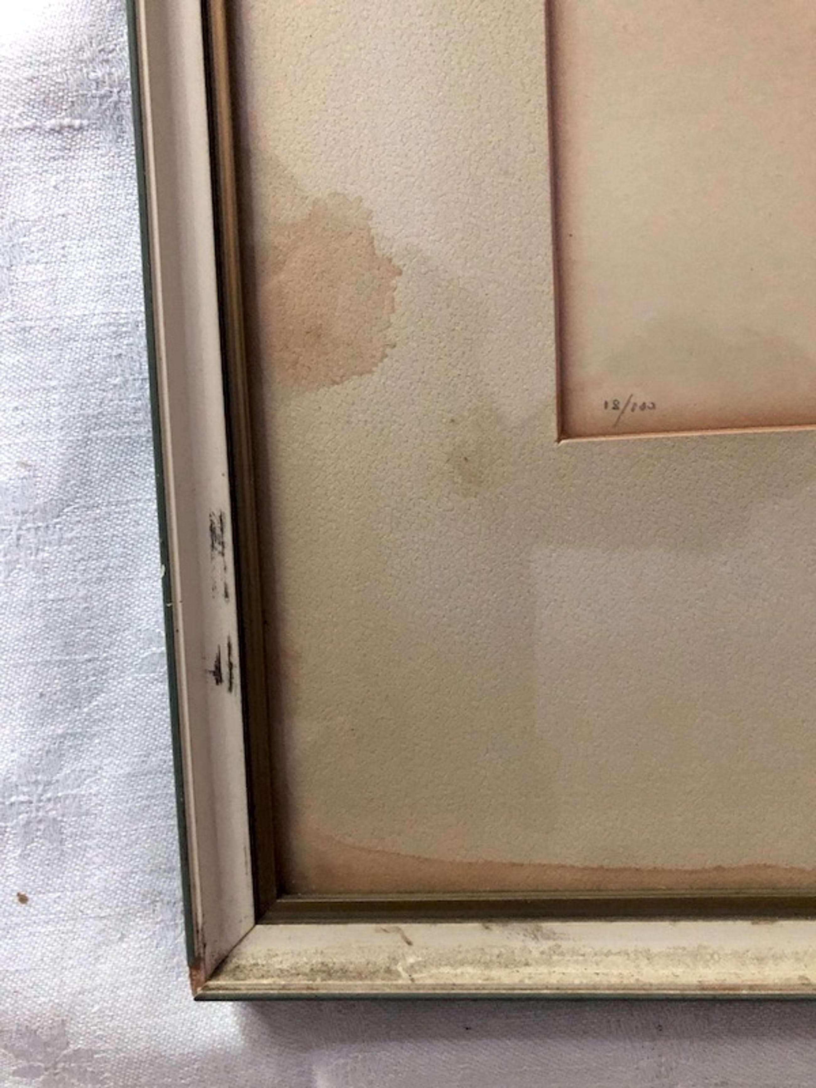 Linkerkant lichtelijk waterschade. Werk licht vergeeld