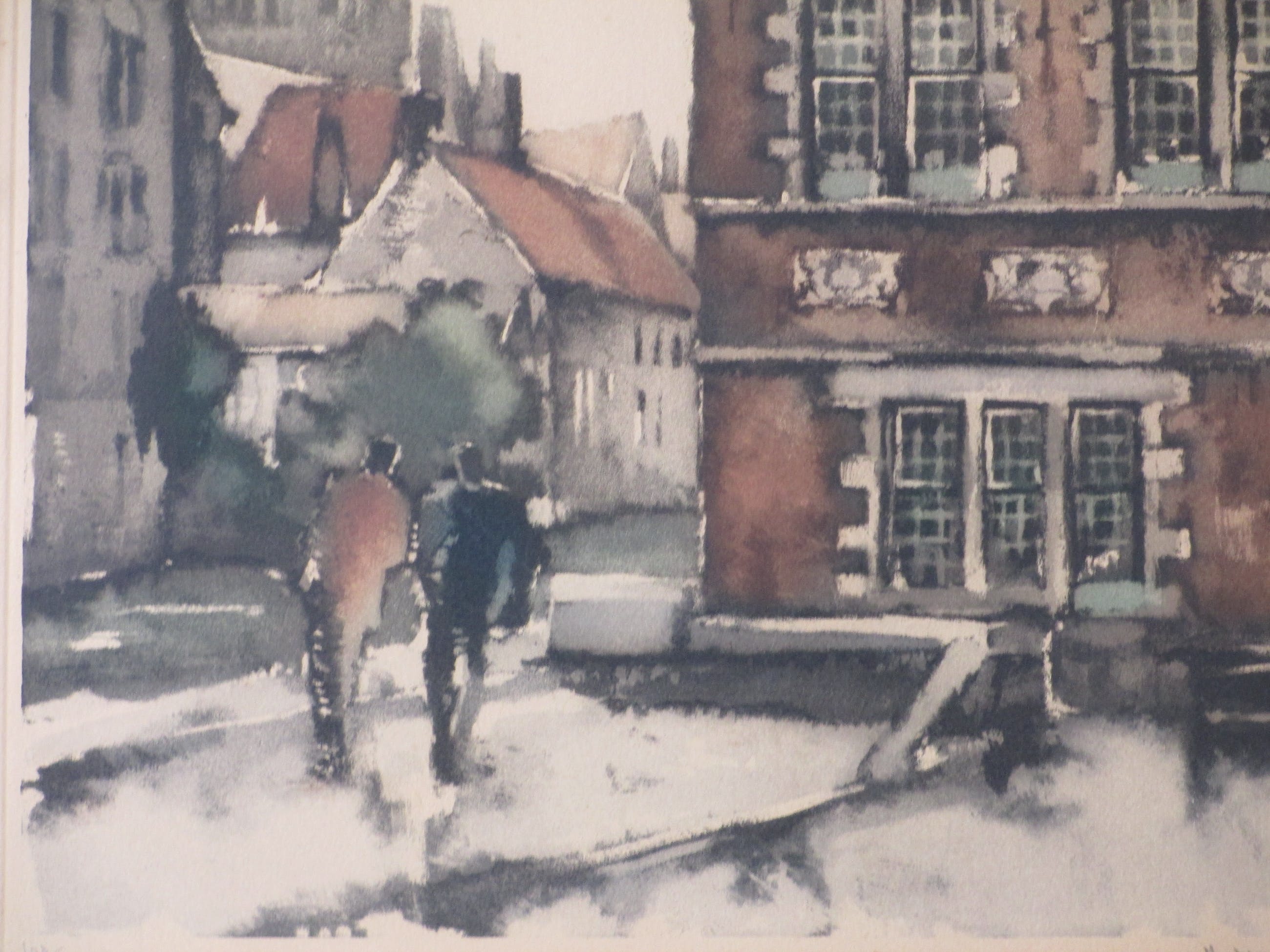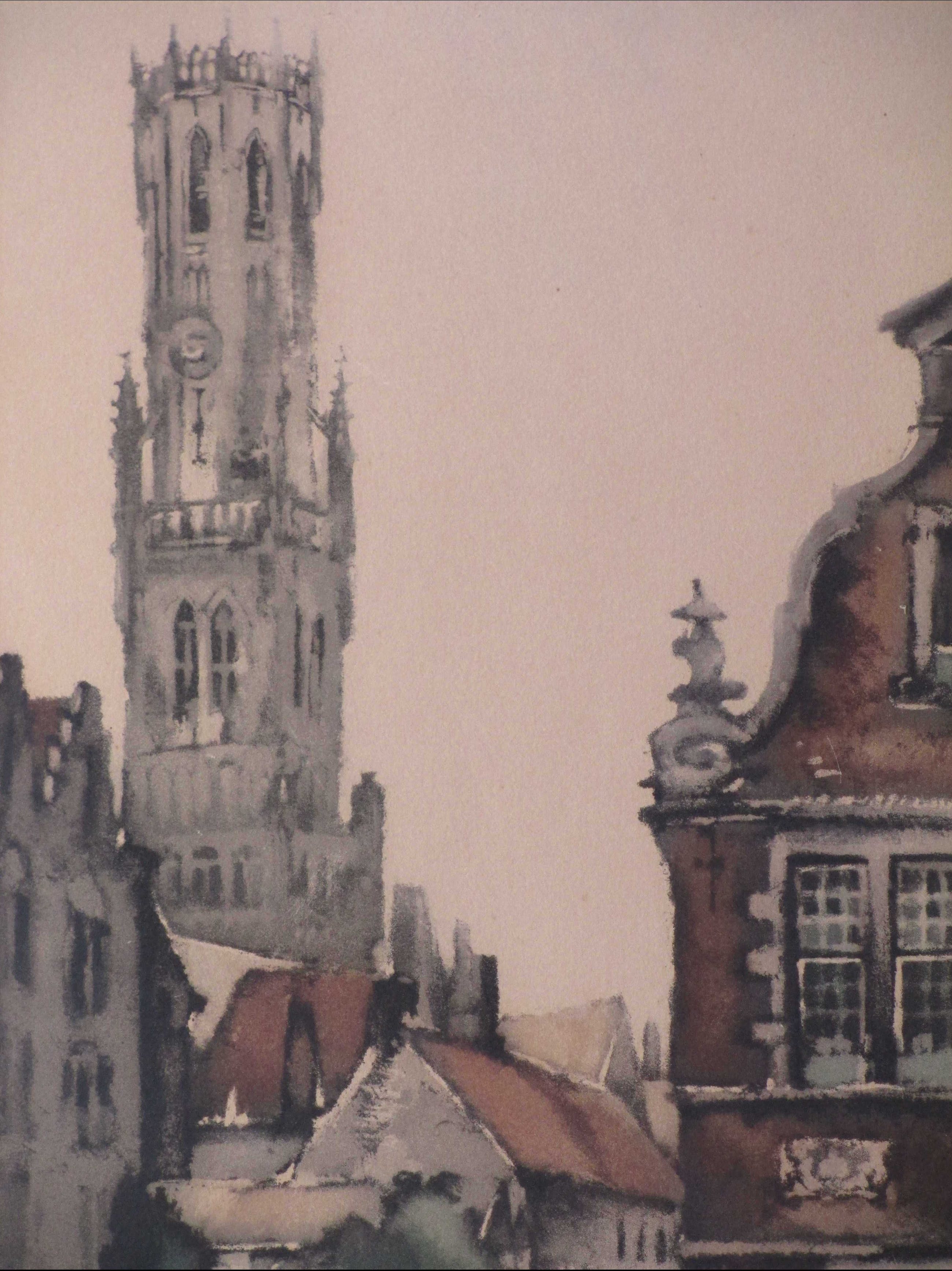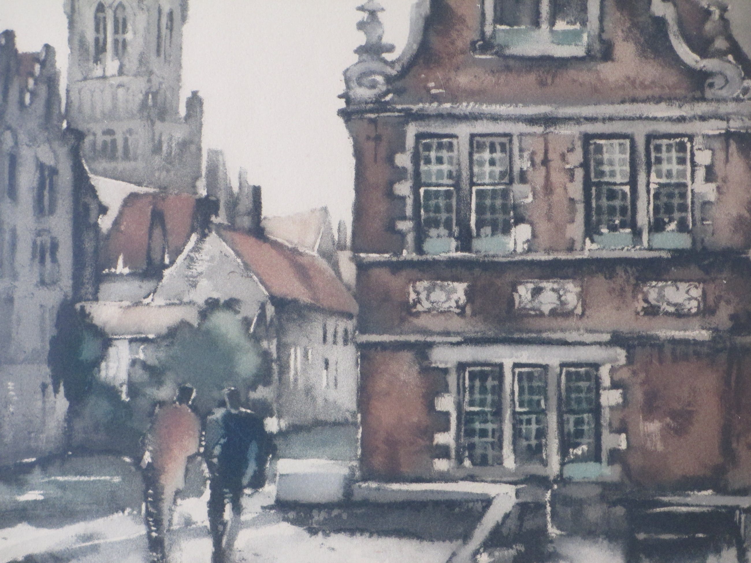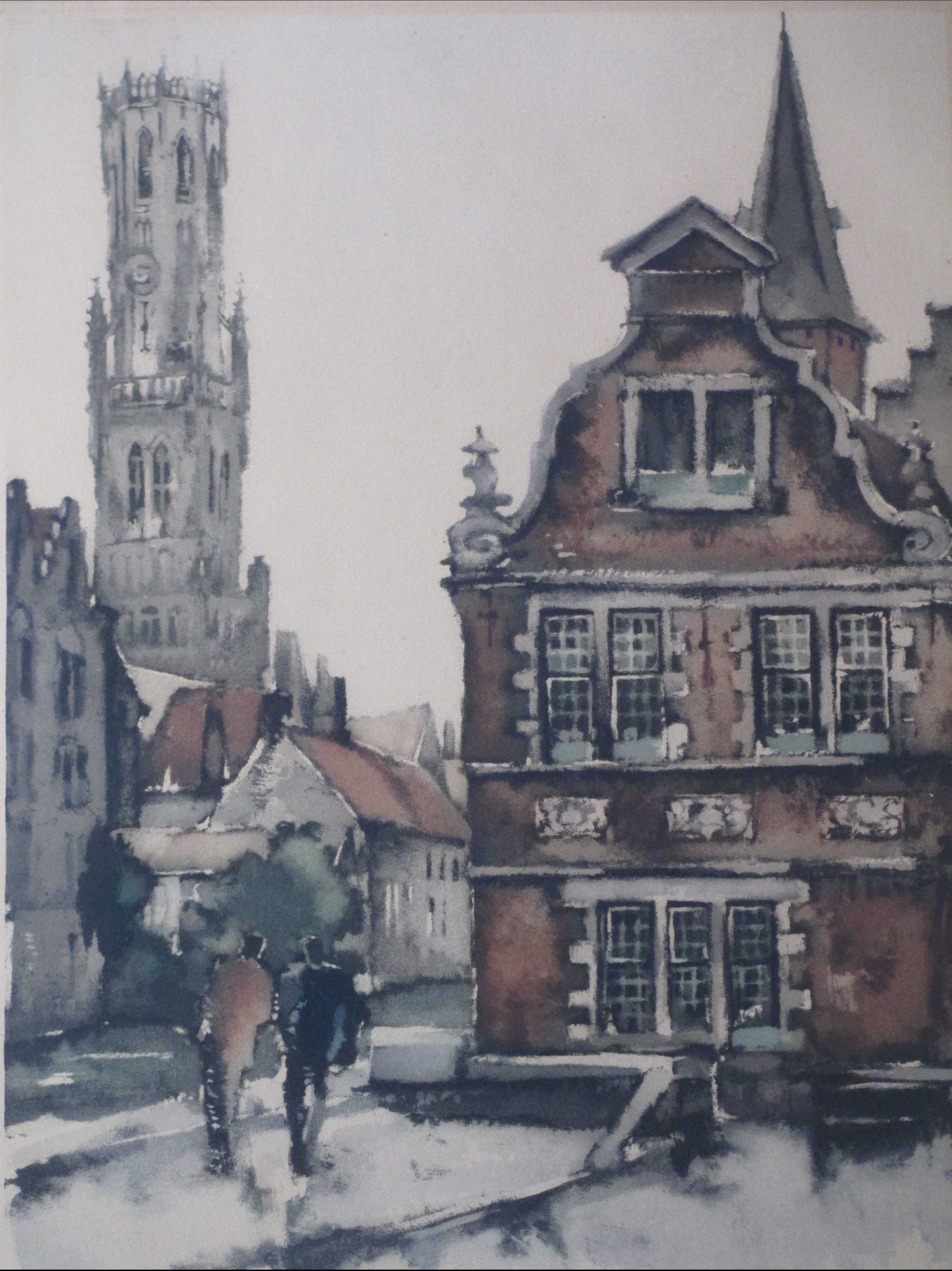 Kleurets door Roger Hebbelinck. Voorstelling van een stadsgezicht in Brugge met zicht op het Belfort Losbladig, beeldmaat 49x37, bladmaat 57x44 Gesigneerd in potlood r.o.: 'R Hebbelinck' Genummerd in potlood l.o.: '103/350' Authenticiteit volledig gegarandeerd.