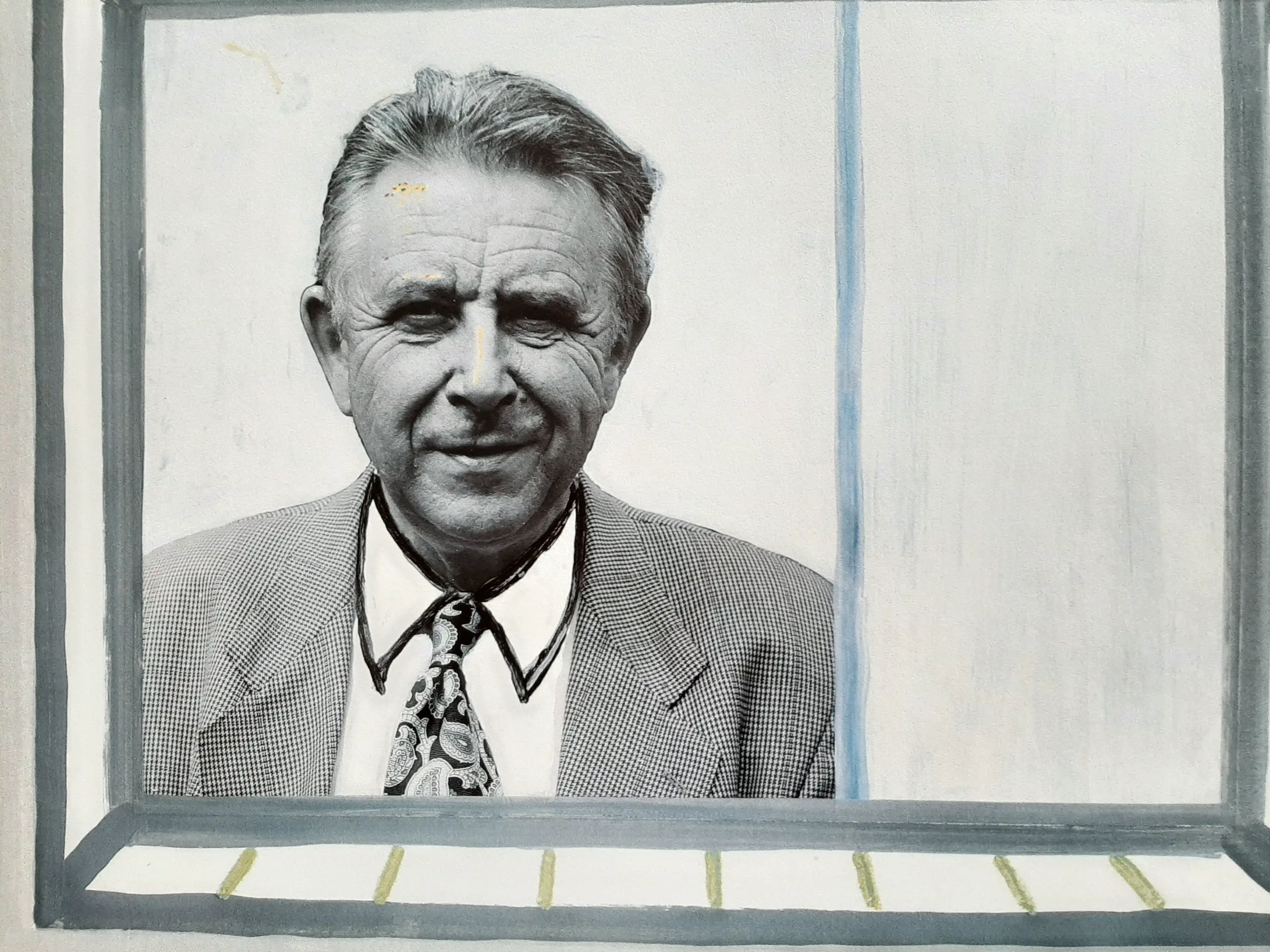 Losse zeefdruk van Roger Raveel uitgegeven in 1996 naar aanleiding van het 25-jarig burgemeesterschap van Dhr. Peirs, burgemeester van Zulte.