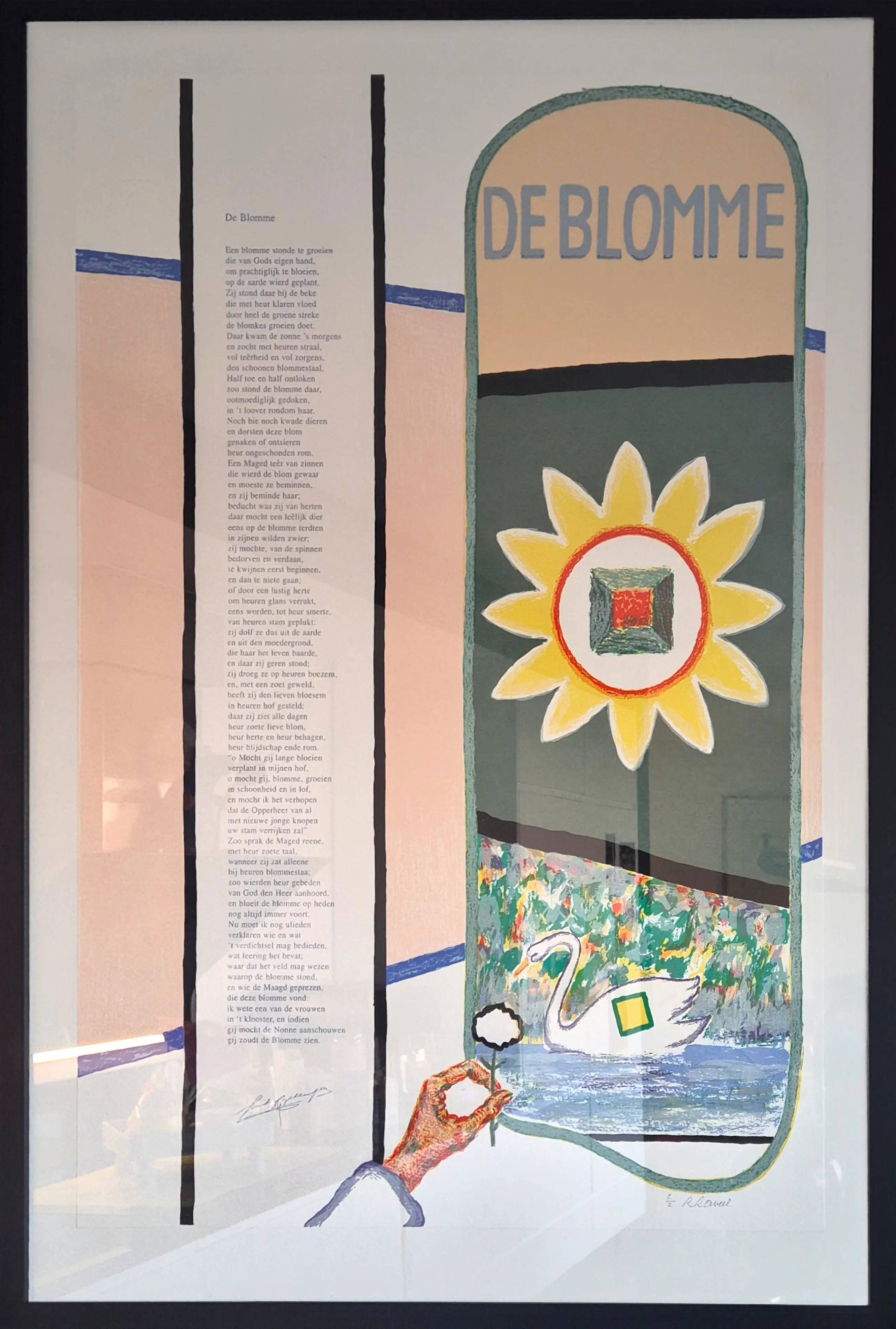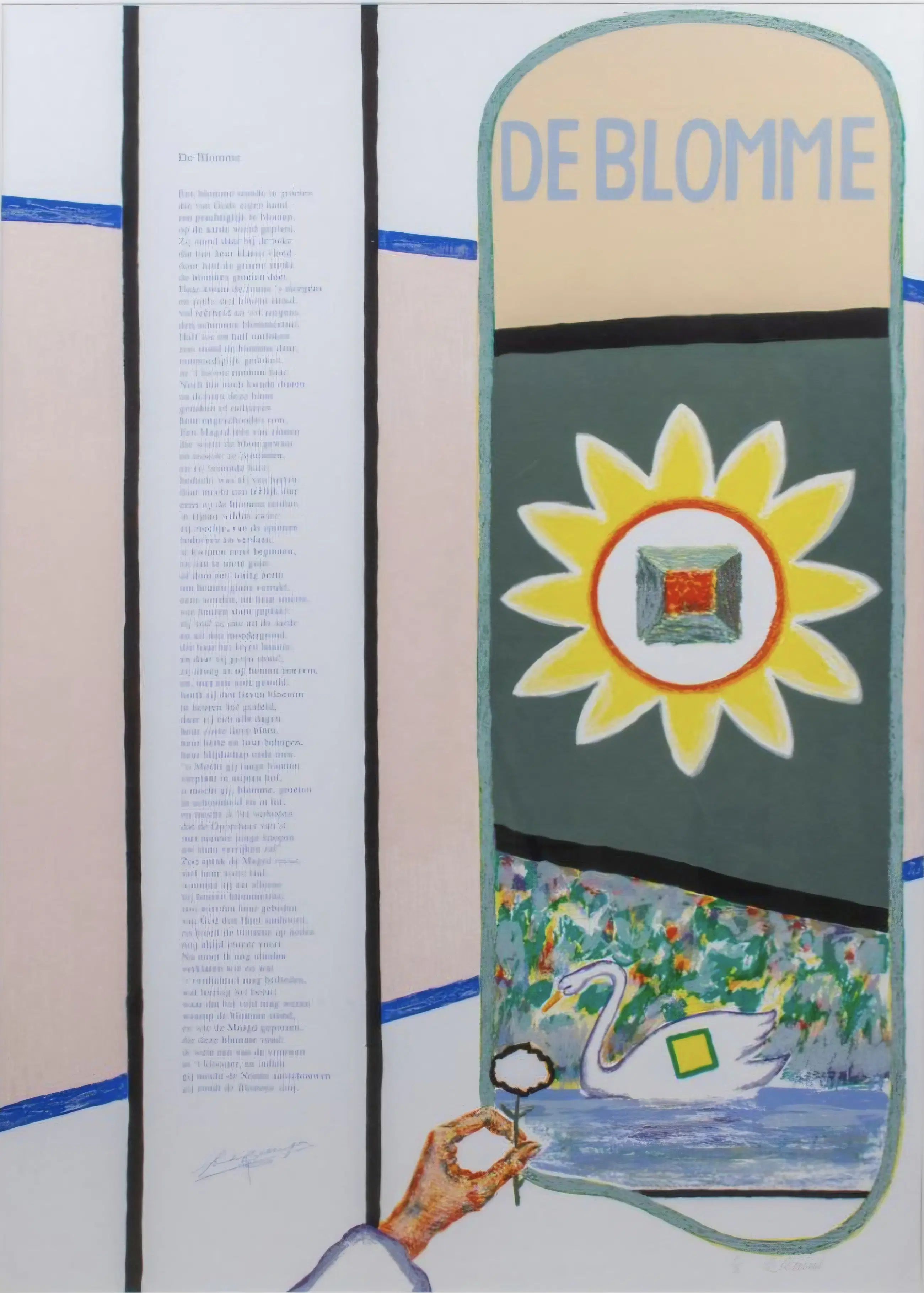 Roger Raveel: Zeefdruk Titel 'De Blomme' Jaar van uitgave 1999. Handgesigneerd en gelettergenummerde uitgave. Drukatelier: MB-Graphics. Uitgever: Stad Brugge