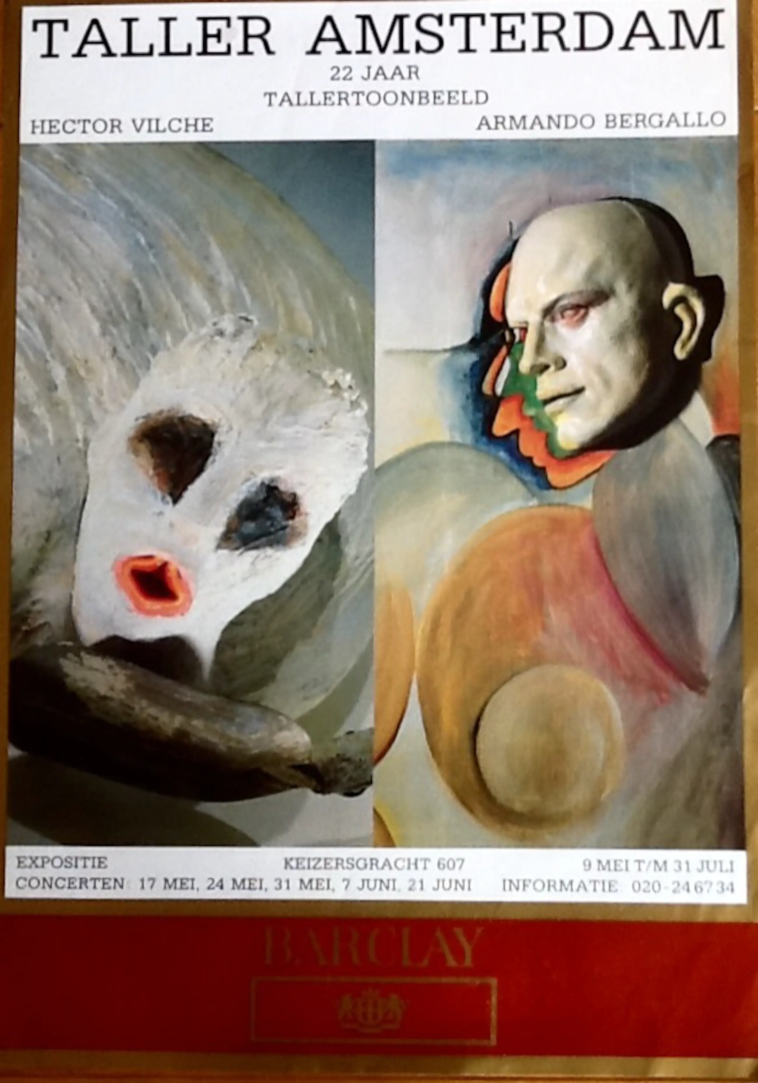 4 kunst affiches van Roger Raveel Poëzie Watoe ‘93, De schilder spreekt 2006 Jan van Herwijnen 1984 Singer Laren Hector Vilche, Armando Bergallo Taller Amsterdam Afmetingen variërend van 40cm breedte tot 82cm hoogte Conditie goed
