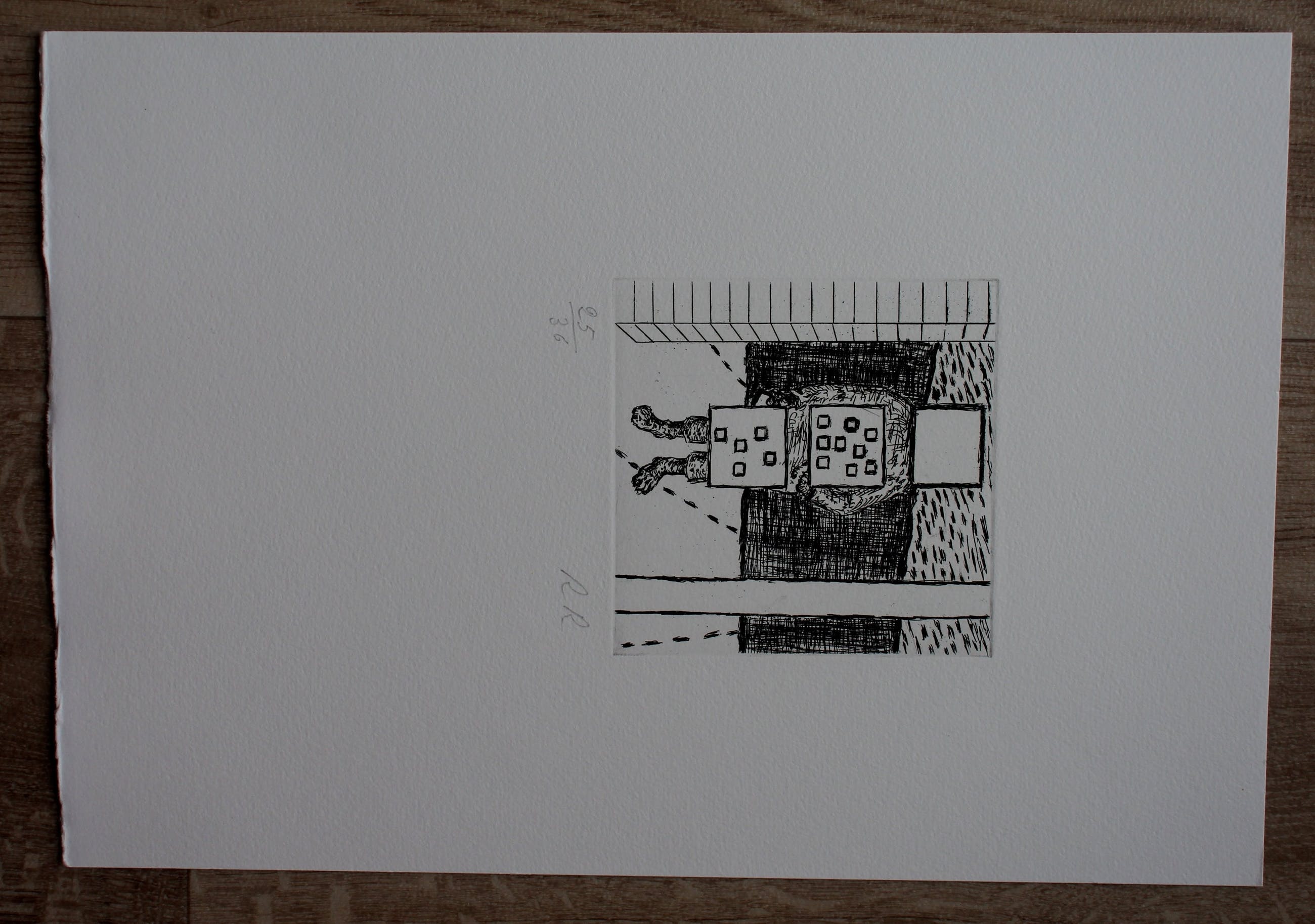 Afmetingen: 32cm x 24cm (portfolio), 9.5cm x 9.5 cm (etsen beeld). De authenticiteit van het aangeboden werk wordt volledig gegarandeerd. Een certificaat van echtheid kan, op aanvraag, worden gemaild.