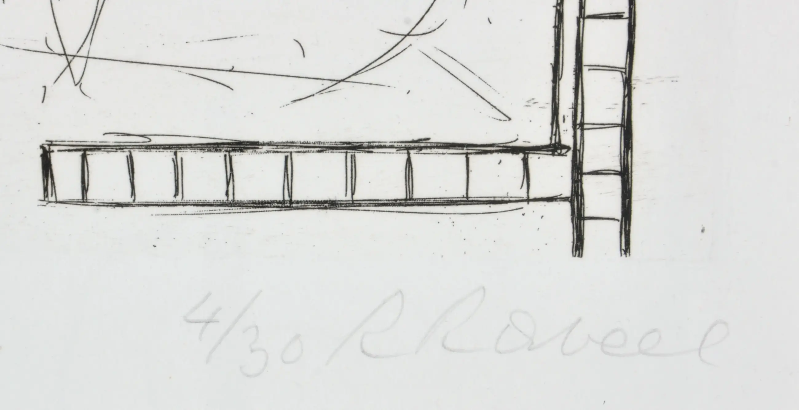 Zeldzaam met de hand ingekleurde ets door Roger Raveel