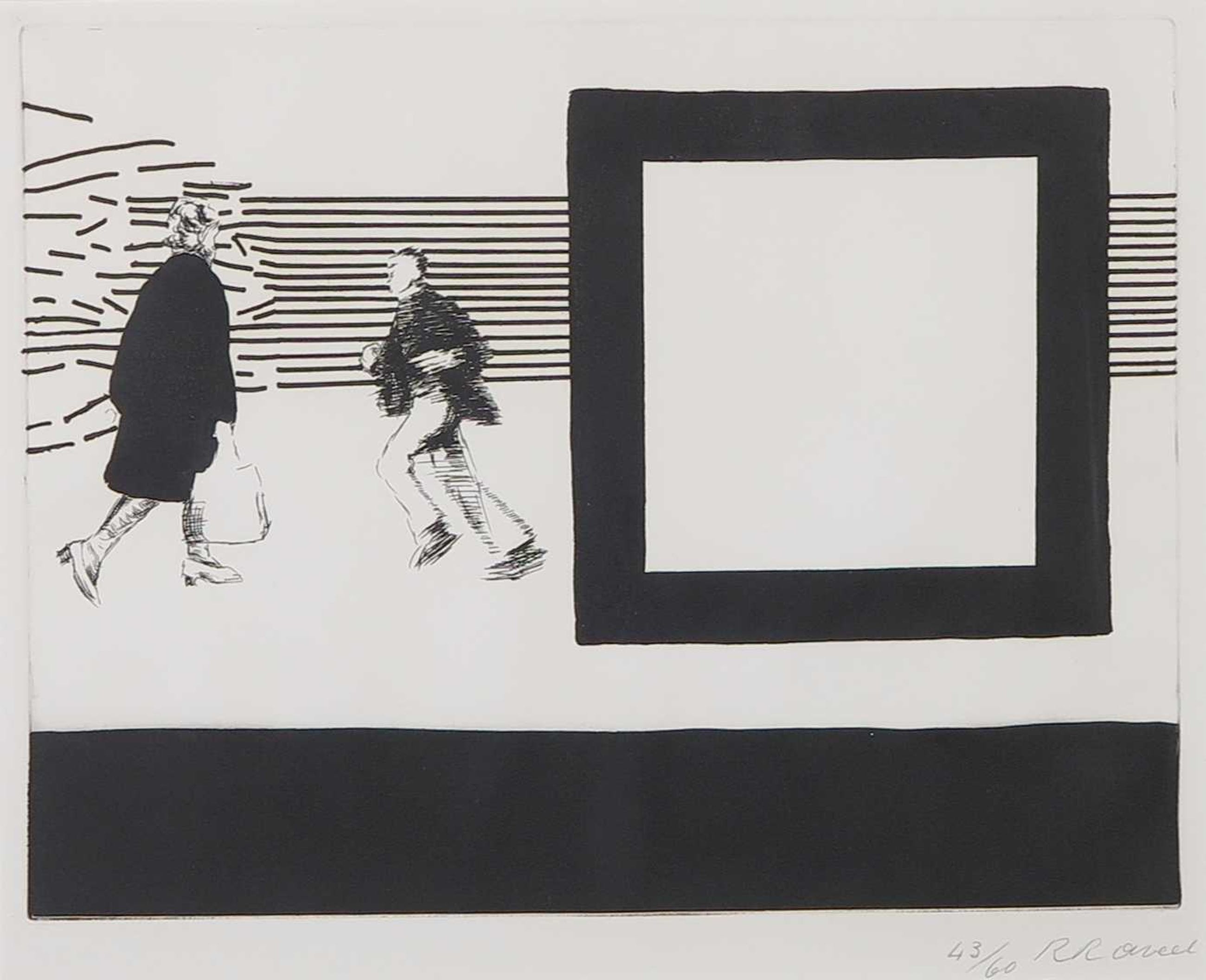 Ets, oorspronkelijk uit een map met acht etsen van Raveel en gedicht van Roland Jooris (Op bezoek bij Roger Raveel)