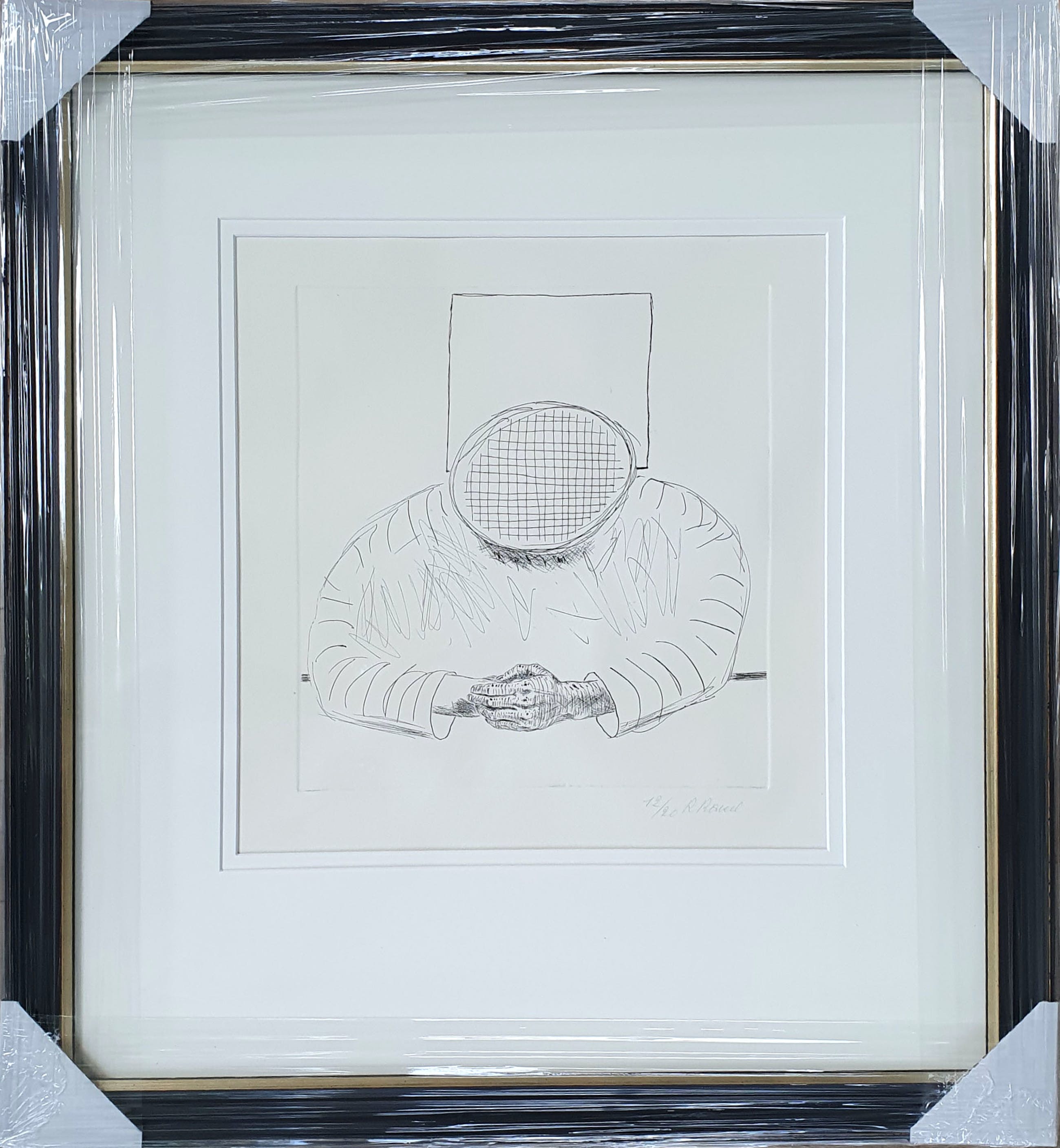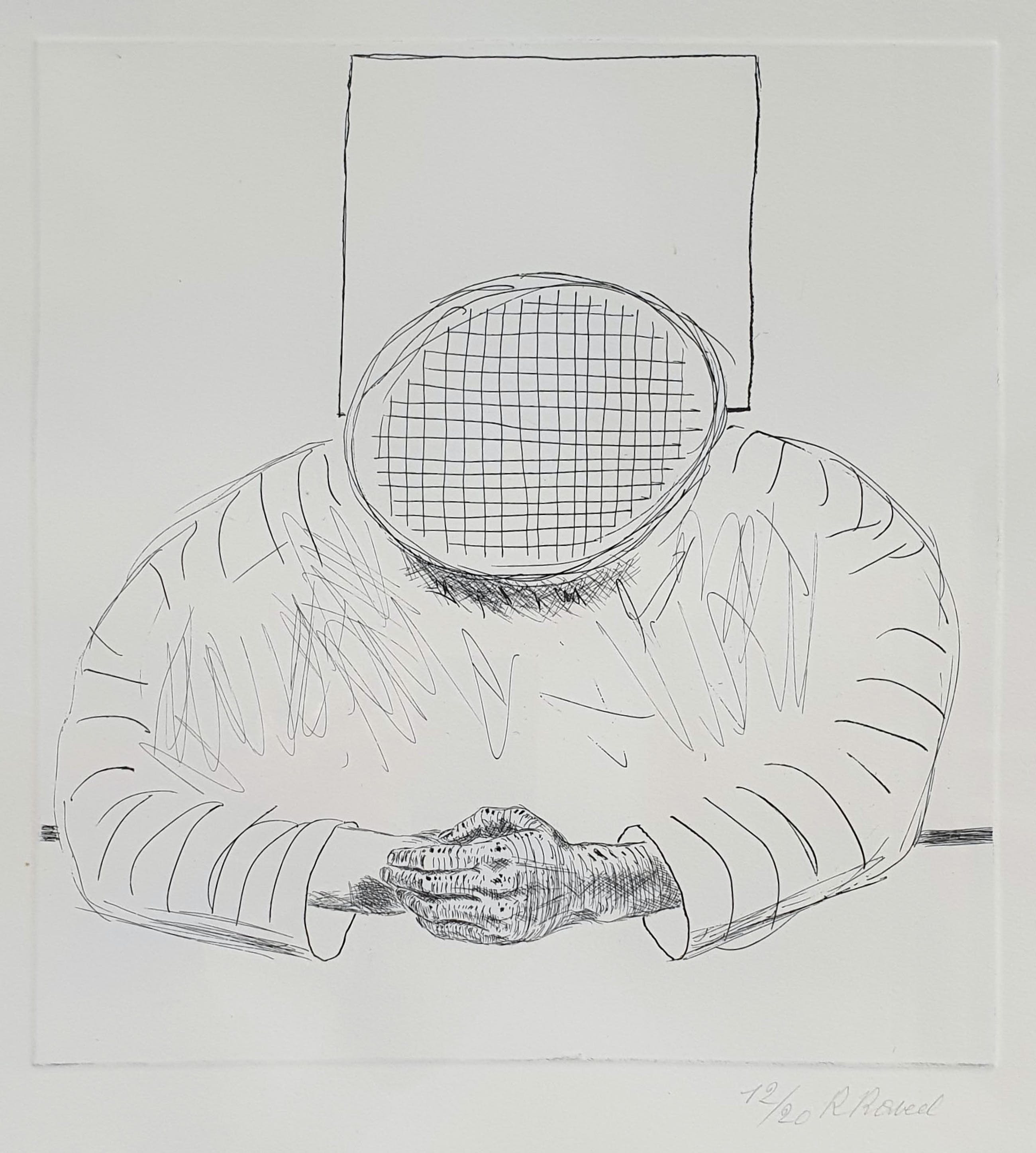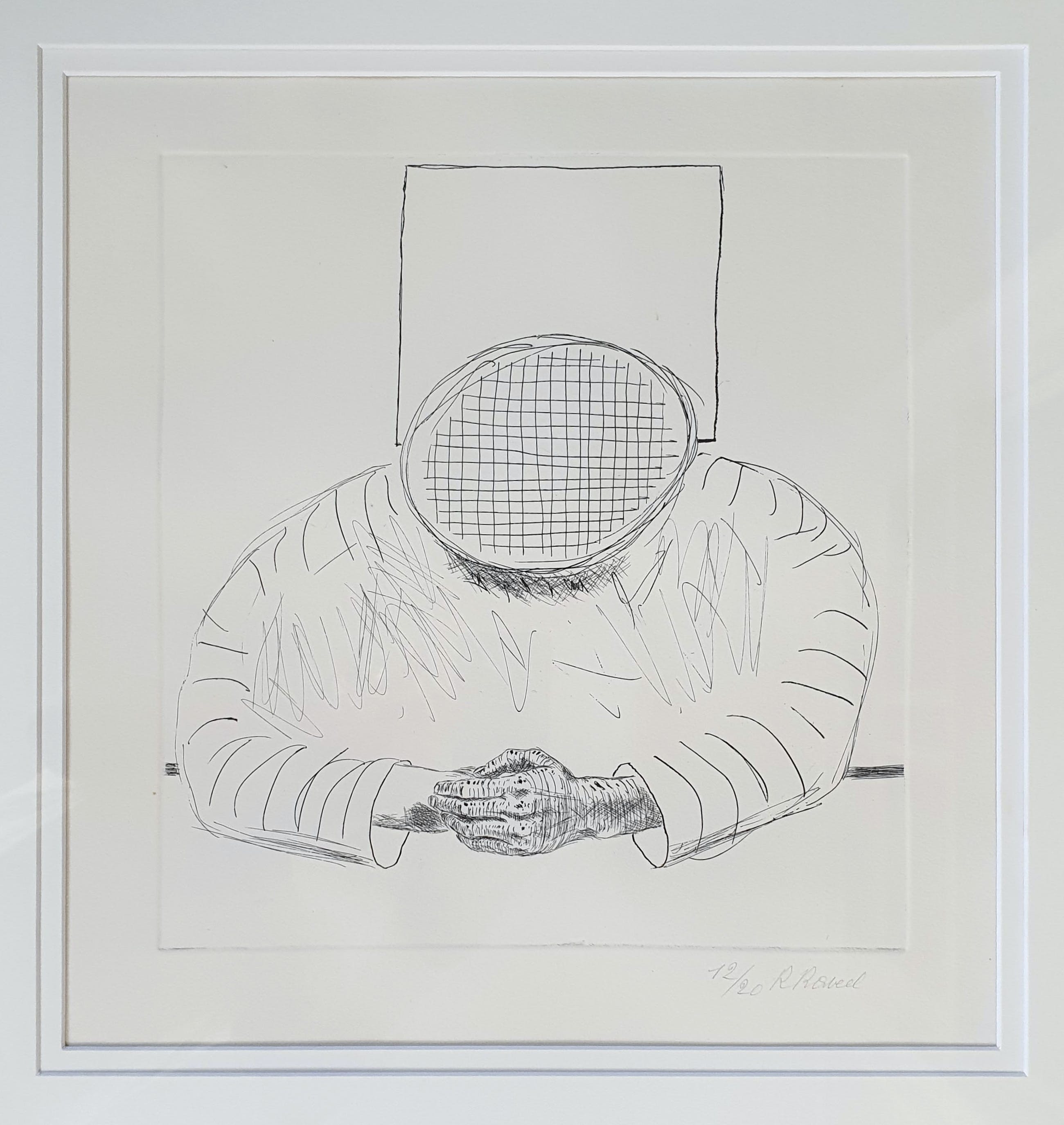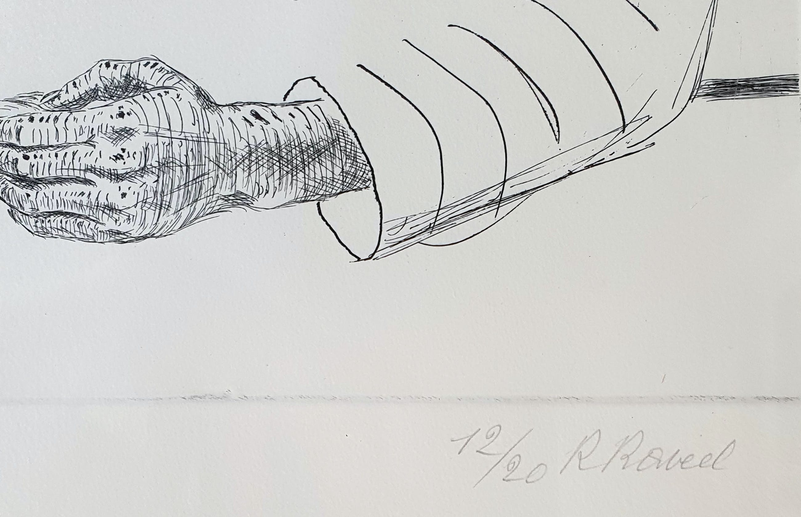 Zeldzame ets van Rogel Raveel met de titel: 'Wegdoezelen in de kosmos'. Het werk is rechtsonder met de hand gesigneerd door de kunstenaar. Dit is nummer 12 van 20.